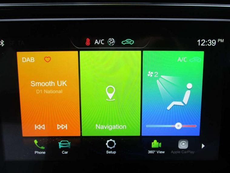 'Lights On' Reminder warning buzzer, 10.1" colour touchscreen, 360 degree parking camera, Android Auto, Apple CarPlay, Blind spot monitoring, Bluetooth connectivity, Cruise control with speed limiter, eCall emergency call system, Full digital driver information display, PAS, Rear cross traffic alert, Rear parking sensors, Satellite Navigation, Trip computer, USB mobile phone charging function, 6 speaker audio system with 3D sound, DAB audio, Radio/MP3 player, USB/aux input socket, Auto headlights, Body colour bumpers, Body colour door handles, Body colour electric adjustable folding heated door mirrors, Chrome side window trim, Follow me home headlights, Front and rear aero wiper, Front and rear electric windows with driver's one-touch up/down, Front fog lights, LED Bi-Function headlights, LED centre brake light, LED daytime running lights, Rain sensing wipers, Rear privacy glass, Rear side wing doors, Rear spoiler, Rear wiper, Silver roof rails, 12V power sockets, 2nd row 60/40 split/fold, 3 rear headrests, 3 seat bench in 2nd row, 4 way manually adjustable passenger seat, 6 way electric adjustable drivers seat, Adjustable dual height boot floor, Air conditioning, Boot light, Driver's footrest, Front cupholders x 2, Front grab handles, Front headrests, Front reading lights, Front seat back map pockets, Glovebox, Heated front seats, Illuminated switches and controls, Internal chrome door handles, ISOFIX restraints on outer rear seats x2, Leather steering wheel, Leather upholstery with contrast stitching, Rake/reach adjustable steering wheel, Rear grab handle, Single front passenger seat, 3x3 point rear seatbelts, ABS/EBD, Anti rolling protection, Automatic unlocking of doors in case of impact, Dual front airbags, EBA, Electric parking brake with auto hold function, ESP, Front passenger airbag deactivation switch, Front seatbelts (3-point + pretensioner + load limiter), Front side airbags, Fuel cut off safety device, Hill launch assist, Rear door child safety locks, Rear passenger seatbelt alert, Seatbelt reminder for driver and front passenger, Side curtain airbags, Tyre pressure monitoring system, Alarm system and engine immobiliser, Automatic latching door, Keyless entry and push button start system, Remote central locking, Second remote key, Speed sensing door locks, Superlocking, 17" Tomahawk diamond cut alloy wheels, Tyre repair kit,