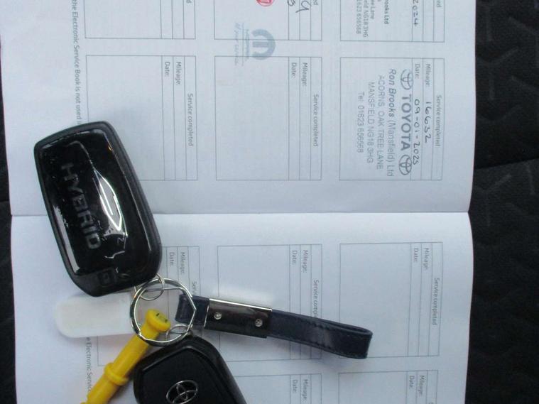 7" Multi information display screen, 8" Toyota touch 2 multimedia system with Smartphone integration with Apple CarPlay and Android auto, Adjustable speed limiter, Bluetooth connectivity, Driver attention alert system, eCall emergency system, Electric power steering, Full range intelligent adaptive cruise control, Hybrid system indicator, Key reminder warning, Lane trace assist, Multimedia, audio, telephone and voice recognition switches on steering wheel, My T Connected services, Pre-collision system enhanced with emergency steering assist, Reversing camera, Road sign assist - RSA, Steering assisted vehicle stability control, 6 speakers, DAB Digital radio, USB connection, 3rd brake light, Acoustic windscreen glass, Aluminium roof rails, Anti-jam protection on power windows, Auto high beam [AHB] with on/off switch, Automatic headlights, Black lower front grille, Black Shark-fin antenna, Black upper front grille, Black wheel arch mouldings, Body colour door handles, Body colour front bumper, Body colour rear bumper, Electric adjustable heated door mirrors, Follow me home headlights, Front and rear electric windows with auto up/down function, Front intermittent wipers, Headlight cut off reminder, Indicators integrated on door mirrors, Intermittent rear wiper, LED daytime running lights guide, LED front fog lights, LED front light guide, LED Indicators, LED projector headlights, LED rear light guide, Manual headlight levelling, Manually retractable door mirrors, Noise reduction layer on windscreen, Privacy glass, Rain sensor, Rear LED lights with sequential indicators, Rear side wing doors, Rear spoiler, Rear window defogger, 12v power outlet - front, 2x Rear coat hooks, 3 seat bench in 2nd row, 3 spoke leather steering wheel, 40:20:40 split folding rear bench seat, Adjustable speed limiter switch on steering wheel, Auto air conditioning, Black roof lining, Boot light, Central armrest, Centre console in light blue ambent lighting, Driver and front passenger personal lights, Fabric door trim, Fabric upholstery, Footwell in light blue ambient lighting, Front console box, Front cup holders, Front head restraints, Glovebox, Height adjustable driver's seat, Height adjustable front passenger seat, Hooks for luggage holding belts, ISOFIX child restraint system, Lane departure alert switch on steering control, Leather gearshift, Light blue ambient lighting on front doors, Manual telescopic and tilting steering wheel, Mirror on driver and passenger sun visor, Pollen air filter, Rear cup holders, Rear head restraints, Single front passenger seat, Soft tonneau cover, 3x3 point rear seat belts, ABS+EBD+Brake assist, Driver and passenger central airbags, Driver and passenger front airbags, Driver and passenger side airbags, Electronic parking brake, Emergency brake light system (EBS), Front seat belt reminder, Hill start assist control (HAC), Passenger airbag on/off switch, Pre-collision system with pedestrian and cyclist detection, Rear door child safety locks, Rear passenger side airbags, Rear seat belt reminder, Traction control, Tyre pressure warning system, Immobiliser, Intrusion alarm, Keyless smart entry with push button start, Power door locks, Power passenger window lock, Remote door lock, Tyre repair kit,