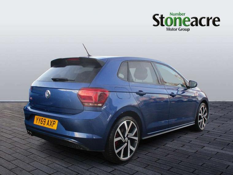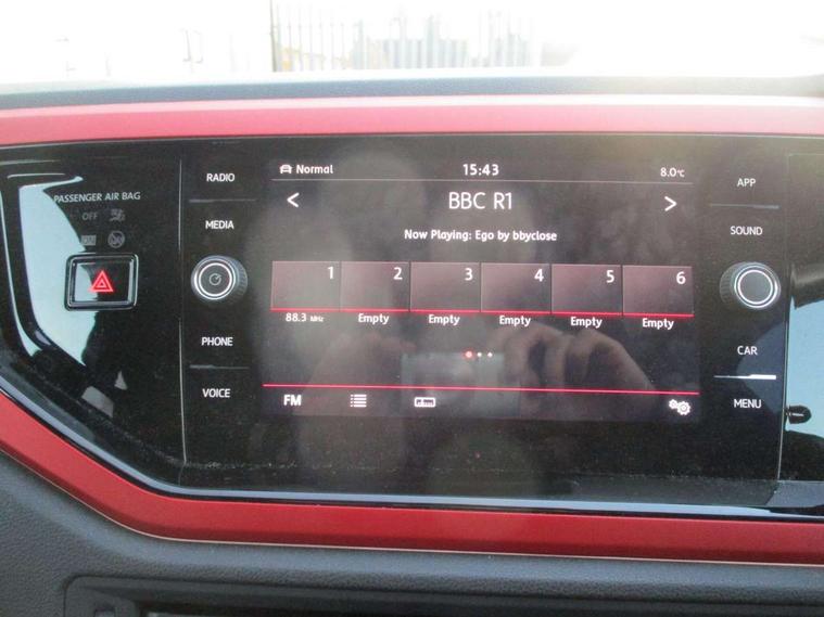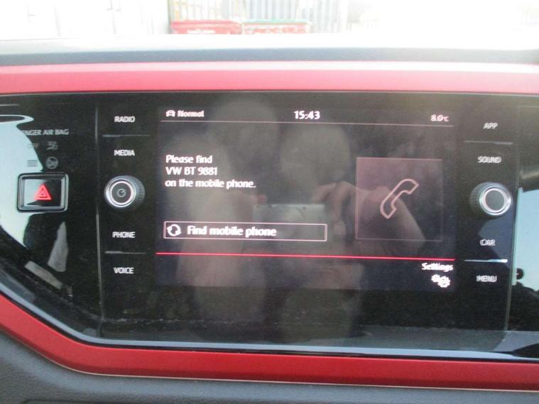 ACC - Adaptive cruise control with front assist, forward collision warning, distance monitoring, city emergency brake and speed limiter, App-Connect, Digital clock, Driver alert system, Driving Mode Selection with four preset modes - Eco, normal, sport or individual modes, Lights on warning, Multifunction computer plus, Power assisted speed sensitive steering, Speedo and rev counter, electronic odometer, trip, service interval display and fuel gauge, Start/stop system, Volkswagen connect, Warning buzzer and light for front seatbelts unfastened, Battery regeneration during braking, Galvanished body, Lowered sports suspension, XDS electronic differential lock, Body colour door handles, Body coloured side sills, Dusk sensor + automatic driving lights, Electric front windows, Electrically foldable, adjustable and heated door mirrors with reverse activated kerb view adjustment on passenger's side, Extended sill strips flared in black, Front fog lights including static cornering, Front windscreen washers and wipers with 4 speed intermittent delay, Gloss black rear spoiler (roof), Heat insulating tinted glass, Heated rear window with auto timer, High level 3rd brake light, Honeycomb radiator grille with red stripe, LED darkened rear light clusters, LED daytime running lights, LED dipped and main beam headlights with automatic range adjustment, LED rear number plate lights, Rear electric windows, Rear tinted glass from B-pillar backwards approx 65% tinted, Rear windscreen washer and wiper with interval delay, reverse activated, Stainless steel door sill protections with GTI logo, Twin chrome exhaust tailpipes, Unique GTI badging, 2 bag hooks in luggage compartment, 2 front cupholders and 12 V socket with cover, 3 rear head restraints, 60/40 split folding rear seat, AlumInium look pedals, Ambient lighting in front foorwell, front/rear door and dashboard light strips, Black roof lining and sun visors, Centre console storage with open storage compartment, Chrome-plated electric mirror adjustment switch surround, Chrome-plated electric window button surround, Driver and front passenger sunvisors with illuminated vanity mirrors, Dust/pollen filter, Folding rear seat backrest, Front and rear carpet mats with red stitching, Front centre armrest with storage compartment, Front head restraints, Front seat backrest storage pockets, Gear change selection via paddle shift on steering wheel, Gear lever gaiter in black trim surround, Glovebox, Handbrake grip button in chrome effect, Height/reach adjustable steering column, Instrument lighting, adjustable panel illumination, Interior light with delay, Isofix Preparation 2 Rear child seats, Jack and tool kit, Leather gear knob and handbrake grip, LED interior lighting - 2 reading lights front and rear with interior delay and dimming function, Luggage compartment cover, removable, Luggage compartment lighting, Luggage compartment with variable load floor, Storage compartment in front doors, Storage compartment in rear doors, Storage compartment under front seats, Three spoke leather trimmed multifunction steering wheel with GTI logo and red contrast stitching, GTI styling pack - Polo, Light and sight pack - Polo, 3 point height adj front seatbelts + pretensioners, 3x3 point rear seatbelts, ABS, Automatic post collision braking, Driver/front passenger airbag, Drivers and front passengers safety optimised head restraints, ESP with EDL + ASR, Front and rear passenger curtain airbags, Front passenger airbag deactivation, Front seat side impact airbags, Front/rear disc brakes, Hill hold control, Hydraulic Brake Assist (HBA), Red brake calipers, Single tone horn, Tyre pressure monitoring system, Alarm with interior protection and deactivation via infotainment system, Electronic engine immobiliser, Remote central locking with 2 remote folding keys, Remote keyless entry using key fob including Start/Stop button on centre console, Chrome instrument surround detailing, Chrome plated air vent surround, Gloss black instrument surrounds, Steel space saver spare wheel,