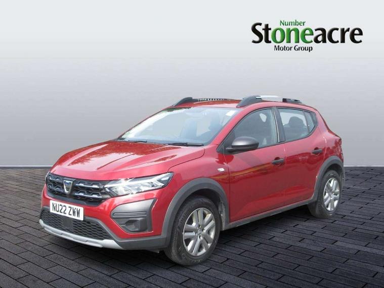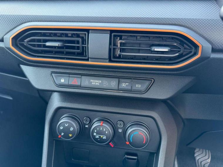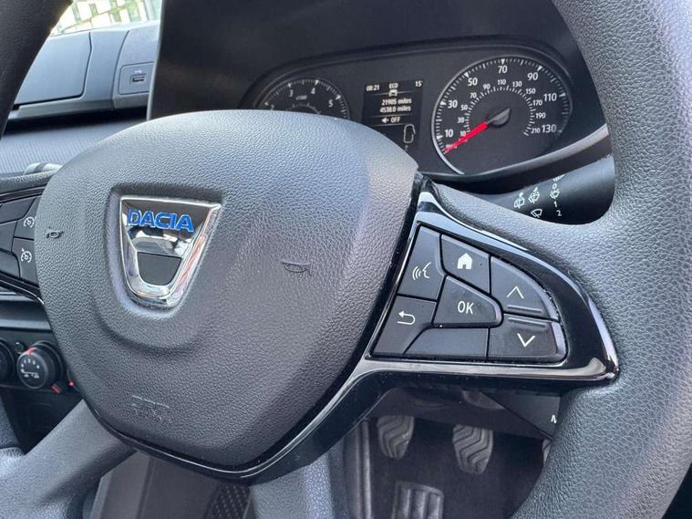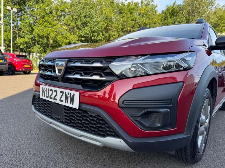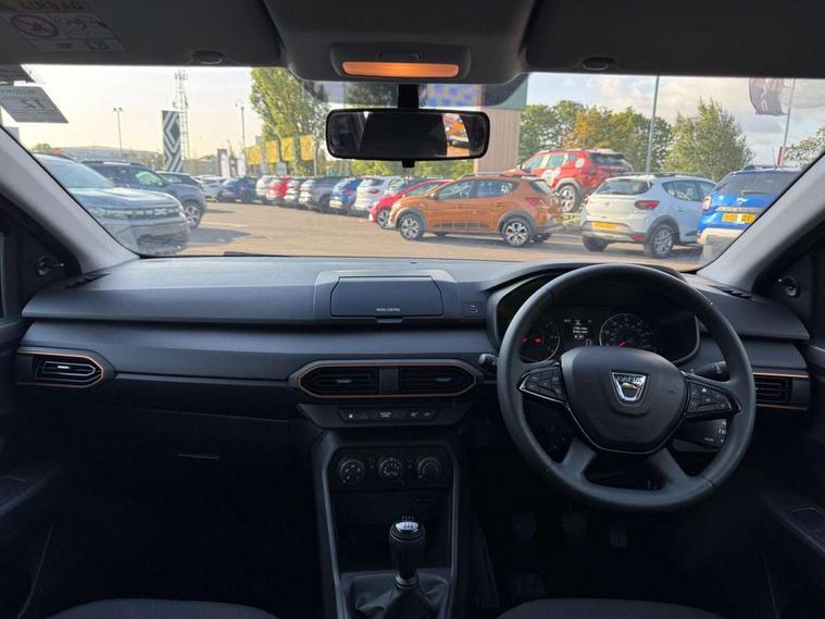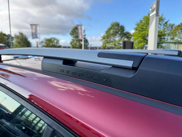 3.5" TFT instrument panel with on-board computer, Cruise control with speed limiter, eCall emergency call system, Eco mode, Electric power assisted steering, Rev counter, Stop/start system, Media Control - DAB Radio with display on instrument panel, Bluetooth, 2 Speakers, USB connection for data transfer and charging, USB socket, 3 speed windscreen wipers, Auto lighting, Black door handles, Black door mirrors, Black longitudinal roof bars, Black radiator grille, Body coloured bumpers, Front electric windows, Heated rear window, High level third brake light, LED automatic daytime running lights, LED Y-shape Dacia signature lighting, Manually adjustable door mirrors, Rain sensor, Rear manual windows, Rear side wing doors, Rear wash/wipe, Stepway inscription on radiator grille and roof bars, Tinted windows, 1/3 to 2/3 split folding rear seats, 12 volt front socket, 3 height adjustable rear headrests, 3 seat rear bench, Black interior door handles, Copper orange air vents, Fabric upholstery, Fixed smartphone holder on dashboard, Front armrest, Gear shift indicator, Height adjustable driver seat, Height adjustable front headrests, Height/depth adjustable steering wheel, Isofix points for child seats in both outer rear seats, Manual air conditioning, Single front passenger seat, Steering wheel controls, 3x3 point rear seatbelts, ABS and Emergency brake assist, Automatic emergency braking system, Child locks on rear doors, Door open warning, Driver airbag, ESC (Electronic Stability Control), ESP + Hill Start Assist, Front curtain airbags, Front seatbelt pretensioners, Front side airbags, Height adjustable front seatbelts, Passenger airbag, Seatbelt reminder for driver and front passenger, Tyre pressure monitor, Automatic central locking, Immobiliser, Remote central locking, 16" Flex wheels with full wheel cap,