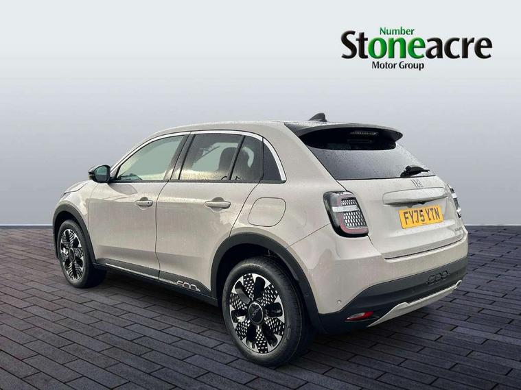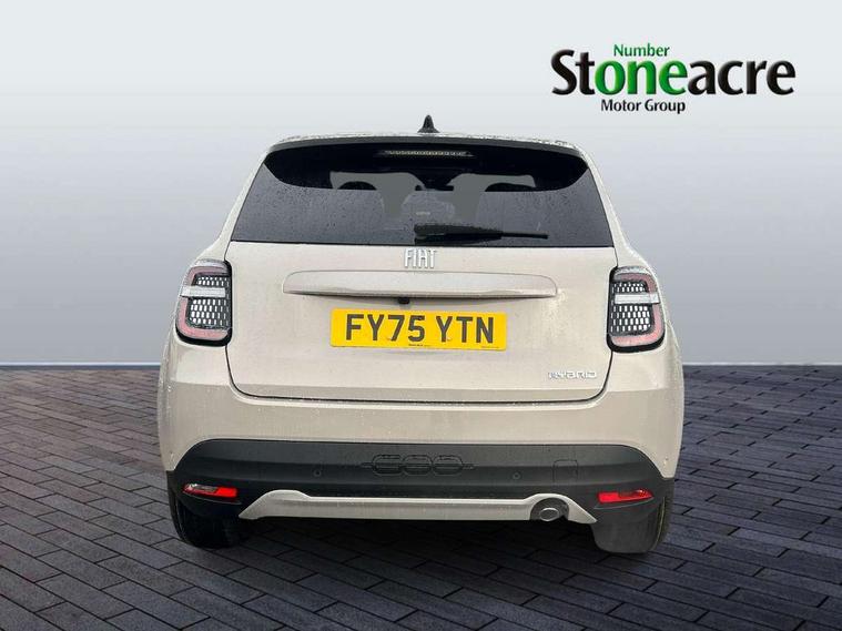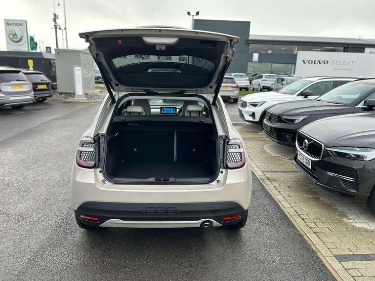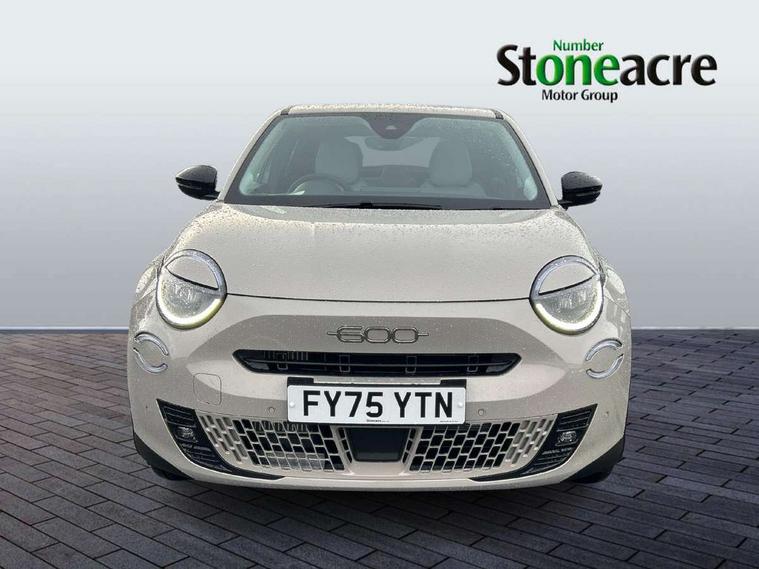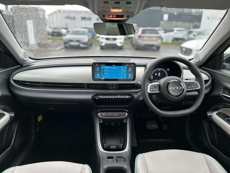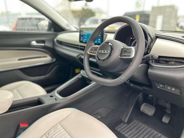 360 degree parking sensors with 180 degree rear view camera, 7" TFT digital cluster, Autonomous driving level 2: Adaptive cruise control with stop & go and lane centering, Blind spot detection, Bluetooth connectivity, BSRF connectivity box, Connected services, Drowsy driver detection, Emergency E-call assist, Engine emission level default, GSR II step 1, Hands free power liftgate, Intelligent speed assist, Lane keeping assistant (LKA), Odometer, Power assist steering, Rain and dusk sensors, Semi-automatic parking with Visiopark 1 system, Traffic sign recognition, Wireless apple car play/android Auto, Wireless charging pad for smartphones, Without drive mode selector, L2-AGM 12V battery, 1st Row USB type-A and USB type-C, 2nd Row USB type-C, 6 speaker audio system, Radio, Uconnect infotainment 10.25" touchscreen with integrated navigation system and DAB, All power windows express Up/Down, Auto dimming frameless rear view mirror, Automatic headlights, Automatic high/low beam, Body coloured door handles, Chrome day light openings, Chromed exhaust tip, Electric adjustable/heated/folding door mirrors, Exterior chrome accents, Front and rear Chromed 600 logo, Gloss black finish B pillar, Gloss black shark fin antenna, Glossy black door mirrors, Heated windscreen wiper blade area, LED 3rd brake light, LED daytime running lights, LED Fog lamps with cornering function, LED front signature lighting, LED front turn indicators and position lights, LED rear lights, LED rear signature lighting, LED reflector headlamps, Matt black side skirts with 600 chromed logo, Privacy glass, Puddle lights, Rear bumper embossed 600 logo, Rear roof spoiler, Rear side wing doors, Rear wiper, 2 Spoke synthetic leather steering wheel with audio control, 3 rear headrests, 3 seat bench in 2nd row, 6 way manually adjustable front passenger seat, 6 way power adjustable driver seat with lumbar support and massage function, Adjustable trunk floor, Automatic climate control, Auxilliary 12V power socket, Cargo flex fit, Chrome interior door handles, Dark metachrome dashboard ring, English handbook, Front centre armrest, Front headrests, Front passenger grab handle, Front seatback pockets, Heated front seats, ISOFIX attachment on front passenger and rear passenger seats, Matt Ivory painted dashboard fascia, Metachrome central compartment bezel, Monogram Synthetic leather upholstery, Paddle shifts, Partial body cover for shipment, Predisposal for accessory upgrade to default tunnel pad cover (dedicated prnd bezel), Rear seat 40/60 split, Single front passenger seat, Smart 15L storage central tunnel with La prima tunnel pad cover, Sunvisor label ciao Fiat, Sunvisors with vanity mirrors, Velour floor mats, 3x3 point rear seatbelts, 6 airbags, ABS, Autonomous Emergency Brake (AEB) & Vulnerable Road User (VRU) Protection, Child locks on rear doors, Electronic parking brake with auto hold, ESC (Electronic Stability Control), Front passenger airbag deactivation, Seatbelt reminder and pretensioners for all seats, Anti-theft volumetric alarm, Anti-theft wheel bolts, Passive entry and keyless go, 18" Diamond cut alloy wheels, Fix and go puncture repair kit,