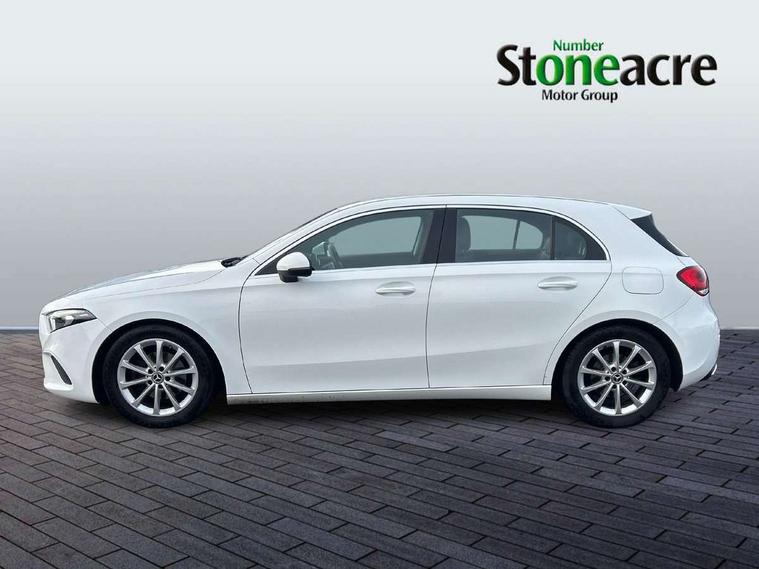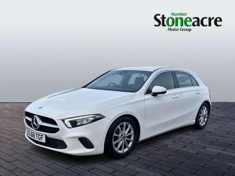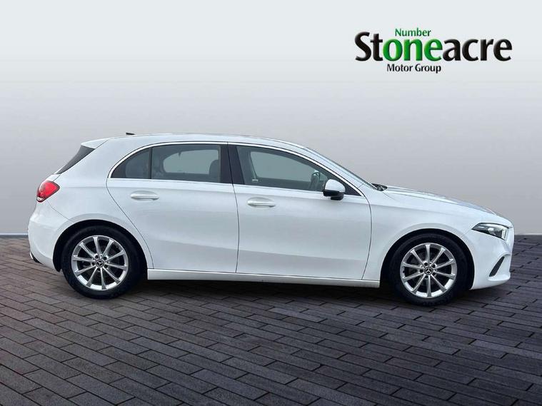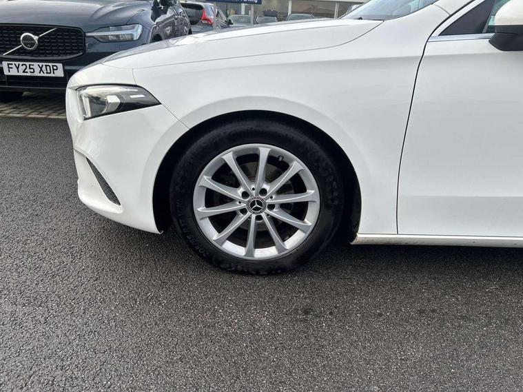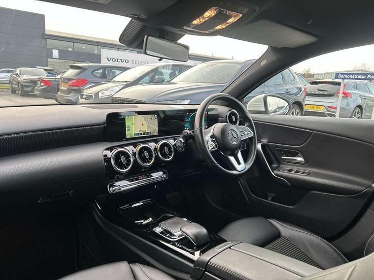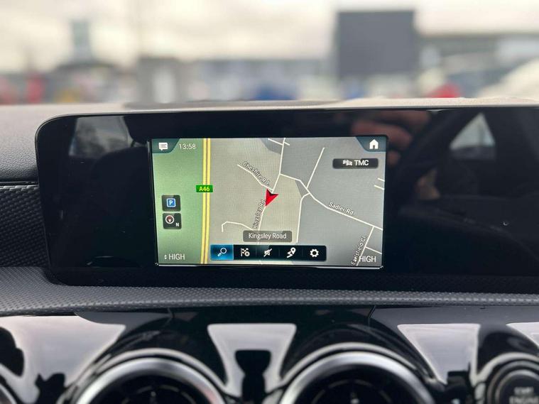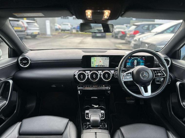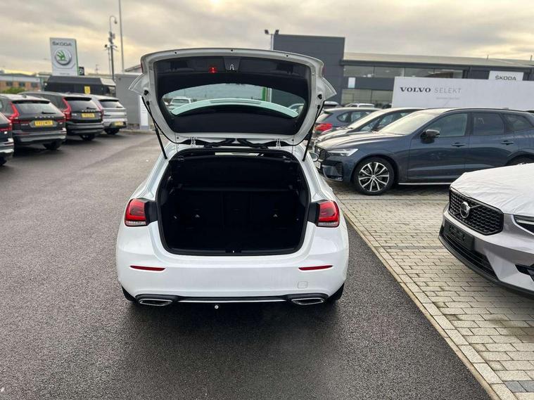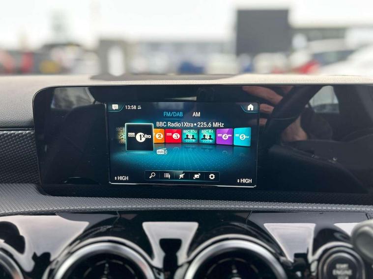 180 degree rear view camera with parking guidelines, 7" colour screen in instrument panel, 7" touchscreen media display, Active lane keep assist, Attention assist, Brake pad wear indicator warning light, Cruise control + speed limiter, Direct steering, Direction indicators with lane change function, DYNAMIC SELECT with a choice of driving modes (ECO, Comfort, Sport, Sport+ and Individual), Fluid level warning indicator for fuel, oil, coolant and washer fluid, Hard-disk navigation, Lamp failure indicator, Mercedes me connect including emergency call system, accident recovery, breakdown management and maintenance, Outside temperature gauge, Radio aerial integrated into roof spoiler, Service indicator (ASSYST), Speed sensitive power steering, Stop/start system, Trip computer, Voice activation, Lowered comfort suspension, DAB Digital radio, Dual bluetooth interface, 2 USB ports (type C), MBUX multimedia system with DAB digital radio and touchpad including satellite navigation, Active aerodynamics with AIRPANEL in the front apron, Adaptive brake lights, Blue tinted glass, Body colour bumpers, Body colour door handles, Body colour side skirt, Body coloured door mirrors, Chrome beltline trim, Chrome weather strip, Diamond radiator grille with black pins with one louvre in silver + chrome insert, Electric adjustable and heated door mirrors with integrated LED side indicators, Electric front windows, Electric rear windows, Exhaust system - Twin trapezoidal tailpipes in polished stainless steel, Headlamp assist automatic headlamp activation, Heated glass rear windscreen + timer control, LED high performance headlamps with integrated LED daytime running lights, LED tail lamp, LED third brake light, Rain sensor windscreen wipers, Rear fog lights, Rear wiper, 12V socket, 3 Spoke leather multi function steering wheel, 40:20:40 split folding rear seats, Air vents surround and cruciform nozzle in silver chrome, Artico man-made leather/Fleron fabric upholstery, Auto Mercedes-Benz child seat recognition sensor, Black roof lining, Controller on centre console with chrome surround, Cup holder and stowage compartment lighting, Floor mats, Front centre armrest with storage compartment, Front comfort seats with adjustable head restraints, Front door sills with Mercedes Benz lettering, Front doors with ambient and signal light, Front footwell lights, Front reading lamps, Front seat backs luggage nets, Front seat cushion length adjustment, Front signal exit lamp, Front vanity lights, Gearshift paddles on steering wheel, Handle recess/closing light, Height/reach adjustable steering column, Illuminated glovebox, ISOFIX Child seat top tethers and anchor fixings, Load securing rings in luggage compartment, Luggage compartment cover, Manual height adjustable front seats, Oddments tray lighting, Rear head restraints, Rear Reading Lamps, Seat occupancy sensor for front passenger seat, Storage compartment under load area floor, Sunvisors with illuminated vanity mirrors, Touchpad, Touchpad illumination, Twin front cupholders, Two zone thermotronic luxury automatic climate control, Seat comfort pack - A Class, 3 rear 3 point seatbelts, ABS with Brake Assist, Active bonnet, Active brake assist includes forward collision warning system with autonomous braking, Adaptive brake assist with hold function and hill start assist, Black seatbelts, Childproof locks manually operated for rear doors and electrically operated for rear power windows, Crash responsive emergency lighting, Driver and passenger head and side airbags, Drivers knee airbag, Dual stage driver/passenger airbags, Electronic parking brake, ESP curve dynamic assist, ESP with ASR, Front and rear seatbelt reminder, Tyre pressure monitoring system, Warning triangle and first aid kit, Window airbags, Alarm system/interior protection/immobiliser, Keyless Go, Remote central locking and crash sensor with emergency opening function, Dark carbon fibre interior trim, 17" 10 spoke light alloy wheels painted in vanadium silver, Tirefit sealant kit,