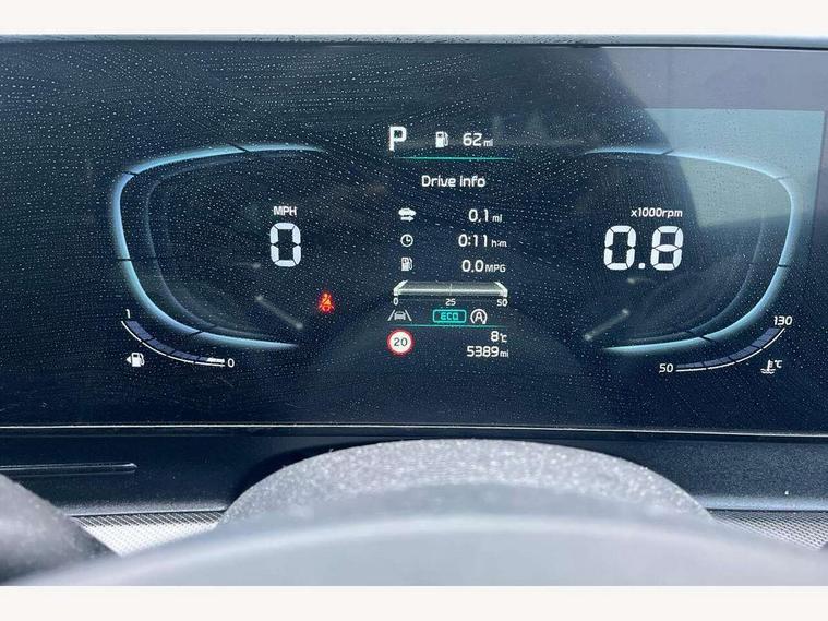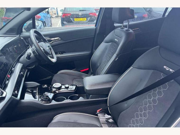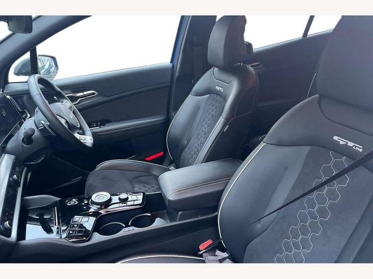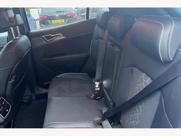 12.3" Display with navigation, 4.2" supervision colour cluster display, Apple car play/Android Auto with voice control, Drive mode selector, Driver attention warning, E-call, Forward collision avoidance assist (FCA) - city/pedestrian/cyclist/junction covering, Front and rear parking sensors, Highway Driving Assist (HDA), Intelligent speed limit assist, Kia Connect (UVO), Lane Following Assist (LFA), Lane keep assist, Low washer fluid warning, Motor driven power steering, Rear view monitor, Reversing camera system integrated into centre fascia screen, Smart cruise control with stop and go functionality, Tailgate, Trip computer, Windscreen washer level indicator, Intelligent Stop and Go, 6 speaker audio system, Bluetooth audio streaming, DAB Radio with MP3, Rear USB port, Steering wheel mounted audio controls, USB C type charging ports on centre console, USB C type charging ports on side of front seats, USB port for connection of a media device, All round electric windows with drivers and front passenger auto up/down and safety function, Auto dimming rear view mirror, Automatic headlight control system, Automatic window defogger, Backlite glass heated with timer, Black and body coloured bumpers, Body colour exterior door handles, Body colour radiator upper garnish and door garnish, Electrically adjustable/heated/folding door mirrors with LED indicators, Front and rear chrome skid plates, Gloss black door mirrors, Gloss black radiator grille, Gloss black side sill and wheel arch body mouldings, Glossy black roof rack, GT-Line exterior styling, High beam assist, Interior electrochromic mirror, LED daytime running lights, LED front fog lamps, LED headlamps (low and high beam - MFR type), LED High mounted stop light, LED rear combination lamp, Rain sensing wipers with aero blades, Rear fog lamp, Rear privacy glass, Rear side wing doors, Rear spoiler, Rear wiper, Satin finished beltline, Silver window surround, Tinted rear glass, Trailer stability assist, 12V power socket in front centre fascia and luggage compartment, 2nd row personal lamps, 3 seat bench in 2nd row, 3 x passenger assist grips, 40/20/40 split folding rear seat, All-round height adjustable headrests, Aluminium pedals, Automatic air conditioning, Black headlining, Centre console storage box, Cupholders in rear armrest, Door courtesy lamps, Drink holder at centre armrest, Driver and front passenger side sunvisors with illuminated vanity mirrors, Driver's seat manual height adjust, Drivers seat power lumbar support, Front and rear door storage, Front cabin, rear & luggage compartment lights, Front seat and rear pockets, Gear shift indicator, Glovebox illumination, GT-Line Interior Styling, Heated front seats, Heated steering wheel, Interior door lock/unlock function, ISOFIX Child seat top tethers and anchor fixings outer rear seats, Leather steering wheel, Luggage area load cover, Luggage area parcel shelf, Luggage board, Luggage net with hooks, Metal paint interior door handles, Overhead console lamp, Paddle shift controls, Rear cabin light, Rear coat hooks, Single front passenger seat, Suede leather upholstery, Tilt/telescopic adjustable steering wheel, Ventilation ducts to rear compartment, Active front headrests, All round 3-point seatbelts, Anti-lock braking system (ABS), Dual front side airbags, Dual horn, Dynamic brake control, Electronic parking brake with auto hold function, Electronic stability control with downhill brake control, Front passenger airbag cut-off switch, Front seatbelt pretensioners + load limiters, Height adjustable front seatbelts, Hill start assist control (HAC), Impact sensing auto door unlocking, Multi collision brake assist, Rear airbags, Rear door child safety locks, Rear seat alert system, Seatbelt reminder warning, Traction control, Twin curtain airbags, Twin front airbags, Tyre pressure monitoring system, Vehicle stability management, Advanced anti-theft system including immobiliser and alarm, Door deadlocks, Engine Start/Stop Button with Smart Entry System, Locking wheel nuts, Smart key with motion sensor, Speed sensitive auto door locking, Visible vehicle identification number, Aluminium pattern finish centre fascia and door garnish, 19" GT-Line alloy wheels, Tyre mobility kit,