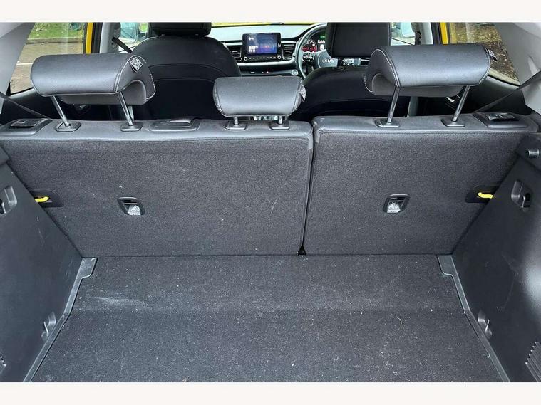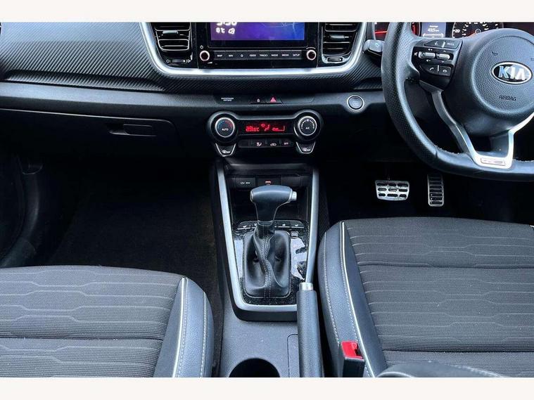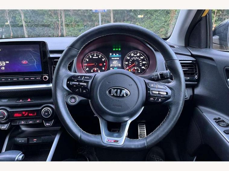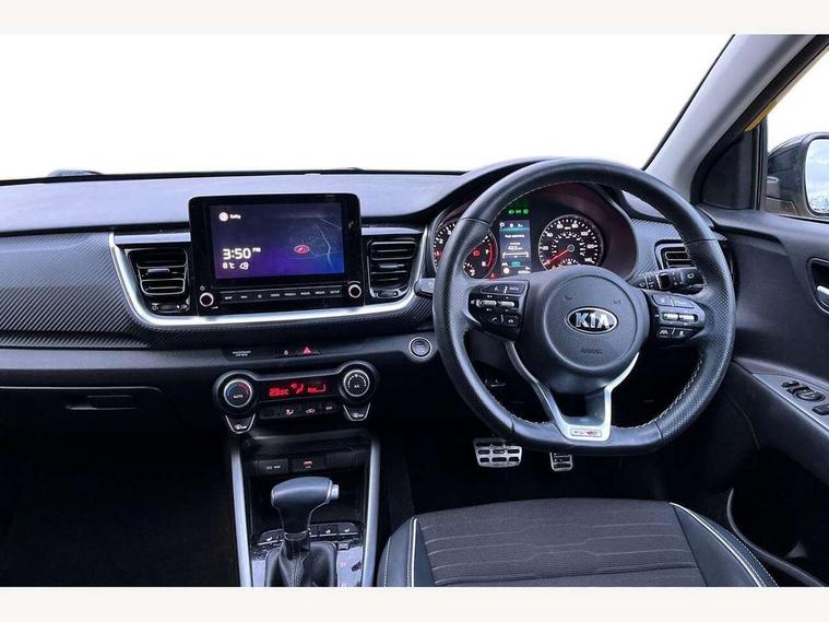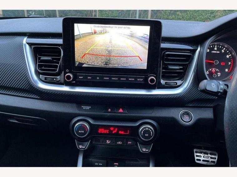 4.2" supervision colour cluster display, 8" Touchscreen navigation with telematics, Android auto with voice control, Apple car play with voice control, Blind spot collision avoidance rear, Blind spot collision warning, Drive mode selector, Electric power steering, Emergency stop signalling system, External temperature display, Forward Collision-Avoidance Assist (FCA) - City/Pedestrian/Cyclist, Front parking sensors, Intelligent speed limit assist, Kia connected services featuring TomTom live, Lane keeping assist system (LKAS), Driver attention warning (DAW) and High beam assist (HBA), Rear parking sensor, Reversing camera system, Smart cruise control, Trip computer, Intelligent Stop and Go, Audio system with 6 speakers, Bluetooth with music streaming, Front USB port, Rear USB port, Steering wheel mounted controls, Aero blade type windshield wipers, All round electric windows with drivers auto up/down function, Auto dimming rear view mirror, Automatic defog system, Automatic headlights control, Black side sill, door garnish and wheel arch trims, Black/body colour bumpers, Body coloured exterior door handles, Chrome side window trim, Electrically adjustable/heated/folding door mirrors with LED indicators, Front and rear silver skid plates, Gloss black door mirrors with matt black lower housing, Headlight levelling device, Heated rear window, High gloss black and satin radiator grille, LED Bi-function projection headlights with static bending, LED daytime running lights, LED front fog lights, LED rear combination lights, Privacy glass - Rear windows and tailgate, Rain sensing front wipers, Rear fog lights, Rear wash/wipe, Roof coloured rear spoiler with high mounted braking light, Roof rails, Shark fin antenna, Solar windshield glass, Speed variable front wipers, Two tone paint, Welcome and follow-me home light functionality, Windscreen Washer Level Warning, 12V power point front, 60/40 split folding rear seat, Air filter, All-round height adjustable headrests, Aluminium pedals, Automatic air conditioning, Centre armrest storage box, Centre console with cupholders, D-Cut perforated leather trimmed steering wheel, Dash illumination dimmer switch, Driver's seat height adjuster, Dual Height Luggage Area Floor, Front and centre cabin lights, Front and rear door map pockets with bottle holder, Gear shift indicator, Glovebox illumination, GT-Line cloth/faux leather upholstery, Heated front seats, Heated steering wheel, ISOFIX Child seat top tethers and anchor fixings outer rear seats, Leather trimmed gearshift, Luggage area light, Luggage area parcel shelf, Luggage net, Luggage net with hooks, Overhead console lamp, Overhead console with sunglasses cases, Passenger front seatback pockets, Passenger seat height adjuster, Satin chrome interior door handles, Sunvisors with vanity mirror illumination (Driver and front passenger), Tilt/telescopic adjustable steering wheel, ABS with Electronic Brakeforce Distribution (EBD) and Brake Assist System (BAS), All round 3-point seatbelts, Electronic stability control (ESC) and vehicle stability management (VSM), Front passenger airbag cut-off switch, Front seatbelt pretensioners + load limiters, Height adjustable front seatbelts, Hill start assist control (HAC), Impact sensing auto door unlocking, Rear seat Occupancy alert, Seatbelt reminder warning, Twin curtain airbags, Twin front airbags, Twin front side airbags, Tyre pressure monitoring system, Alarm system, Door deadlocks, Engine immobiliser, Locking wheel nuts, Smart key with engine start/stop button, Speed sensitive auto door locking, Visible vehicle identification number, High gloss black centre fascia, 17" GT-Line alloy wheels, Tyre mobility kit,