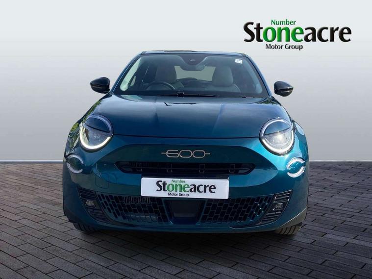 7" TFT digital cluster, Bluetooth connectivity, BSRF connectivity box, Connected services, Cruise control, Drowsy driver detection, Emergency E-call assist, Engine emission level default, GSR II step 1, Intelligent speed assist, Lane keeping assistant (LKA), Odometer, Power assist steering, Rain and dusk sensors, Rear parking sensors, Traffic sign recognition, Wireless apple car play/android Auto, Without drive mode selector, L2-AGM 12V battery, 1st Row USB type-A and USB type-C, 4 speaker audio system, Radio, Uconnect infotainment 10.25" touchscreen with DAB, All power windows express Up/Down, Auto dimming frameless rear view mirror, Automatic headlights, Body coloured door handles, Chrome day light openings, Electric adjustable door mirrors, Exterior chrome accents, Front and rear Chromed 600 logo, Gloss black finish B pillar, Gloss black shark fin antenna, Glossy black door mirrors, Heated windscreen wiper blade area, LED 3rd brake light, LED daytime running lights, LED Fog lamps with cornering function, LED front signature lighting, LED front turn indicators and position lights, LED rear lights, LED rear signature lighting, LED reflector headlamps, Matt black side skirts with 600 chromed logo, Rear bumper embossed 600 logo, Rear roof spoiler, Rear side wing doors, Rear wiper, 2 Spoke synthetic leather steering wheel with audio control, 3 rear headrests, 3 seat bench in 2nd row, 4 way manually adjustable passenger seat, 6 way manually adjustable drivers seat, Auxilliary 12V power socket, Body colour dashboard fascia, Chrome interior door handles, Dark metachrome dashboard ring, English handbook, Front centre armrest, Front headrests, Front passenger grab handle, Front seatback pockets, ISOFIX attachment on front passenger and rear passenger seats, Manual climate control, Metachrome central compartment bezel, Monogram fabric upholstery, Paddle shifts, Partial body cover for shipment, Predisposal for accessory upgrade to default tunnel pad cover (dedicated prnd bezel), Rear seat 40/60 split, Single front passenger seat, Smart 15L storage central tunnel with tunnel pad cover, Sunvisor label ciao Fiat, Sunvisors with vanity mirrors, 3x3 point rear seatbelts, 6 airbags, ABS, Autonomous Emergency Brake (AEB) & Vulnerable Road User (VRU) Protection, Child locks on rear doors, Electronic parking brake with auto hold, ESC (Electronic Stability Control), Front passenger airbag deactivation, Seatbelt reminder and pretensioners for all seats, Anti-theft volumetric alarm, Anti-theft wheel bolts, Keyless Go, 17" Diamond cut alloy wheels, Fix and go puncture repair kit,