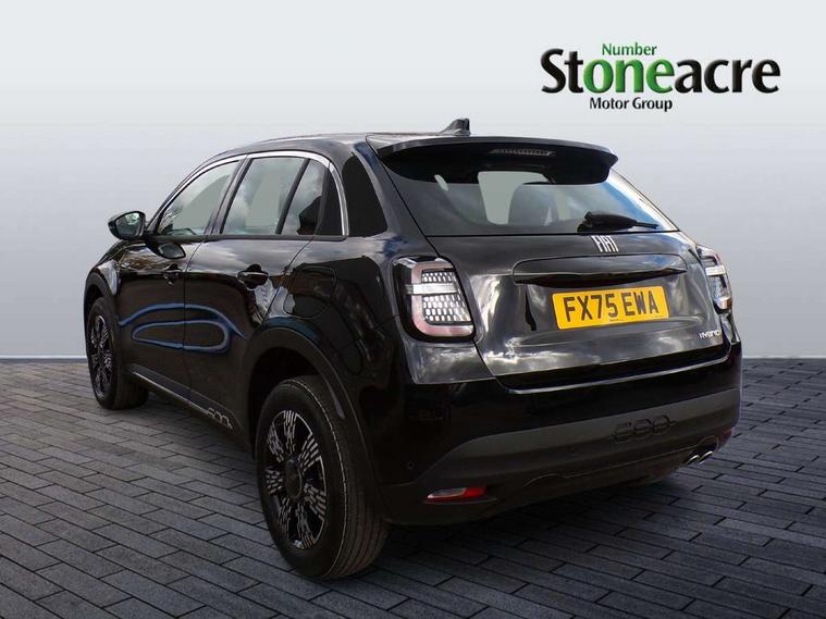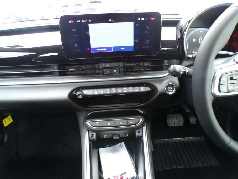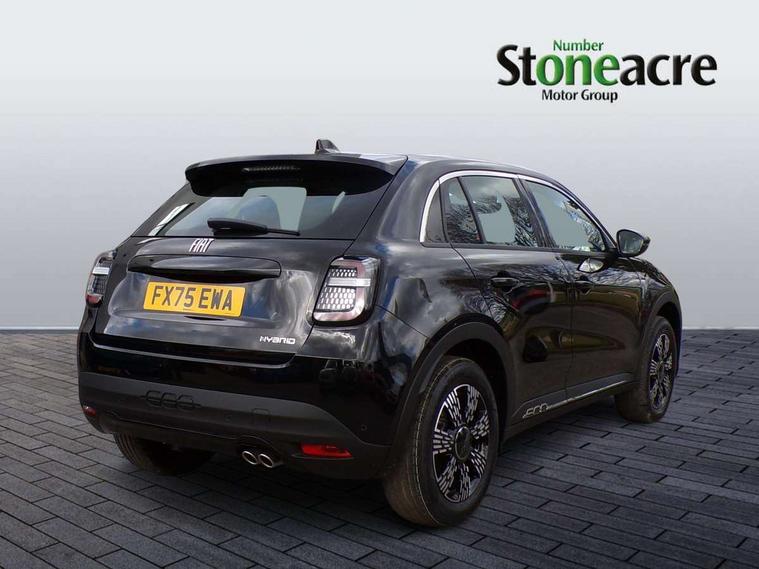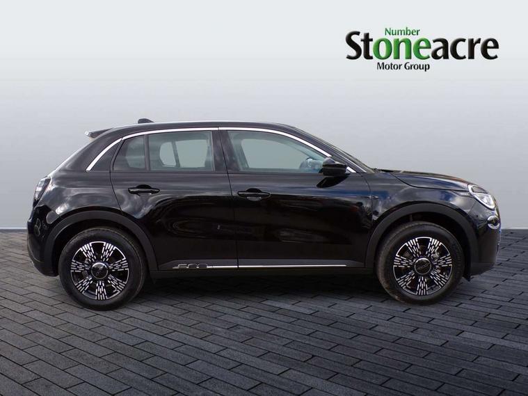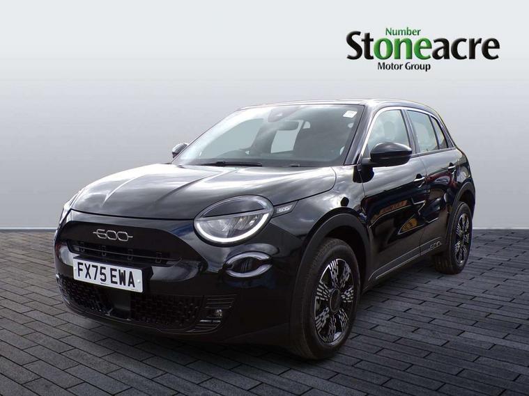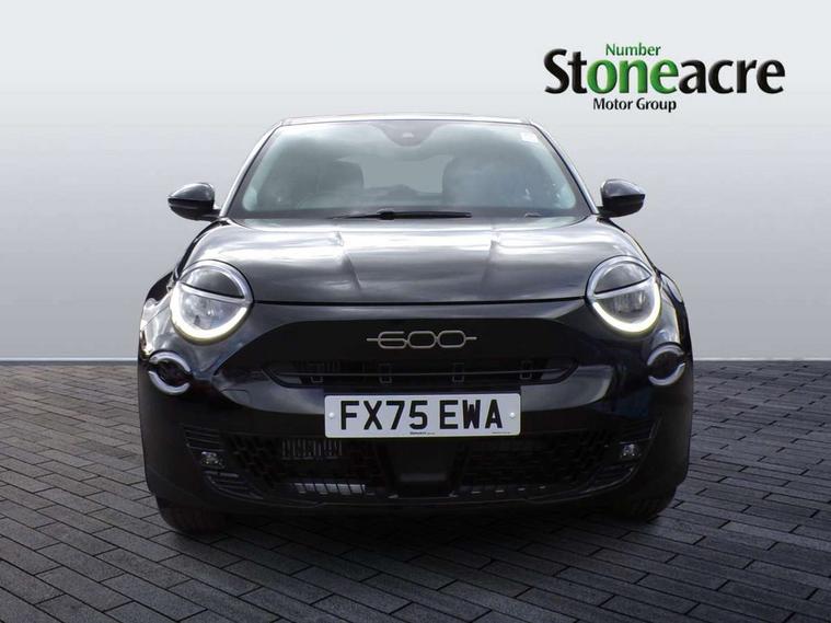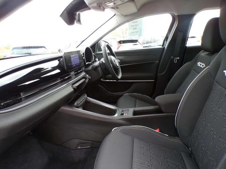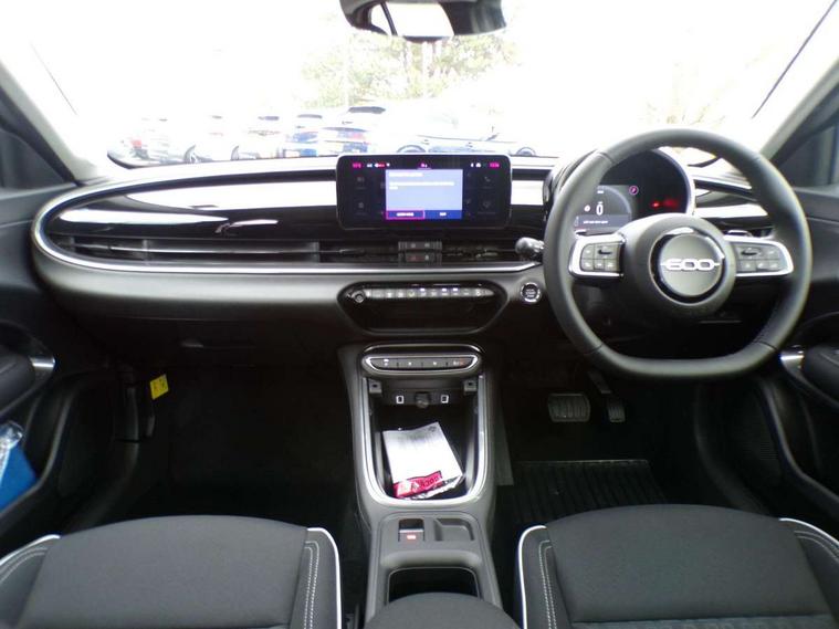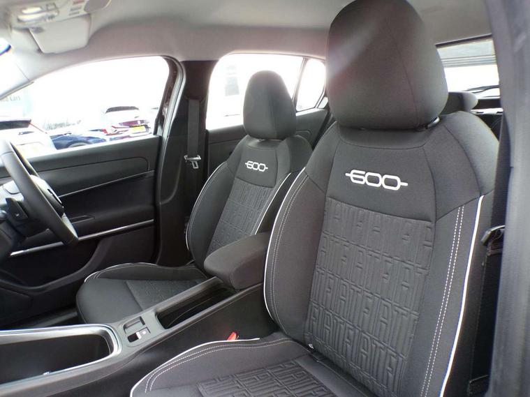 7" TFT digital cluster, Bluetooth connectivity, BSRF connectivity box, Connected services, Cruise control, Drowsy driver detection, Emergency E-call assist, Engine emission level default, GSR II step 1, Intelligent speed assist, Lane keeping assistant (LKA), Odometer, Power assist steering, Rain and dusk sensors, Rear parking sensors, Traffic sign recognition, Wireless apple car play/android Auto, Without drive mode selector, L2-AGM 12V battery, 1st Row USB type-A and USB type-C, 4 speaker audio system, Radio, Uconnect infotainment 10.25" touchscreen with DAB, All power windows express Up/Down, Auto dimming frameless rear view mirror, Automatic headlights, Body coloured door handles, Chrome day light openings, Electric adjustable door mirrors, Exterior chrome accents, Front and rear Chromed 600 logo, Gloss black finish B pillar, Gloss black shark fin antenna, Glossy black door mirrors, Heated windscreen wiper blade area, LED 3rd brake light, LED daytime running lights, LED Fog lamps with cornering function, LED front signature lighting, LED front turn indicators and position lights, LED rear lights, LED rear signature lighting, LED reflector headlamps, Matt black side skirts with 600 chromed logo, Rear bumper embossed 600 logo, Rear roof spoiler, Rear side wing doors, Rear wiper, 2 Spoke synthetic leather steering wheel with audio control, 3 rear headrests, 3 seat bench in 2nd row, 4 way manually adjustable passenger seat, 6 way manually adjustable drivers seat, Auxilliary 12V power socket, Body colour dashboard fascia, Chrome interior door handles, Dark metachrome dashboard ring, English handbook, Front centre armrest, Front headrests, Front passenger grab handle, Front seatback pockets, ISOFIX attachment on front passenger and rear passenger seats, Manual climate control, Metachrome central compartment bezel, Monogram fabric upholstery, Paddle shifts, Partial body cover for shipment, Predisposal for accessory upgrade to default tunnel pad cover (dedicated prnd bezel), Rear seat 40/60 split, Single front passenger seat, Smart 15L storage central tunnel with tunnel pad cover, Sunvisor label ciao Fiat, Sunvisors with vanity mirrors, 3x3 point rear seatbelts, 6 airbags, ABS, Autonomous Emergency Brake (AEB) & Vulnerable Road User (VRU) Protection, Child locks on rear doors, Electronic parking brake with auto hold, ESC (Electronic Stability Control), Front passenger airbag deactivation, Seatbelt reminder and pretensioners for all seats, Anti-theft volumetric alarm, Anti-theft wheel bolts, Keyless Go, 17" Diamond cut alloy wheels, Fix and go puncture repair kit,