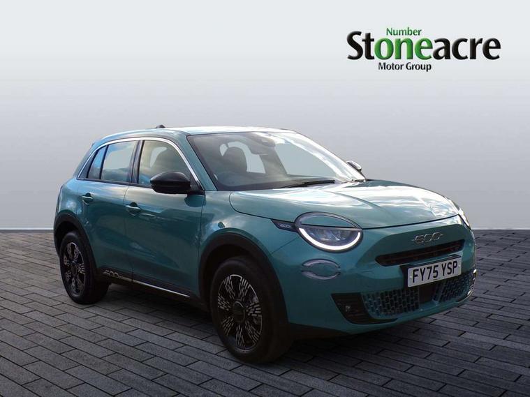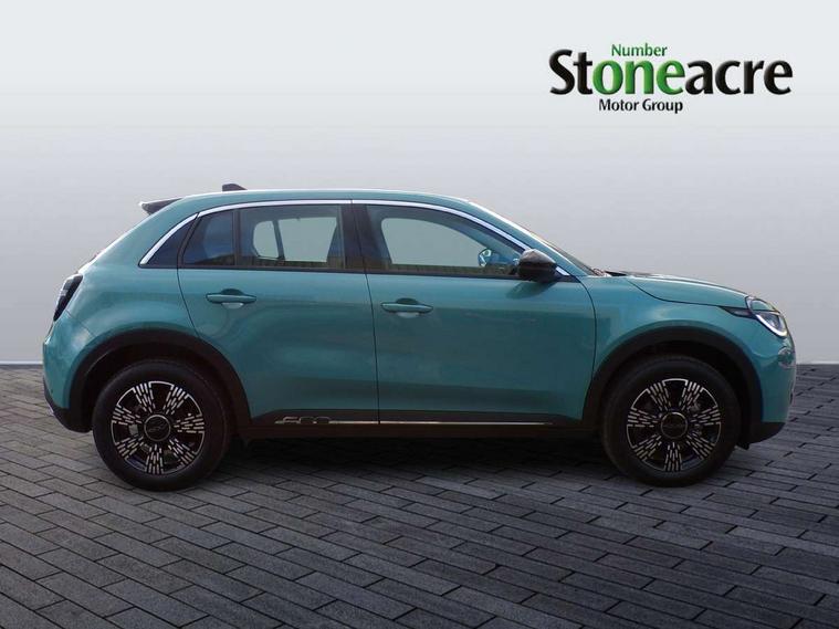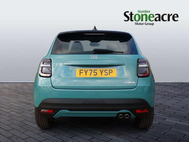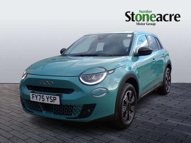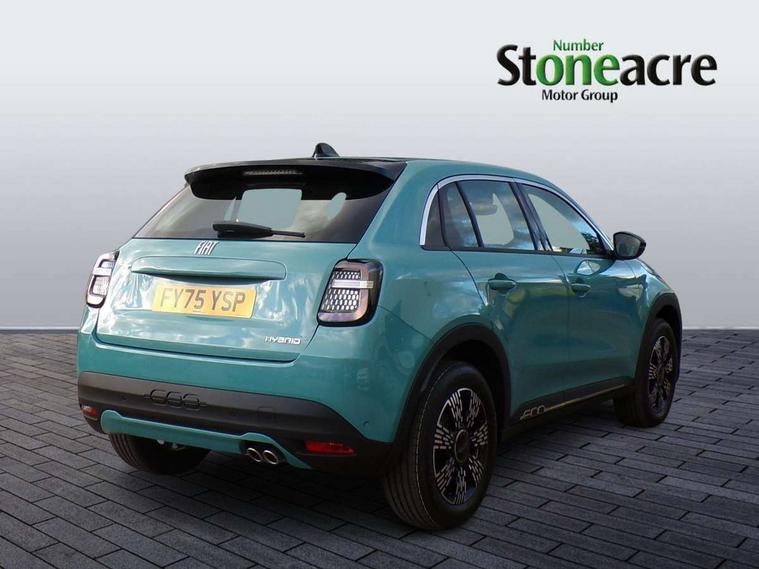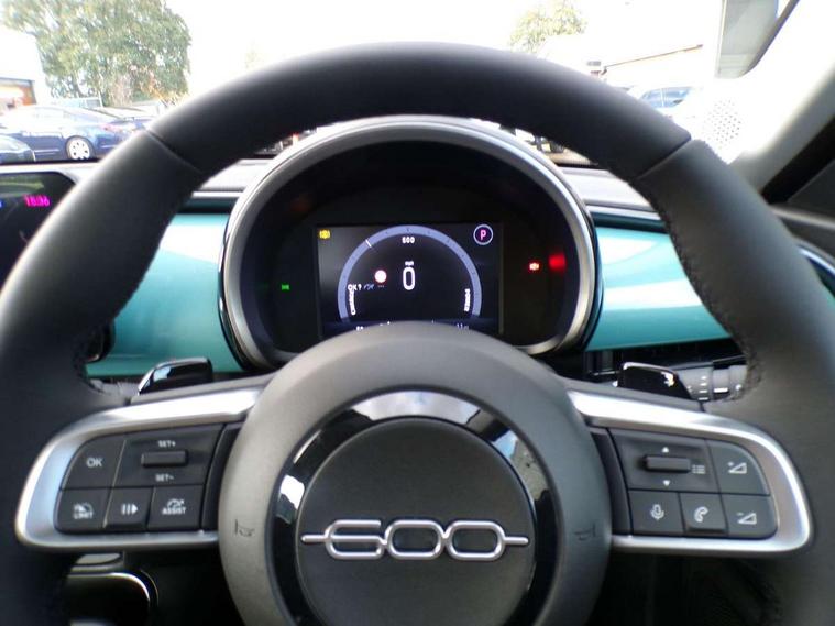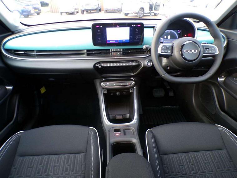 7" TFT digital cluster, Bluetooth connectivity, BSRF connectivity box, Connected services, Cruise control, Drowsy driver detection, Emergency E-call assist, Engine emission level default, GSR II step 1, Intelligent speed assist, Lane keeping assistant (LKA), Odometer, Power assist steering, Rain and dusk sensors, Rear parking sensors, Traffic sign recognition, Wireless apple car play/android Auto, Without drive mode selector, L2-AGM 12V battery, 1st Row USB type-A and USB type-C, 4 speaker audio system, Radio, Uconnect infotainment 10.25" touchscreen with DAB, All power windows express Up/Down, Auto dimming frameless rear view mirror, Automatic headlights, Body coloured door handles, Chrome day light openings, Electric adjustable door mirrors, Exterior chrome accents, Front and rear Chromed 600 logo, Gloss black finish B pillar, Gloss black shark fin antenna, Glossy black door mirrors, Heated windscreen wiper blade area, LED 3rd brake light, LED daytime running lights, LED Fog lamps with cornering function, LED front signature lighting, LED front turn indicators and position lights, LED rear lights, LED rear signature lighting, LED reflector headlamps, Matt black side skirts with 600 chromed logo, Rear bumper embossed 600 logo, Rear roof spoiler, Rear side wing doors, Rear wiper, 2 Spoke synthetic leather steering wheel with audio control, 3 rear headrests, 3 seat bench in 2nd row, 4 way manually adjustable passenger seat, 6 way manually adjustable drivers seat, Auxilliary 12V power socket, Body colour dashboard fascia, Chrome interior door handles, Dark metachrome dashboard ring, English handbook, Front centre armrest, Front headrests, Front passenger grab handle, Front seatback pockets, ISOFIX attachment on front passenger and rear passenger seats, Manual climate control, Metachrome central compartment bezel, Monogram fabric upholstery, Paddle shifts, Partial body cover for shipment, Predisposal for accessory upgrade to default tunnel pad cover (dedicated prnd bezel), Rear seat 40/60 split, Single front passenger seat, Smart 15L storage central tunnel with tunnel pad cover, Sunvisor label ciao Fiat, Sunvisors with vanity mirrors, 3x3 point rear seatbelts, 6 airbags, ABS, Autonomous Emergency Brake (AEB) & Vulnerable Road User (VRU) Protection, Child locks on rear doors, Electronic parking brake with auto hold, ESC (Electronic Stability Control), Front passenger airbag deactivation, Seatbelt reminder and pretensioners for all seats, Anti-theft volumetric alarm, Anti-theft wheel bolts, Keyless Go, 17" Diamond cut alloy wheels, Fix and go puncture repair kit,