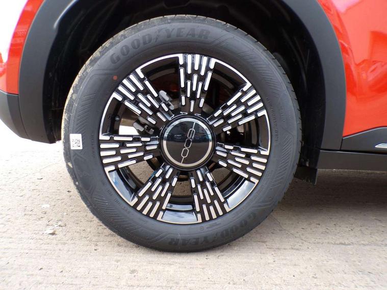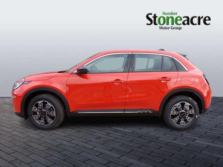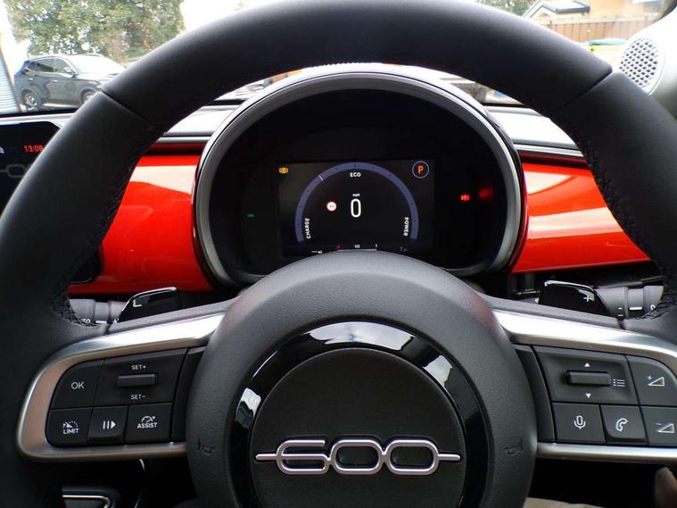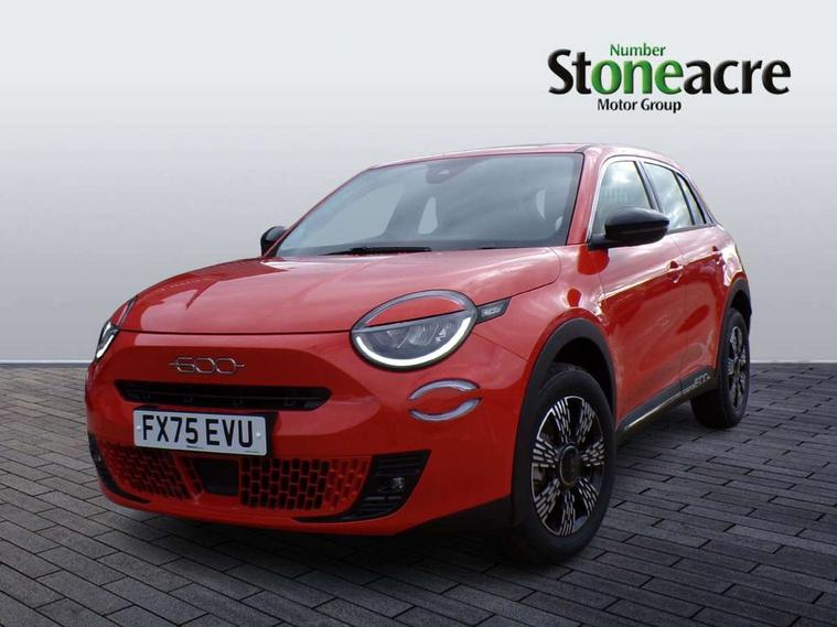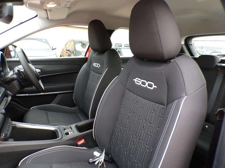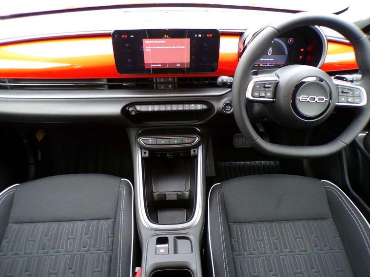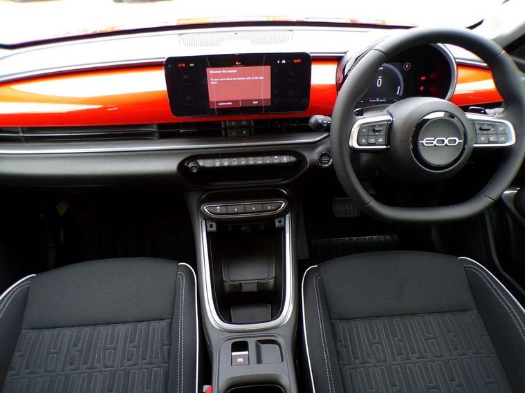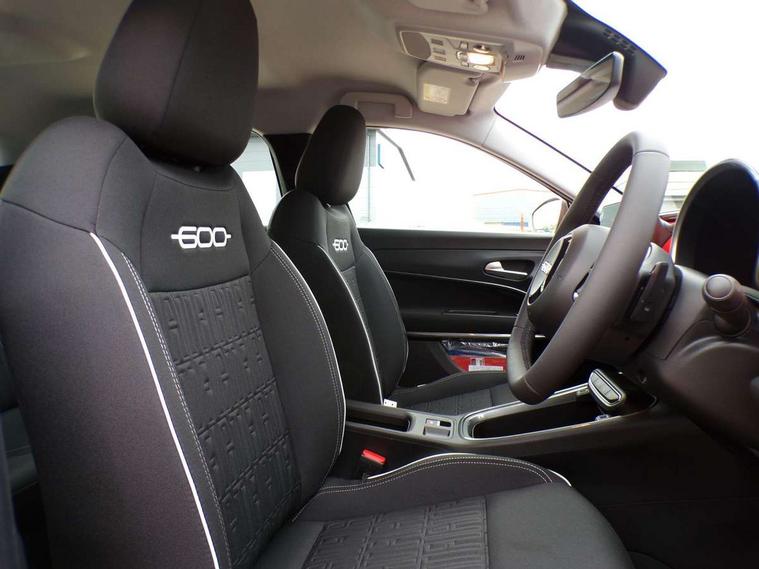 7" TFT digital cluster, Bluetooth connectivity, BSRF connectivity box, Connected services, Cruise control, Drowsy driver detection, Emergency E-call assist, Engine emission level default, GSR II step 1, Intelligent speed assist, Lane keeping assistant (LKA), Odometer, Power assist steering, Rain and dusk sensors, Rear parking sensors, Traffic sign recognition, Wireless apple car play/android Auto, Without drive mode selector, L2-AGM 12V battery, 1st Row USB type-A and USB type-C, 4 speaker audio system, Radio, Uconnect infotainment 10.25" touchscreen with DAB, All power windows express Up/Down, Auto dimming frameless rear view mirror, Automatic headlights, Body coloured door handles, Chrome day light openings, Electric adjustable door mirrors, Exterior chrome accents, Front and rear Chromed 600 logo, Gloss black finish B pillar, Gloss black shark fin antenna, Glossy black door mirrors, Heated windscreen wiper blade area, LED 3rd brake light, LED daytime running lights, LED Fog lamps with cornering function, LED front signature lighting, LED front turn indicators and position lights, LED rear lights, LED rear signature lighting, LED reflector headlamps, Matt black side skirts with 600 chromed logo, Rear bumper embossed 600 logo, Rear roof spoiler, Rear side wing doors, Rear wiper, 2 Spoke synthetic leather steering wheel with audio control, 3 rear headrests, 3 seat bench in 2nd row, 4 way manually adjustable passenger seat, 6 way manually adjustable drivers seat, Auxilliary 12V power socket, Body colour dashboard fascia, Chrome interior door handles, Dark metachrome dashboard ring, English handbook, Front centre armrest, Front headrests, Front passenger grab handle, Front seatback pockets, ISOFIX attachment on front passenger and rear passenger seats, Manual climate control, Metachrome central compartment bezel, Monogram fabric upholstery, Paddle shifts, Partial body cover for shipment, Predisposal for accessory upgrade to default tunnel pad cover (dedicated prnd bezel), Rear seat 40/60 split, Single front passenger seat, Smart 15L storage central tunnel with tunnel pad cover, Sunvisor label ciao Fiat, Sunvisors with vanity mirrors, 3x3 point rear seatbelts, 6 airbags, ABS, Autonomous Emergency Brake (AEB) & Vulnerable Road User (VRU) Protection, Child locks on rear doors, Electronic parking brake with auto hold, ESC (Electronic Stability Control), Front passenger airbag deactivation, Seatbelt reminder and pretensioners for all seats, Anti-theft volumetric alarm, Anti-theft wheel bolts, Keyless Go, 17" Diamond cut alloy wheels, Fix and go puncture repair kit,