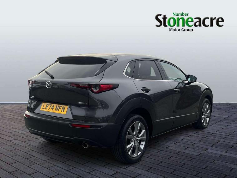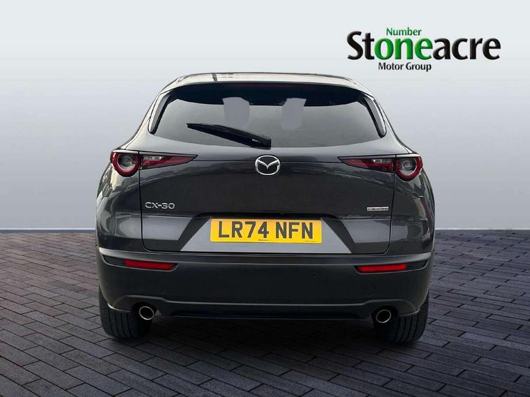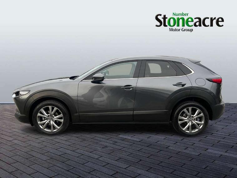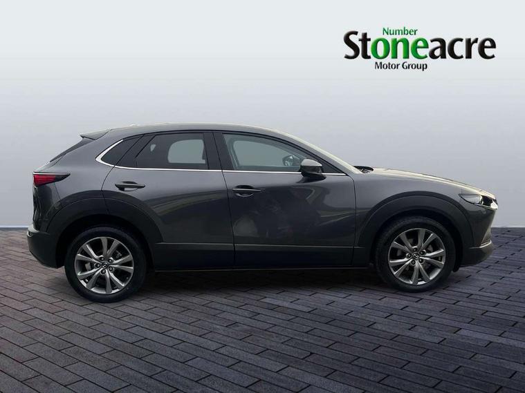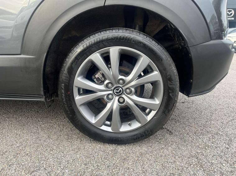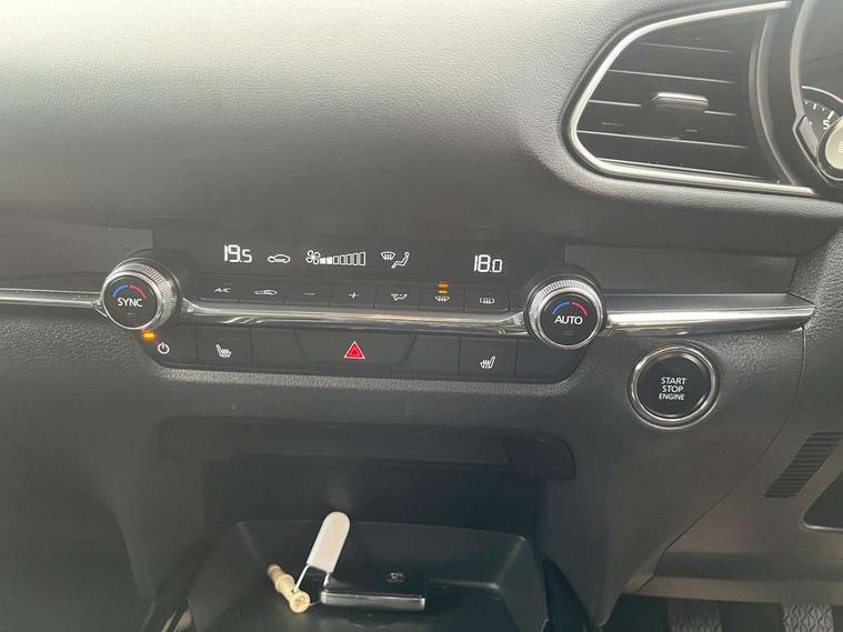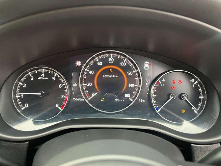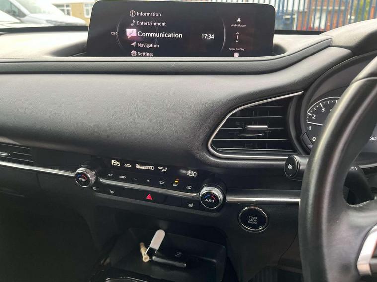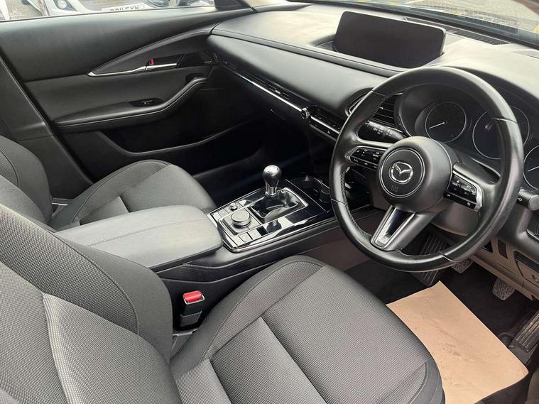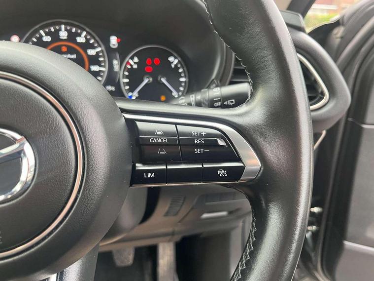 10.25" display with Mazda Connect infotainment, 7" TFT Colour driver instrument panel display, Adaptive cruise control (Mazda radar cruise control), Blind spot monitoring with rear cross traffic alert, Driver attention alert system, E-call with GPS, Emergency stop signalling system, Engine start/stop button, Front and rear parking sensors, Integrated bluetooth, Integrated Mazda navigation system, Intelligent speed assist, Lane keep assist system (LAS) with Lane departure warning system (LDWS), Mazda connected services, PAS, Power lift gate, Qi wireless charging, Reversing camera, Service indicator, Tailgate, Traffic sign recognition, Trip computer, Windscreen projected colour active driving display (HUD), Wireless Apple CarPlay/Android Auto, Cylinder Deactivation, i-stop, 2 USB charging ports in front inner central armrest, Bose surround sound system with 12 Speaker, Bose center point, Bass match and audio pilot technology, Multimedia Commander including separate volume dial, Steering wheel mounted audio/bluetooth controls, Adaptive LED Headlights, Auto dimming driver's door mirror, Auto headlight levelling, B-pillar and C-pillar garnishes in piano black finish, Body coloured, electrically adjustable, heated auto power folding door mirrors with integrated indicators, Chrome finish signature wing in front grille, Coming/leaving home lighting function, Dual chrome exhaust, Dusk sensing headlights, Electric front/rear windows with one touch auto up/down, Frameless auto dimming interior rear view mirror, Front kodo turn signal, Gloss black front grille, Gloss black rear roof spoiler, High beam assist, LED signature daytime running lights, Privacy glass (rear side windows and rear screen), Rain sensing front wipers with adjustable speed and intermittent wipe, Rear fog lights, Rear side wing doors, Rear wiper, Signature LED rear combination lights, Third brake light, 12V power outlet in centre console, 3 seat bench in 2nd row, 60/40 split fold down rear seats, Chrome interior trim accents with steering wheel centre bezel, surround of engine start / stop button and glove box handle, Cloth upholstery with interior accents, Dark cloth door panel inserts, Dashboard, door cards and front centre armrest in black cloth, Driver and front passenger visors with covered vanity mirror and driver ticket holder, Driver seat manual slide, recline, height and seat tilt adjust, Driver, front passenger and two rear door storage, Driver, Front passenger and two rear grab handles with coathooks, Dual zone climate control air conditioning with rear air vents, Folding rear centre armrest with two cup holders, Front and rear (x3) head restraints, Front and rear LED lighting, Front armrest, Front centre storage with two cupholders with lid, Front passenger seatback pockets, Front passengers seat manual slide, recline and height adjustment, Gear shift indicator, Glovebox illumination, Heated front seats with 3 stage setting, ISOFIX child seat anchorage points attached on outer rear seats, Leather wrapped gear shift knob, Leather wrapped steering wheel with telescopic and tilt adjustment, LED luggage compartment lighting, Light roof headlining and pillars, Roof mounted sunglasses holder, Single front passenger seat, 3 point ELR front seat belts x2 with pretensioners, 3 point ELR rear seat belts, Anti-lock braking system (ABS), Drivers knee airbag, DSC - Dynamic Stability Control, Electronic parking brake with auto disengage function and auto hold function, Front and rear curtain airbags, Front dual stage driver and single stage front passenger airbags, Front passenger airbag cut-off switch, Front side airbags, Front smart city brake support, G-Vectoring control plus, Hill launch assist, Manual child lock in rear doors, Mild Hybrid system with regenerative braking, Seatbelt reminder for driver/front passenger and rear seats, Traction control system (TCS), Tyre pressure monitoring system (TPMS), Remote central locking with deadlocking and automatic door lock when driving, Smart keyless entry, Thatcham accredited alarm and immobiliser, 18" Silver metallic alloy wheels, Emergency tyre repair kit,