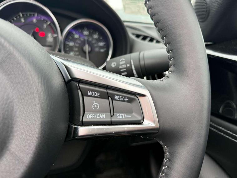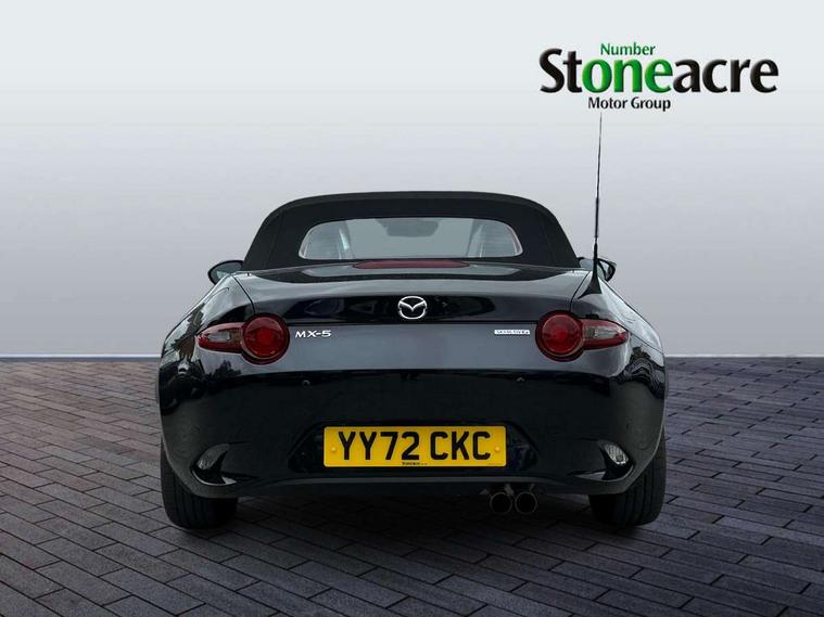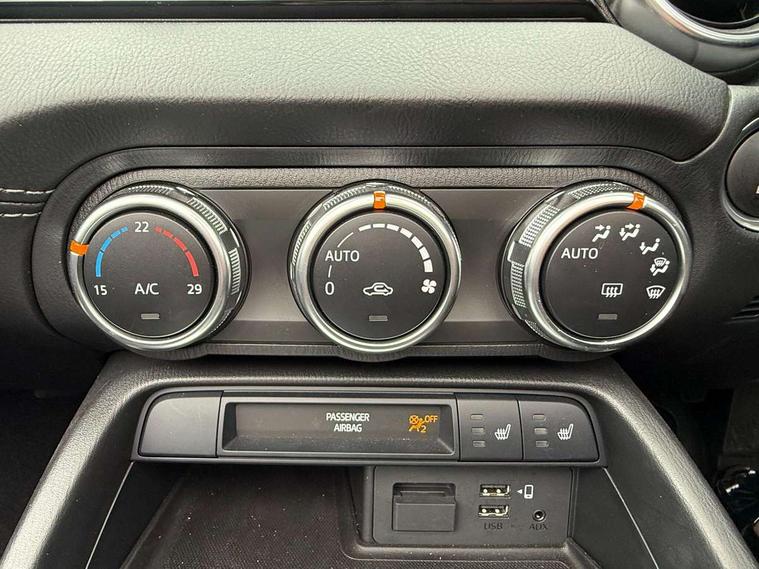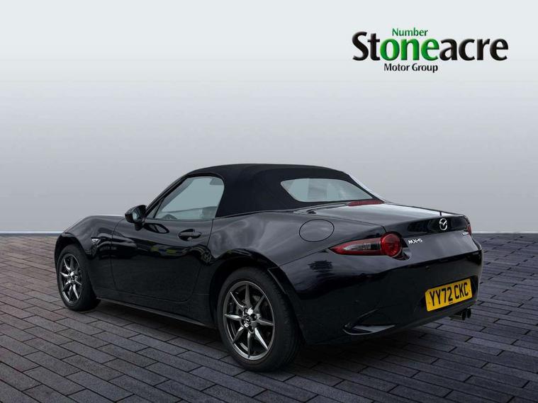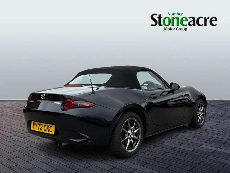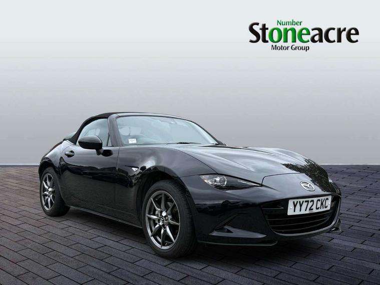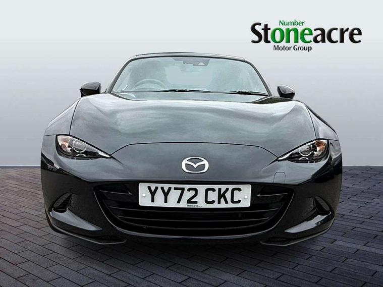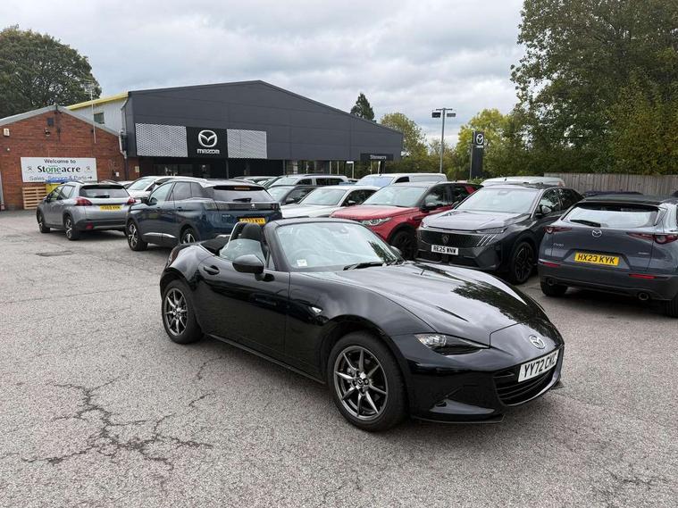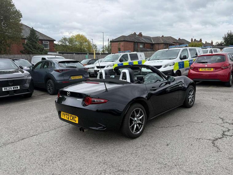 7" colour touch screen with Mazda connect infotainment, Aha and stitcher app, Analogue speedometer, Apple car play/Android Auto, Cruise control + speed limiter, Driver alert system, eCall emergency call system, Emergency stop signalling system, Engine start/stop button, Hands free phone preparation, Integrated bluetooth with hands-free calling, bluetooth audio and easy access to phone contacts, Integrated navigation system, Lane departure warning system, Multi dot display tachometer and electric odometer, PAS, Rear parking sensor, Service indicator, Traffic sign recognition, Trip computer, Water temperature gauge, I-ELOOP, i-stop, 2 USB/aux input socket, Multimedia Commander including separate volume dial, Premium Bose sound system with 9 speakers with 2 in each front headrest, AM/FM/DAB radio and MP3, Steering wheel mounted audio/bluetooth controls, Adaptive front lighting system, Auto dimming rear view mirror, Automatic headlamp levelling, Black scuff plates with stainless steel insert, Body colour bumpers, Body colour co ordinated interior upper door trim, Body coloured electric/heated door mirrors, Coming/leaving home lighting function, Dual exhaust pipes, Dusk sensitive headlamps, Electric front windows/one touch facility, High mounted rear brake light with Black coloured cover, LED 3rd brake light, LED daytime running lights, LED Headlights, LED indicator lights, LED rear lights, Manually operated black premium cloth soft top with heated rear glass window, Piano Black fashion bars, Rain sensing front wipers, Rear boot, 12V socket, Centre console storage box, Chrome Air conditioning dials, Climate control air conditioning, Coin Box, Driver and front passenger sunvisors with covered vanity mirror and driver ticket holder, Driver seat manual slide, recline and tilt adjustment, Front centre armrest, Front head restraints, Gear shift indicator, Heated front seats, in 3 heat levels, Interior courtesy light, ISOFIX front passenger seat child seat compliance, Leather gear knob, Leather handbrake lever, Leather steering wheel, Lockable rear centre box with lid, Passenger seat + manual slide/recline adjust, Perforated leather upholstery, Side door trim in black vinyl with silver stitching, Single front passenger seat, Sports seats, Tilt/telescopic steering column, Two cupholders, Windblocker, 3 point ELR front seatbelts with pretensioners, ABS+Electronic Brake force Distribution, Deployable Hood System (DHS), Driver and front passenger airbags, Driver and passenger seatbelt reminder audible warning, Front dynamic yaw stability control, Hill hold assist, Passenger airbag deactivate switch, SCBS - Smart City Brake Support, rear plus front with autonomous emergency braking, Side airbags, Traction control, Tyre pressure monitor, Remote central locking with deadlocking and remote boot release, Smart keyless entry, Superlocking, Thatcham category 1 alarm + immobiliser, Chrome air vent surrounds, Chrome meter rings, Dashboard panel - vinyl leather Black, 16" Bright Silver alloy wheels, Tyre puncture repair kit,