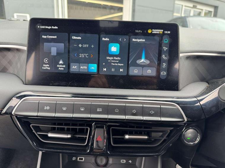 10.25" Colour touchscreen, 3 driving modes Normal/Eco/Sport, 3 Energy regeneration modes (1, 2, 3), 360 degree camera with rear sensor, 7" Driver display, Adaptive cruise control, Android Auto, Apple car play, Blind zone detection with lane change assist, Bluetooth connection, Driver attention alert system, E-call, Forward collision warning, Intelligent speed limit assist, Lane keep assist system (LAS) with Lane departure warning system (LDWS), PAS, Rear cross traffic alert, Reverse parking sensors, Satellite navigation with speed limit recognition, Traffic jam assist, Trip computer, 6 speaker audio system, DAB audio, iSmart phone connectivity, Radio, MP3 and AUX/USB, USB ports (2x front, 1x rear), Auto dimming rear view mirror, Automatic headlamps, Body colour bumpers, Body coloured door handles, Body coloured electrically adjustable heated door mirrors, Follow me home headlights, Front and rear electric windows with driver's one-touch up/down, Intelligent headlamp control, LED centre brake light, LED daytime running lights, LED projector headlights, Rain sensor wiper, Rear privacy glass, Rear side wing doors, Rear window defogger, Rear wiper, 12V socket, 3 seat bench in 2nd row, Automatic air conditioning, Boot space lamp, Driver 6-way adjustable seat, Front centre armrest with storage, Front cup holders, Front headrests, Front interior courtesy light with time delay and reading lights, Front passenger seat map pocket, Front sun visors with driver and passenger mirrors, Heated front seats, Heated steering wheel, Leather style with cloth inserts upholstery, Multifunction steering wheel, One piece folding rear seat, Passenger 4-way adjustable seat, Reach and rake 4 way adjust steering column, Single front passenger seat, 2 x adjustable rear head rests, 3x3 point rear seatbelts, ABS/EBD, Active emergency braking with pedestrian/Bicycle detection, Drivers seatbelt reminder, Dual front airbags, EBA, Electric parking brake with autohold, ESP, Front and rear passenger seat belt reminder, Front passenger airbag deactivation switch, Front seatbelts (3-point + pretensioner + load limiter), Front side airbags, Hill start assist, Rear child locks, Rear isofix x2, Side curtain airbags, Tyre pressure monitoring system, Alarm & Engine Immobiliser, Keyless entry, Remote Central Locking with Fold-away Key, 16" Atlas alloy wheel, Tyre repair kit,
