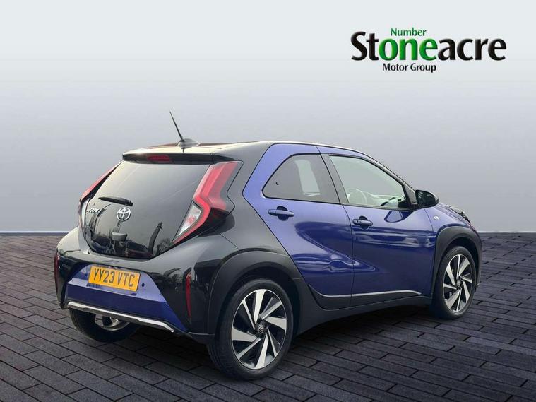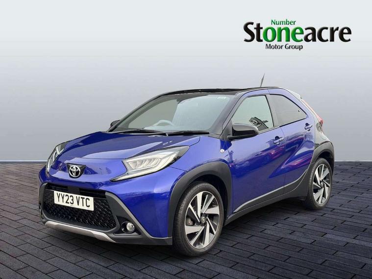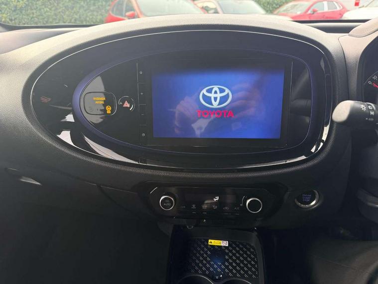 4.2" TFT colour screen, Adjustable speed limiter, Analogue speedometer, Bluetooth connectivity, Digital tachograph, Driver attention alert system, eCall emergency call system, Electric power steering, Front and rear parking sensors with auto brake, Intersection turn assist, Key reminder warning, Noise reduction kit, Pre collision system with emergency steering assist, Remote boot door release on key, Reversing camera with static guide lines, Smart entry and push button start, Speed limit display, Start and stop, Wireless charger, Wireless Smartphone Integration includes Apple CarPlay and Android auto, Vehicle Stability Control (VSC), 4 speakers, 9" HD multimedia display touch screen with Toyota smart connect, DAB digital audio broadcast, USB connector, Auto headlights, Auto wipers, Automatic headlights cut-off, Automatic high beam On/Off switch, Bicycle towing hook, Black fog light surrounds, Black side protection mouldings, Black wheel arch mouldings, Body colour door handles, Body coloured front bumper, Boot door scuff plate, Eclipse black rear bumper, Electric heated door mirrors, Follow me home headlights, Front and rear underruns in silver, Front fog lights, Front power windows, Gloss black door mirrors, Gloss black upper front grille, Headlight cut-off reminder, LED daytime running lights guide, LED front light guide, LED High mounted stop lamp, LED projector headlights, Manual day/night rear view mirror, Manual headlight levelling, Pagoda roof, Power adjustable door mirrors, Power back door, Privacy glass, Rain sensor, Rear combination lights LED bulb type, Rear side wing doors, Rear windscreen defogger, Rear windscreen wiper, Remote hazard lights system, Short antenna, Variable intermittent windscreen wipers, 12v power outlet - front, 2 seat bench in 2nd row, 3 spoke leather steering wheel, 50/50 split folding rear seat, Adhesive roof headlining, Adjustable speed limiter switch on steering wheel, Audio and telephone switches on steering wheel, Auto air conditioning, Black roof lining, Body colour satin anodised insert on steering wheel, Boot light, Centre room light, Chrome interior door handles, Chrome surround on air conditioning buttons, Clean air filter, Console box storage, Floor mats, Front and rear cup holders, Front head rest deco art, Front head restraints, Height adjustable driver seat, Intelligent adaptive cruise control switch on steering wheel, ISOFIX child restraint system on rear seats, Lane departure alert switch on steering wheel, Leather gearshift knob, Light blue ambient lighting in centre console, Manual tilt steering wheel, Manually reclining and sliding driver seat, Manually reclining and sliding front passenger seat, Multimedia switches on steering wheel, Partial synthetic leather upholstery, Pollen filter, Rear door pockets, Rear head restraints, Satin silver insert on gear shift knob, Single compartment glovebox with lights, Single front passenger seat, Soft tonneau cover, Sun visors with mirror on driver and passenger side, Voice recognition switch on steering wheel, Toyota safety sense pack - Aygo X, Anti lock braking system + Electronic brake force distribution, Child safety door lock, Emergency brake light signal (EBS), Hill start assist control (HAC), Passenger airbag on/off switch, Seat belt reminder for front and rear seats, Supplement restraints system (SRS) - 6 airbags, Traction control, Tyre pressure warning system, Immobiliser, Remote power door locks, Black wheel centre caps, Tyre repair kit,