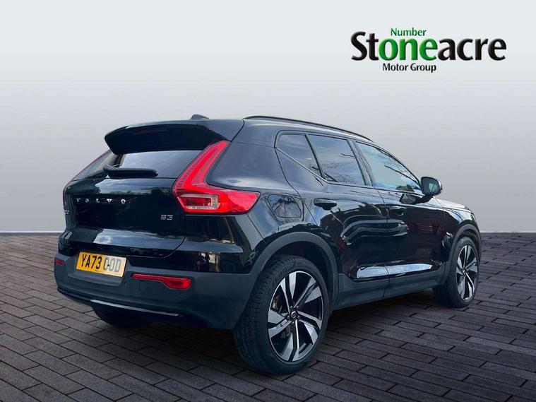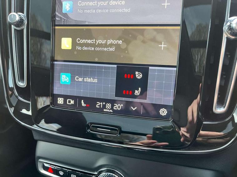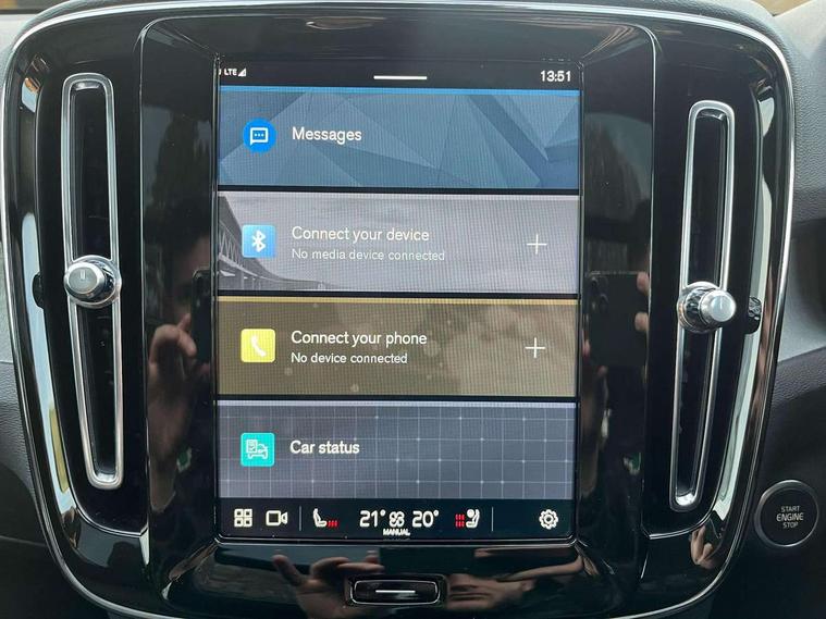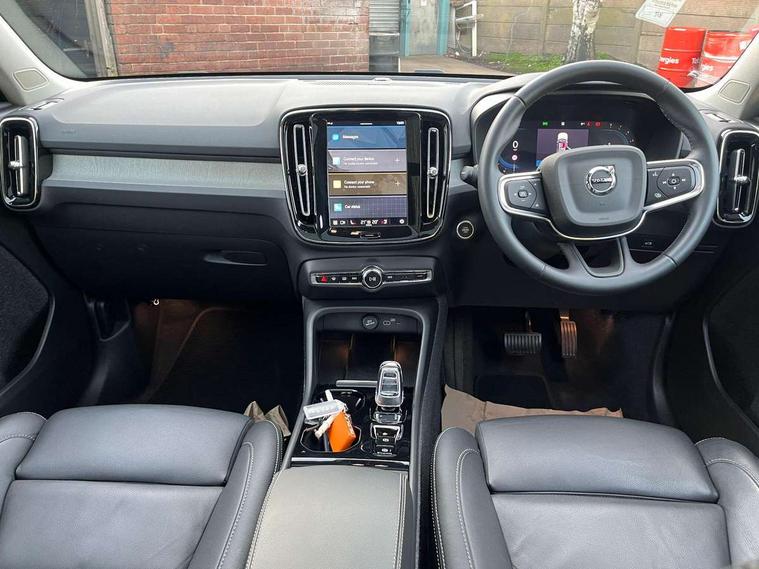 12.3" Progressive Driver Display, 360 degree surround view parking camera with side proximity sensors, 9" centre console portrait touch screen, Adjustable steering wheel force, Bluetooth hands free telephone kit, E-call, Front park assist, Google automatic services - Nav with google maps, apple carplay/android auto, voice recognition with google assistant, Hands free power tailgate, Intelligent speed assistance, Lane keep assist with driver alert control, Oncoming Lane Mitigation, Rear park assist, Speed sensitive steering, Wireless/Inductive Mobile Phone Charging, Dynamic chassis, DAB Digital radio, Premium Sound by Harman Kardon, Dolby Pro Logic II Surround Sound, Dirac Unison, 12 speakers/600W and subwoofer, Steering wheel mounted remote controls, Active bending pixel LED headlights with adaptive shadow technology, Active high beam incorporating daytime running lights, Adaptive brake lights with high level LED brake lights, Auto dimming interior mirror, Automatic headlamp levelling, Dark tinted windows for rear door side windows and cargo compartment, Front aluminium tread plates, Front and rear electric windows, Headlight cleaning system, High gloss black front and rear skid plate, High gloss black mesh front grille with high gloss black surround, High gloss black window trim, Home safe and approach lighting, Integrated roof rails in high gloss black, LED front fog lights, Power glass tilt and slide panoramic sunroof with sun curtain, Puddle lights, Rain sensor with automatic windscreen wiper activation, Rear side wing doors, Rear wiper, Roof antenna, Roof spoiler, Visible VIN plate, 12V socket in front tunnel console and luggage compartment, 2-Zone electronic climate control with CleanZone air quality system and pollen filter, 3 seat bench in 2nd row, 3 Spoke tailored steering wheel with chrome trim, 60/40 versatile split folding rear seat, A-pillar parking ticket holder, Centre console cupholders and storage, Flexible load floor and grocery bag holder, Floor mats, Front door pocket, front cupholder, ambient front door, rear reading, rear courtesy, instrument panel and tailgate lighting, Front footwell illumination, Front headrests, Front reading light and theatre lighting, Front seat cushion extensions, Front tunnel pocket, Glovebox bag hook, Heated front seats, Height adjustable passenger seat, Height/reach adjustable steering column, High gloss centre tunnel deco, Illuminated glovebox, Illuminated luggage compartment, Illuminated vanity mirrors, Integrated waste bin, Isofix attachments on outer rear seats, Load protection net, Multi directional lumbar support, Power driver seat with memory + exterior mirrors memory, Power folding rear headrests, Power passenger seat, Rear armrest / integral cup holders / storage tray, Single front passenger seat, Underfloor cargo storage, Climate pack without heated front seats - XC40, Driver assist pack - XC40, 3x3 point rear seatbelts, City safety with steering support with Pedestrian + cyclist + front collision warning with full auto brake and rear auto brake, Drivers knee airbag, Dual stage driver/passenger airbags, Electronic parking brake with auto hold, First aid kit, Front and outer rear seatbelt reminder and pretensioners, Front seats SIPS airbags, Hill descent control, Hill start assist, Inflatable curtain, Passenger airbag cut-off device, Power child locks on rear doors, Road sign information display, Run off Road Mitigation, Run off Road Protection, SIPS (Side Impact Protection System), Slippery road and hazard light alert, Stability and Traction Control with Spin control, Engine Drag Control and Corner Traction Control, Tyre pressure monitoring system, Vehicle deceleration control with Anti-lock Brake System, Electronic Brake Distribution and Emergency Brake Assist, Warning triangle, WHIPS whiplash protection system - front, Anti-theft alarm including immobiliser/volume sensor + level sensor, Key integrated remote control central locking + fuel flap with deadlocking system and auto open/close power windows, Keyless drive includes keyless entry and keyless start, Locking wheel nuts,