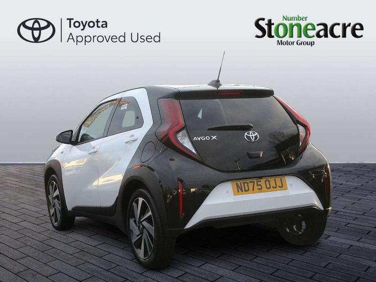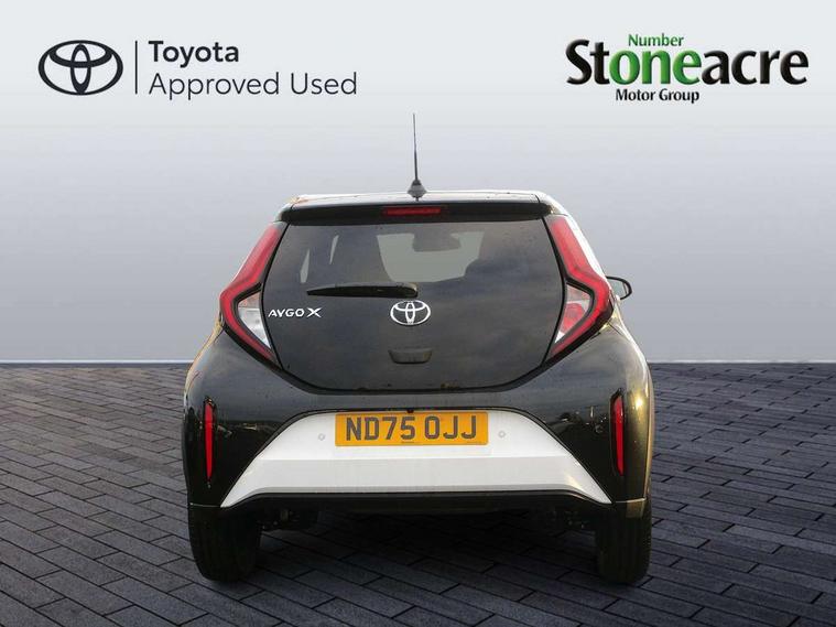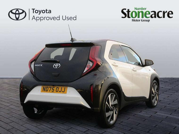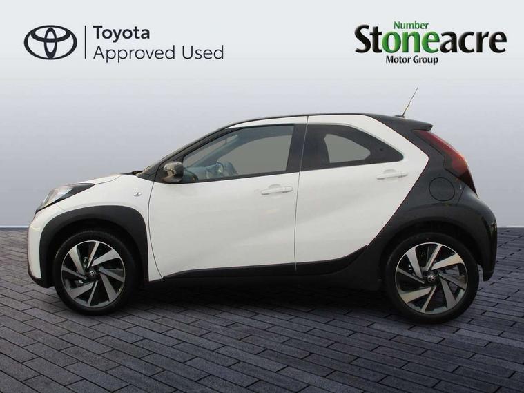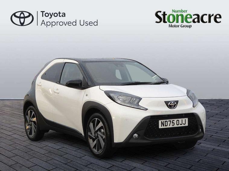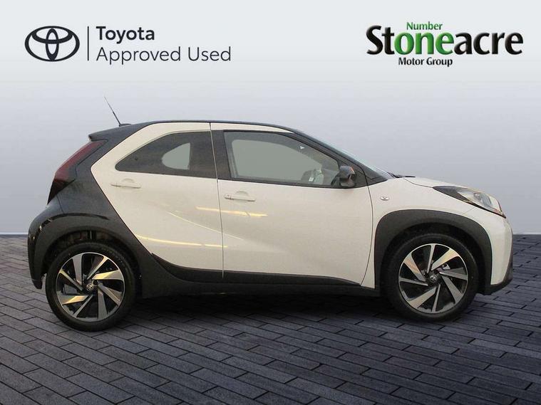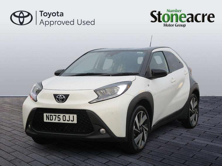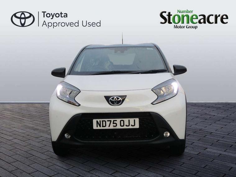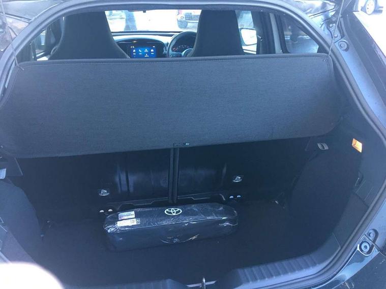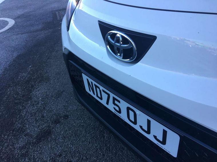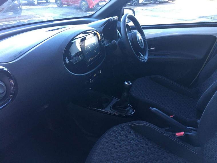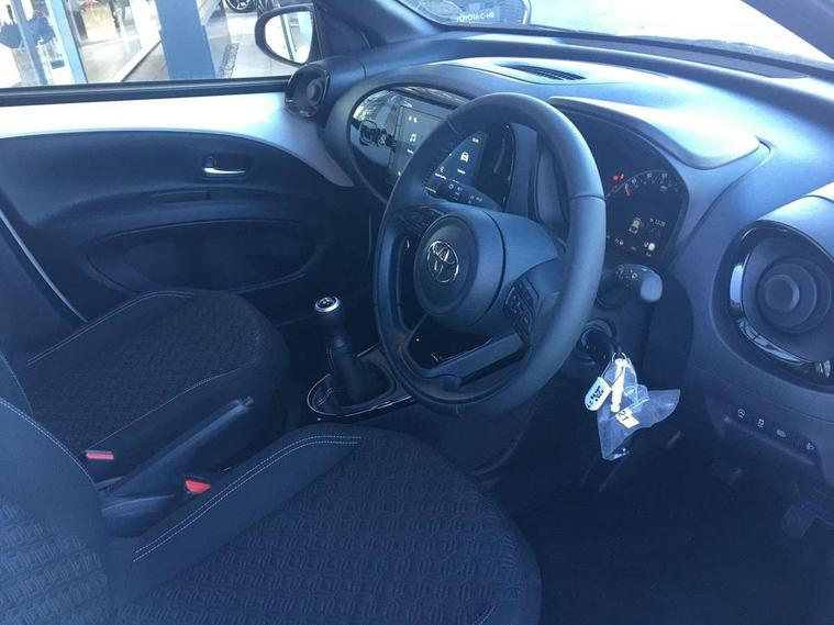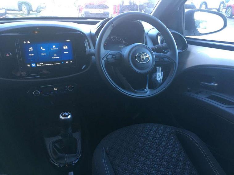 4.2" TFT colour screen, Adjustable speed limiter, Analogue speedometer, Bluetooth connectivity, Digital tachograph, Driver attention alert system, eCall emergency call system, Electric power steering, Intersection turn assist, Key reminder warning, Noise reduction kit, Pre collision system with emergency steering assist, Reversing camera with static guide lines, Smart phone integration with Apple car play/Android Auto, Speed limit display, Start and stop, Vehicle Stability Control (VSC), 4 speakers, 9" HD multimedia display touch screen with Toyota smart connect, DAB digital audio broadcast, USB connector, Auto headlights, Auto wipers, Automatic headlights cut-off, Bicycle towing hook, Black contrast roof, Black side protection mouldings, Black wheel arch mouldings, Body colour door handles, Body coloured front bumper, Boot door scuff plate, Eclipse black rear bumper, Electric heated door mirrors, Follow me home headlights, Front fog lights, Front power windows, Gloss black door mirrors, Gloss black upper front grille, Headlight cut-off reminder, LED daytime running lights, LED front light guide, LED High mounted stop lamp, Manual day/night rear view mirror, Manual headlight levelling, Pagoda roof, Power adjustable door mirrors, Power back door, Privacy glass, Projector halogen headlights, Rain sensor, Rear combination lights LED bulb type, Rear side wing doors, Rear windscreen defogger, Rear windscreen wiper, Short antenna, Variable intermittent windscreen wipers, 12v power outlet - front, 2 seat bench in 2nd row, 3 spoke leather steering wheel, 50/50 split folding rear seat, Adhesive roof headlining, Adjustable speed limiter switch on steering wheel, Audio and telephone switches on steering wheel, Auto air conditioning, Black insert on steering wheel, Black roof lining, Boot light, Centre room light, Chrome interior door handles, Chrome surround on air conditioning buttons, Clean air filter, Console box storage in body color, Fabric upholstery, Floor mats, Front and rear cup holders, Front head rest deco art, Front head restraints, Height adjustable driver seat, Intelligent adaptive cruise control switch on steering wheel, ISOFIX child restraint system on rear seats, Lane departure alert switch on steering wheel, Leather gearshift knob, Manual tilt steering wheel, Manually reclining and sliding driver seat, Manually reclining and sliding front passenger seat, Multimedia switches on steering wheel, Pollen filter, Rear door pockets, Rear head restraints, Satin silver insert on gear shift knob, Single compartment glovebox with lights, Single front passenger seat, Soft tonneau cover, Sun visors with mirror on driver and passenger side, Voice recognition switch on steering wheel, Toyota safety sense pack - Aygo X, Anti lock braking system + Electronic brake force distribution, Child safety door lock, Emergency brake light signal (EBS), Hill start assist control (HAC), Passenger airbag on/off switch, Seat belt reminder for front and rear seats, Supplement restraints system (SRS) - 6 airbags, Traction control, Tyre pressure warning system, Immobiliser, Remote power door locks, Black wheel centre caps, Tyre repair kit,