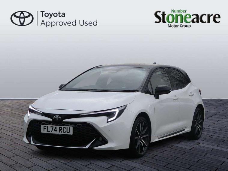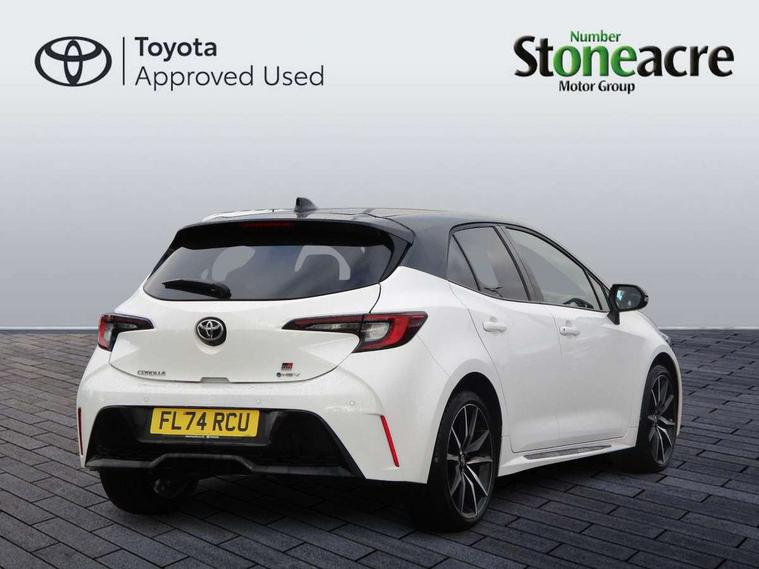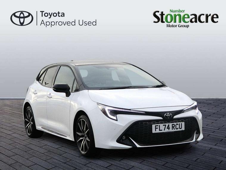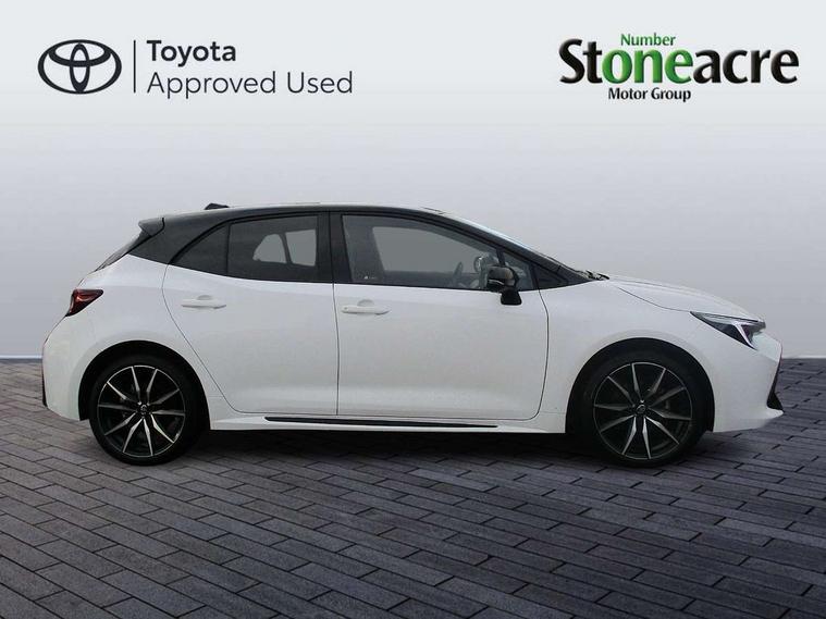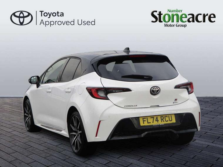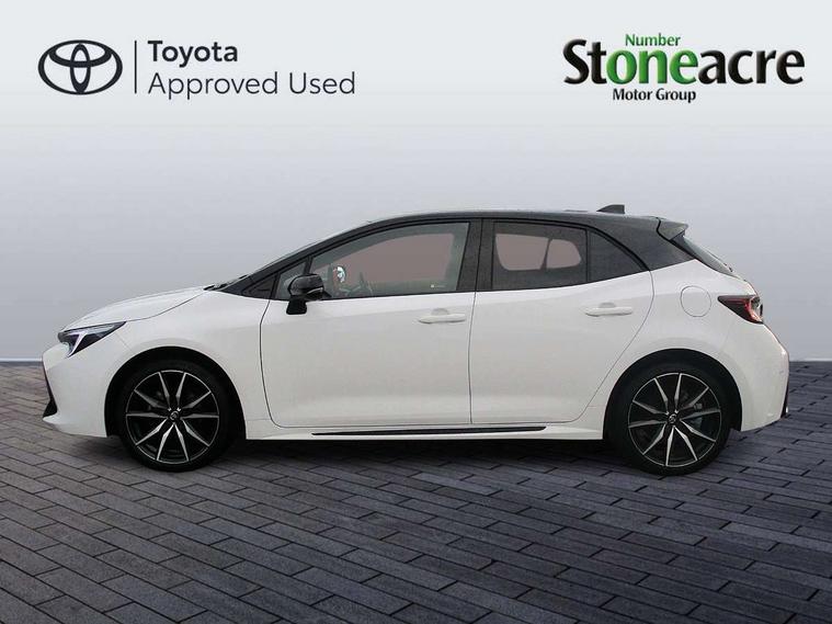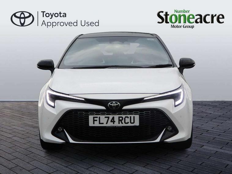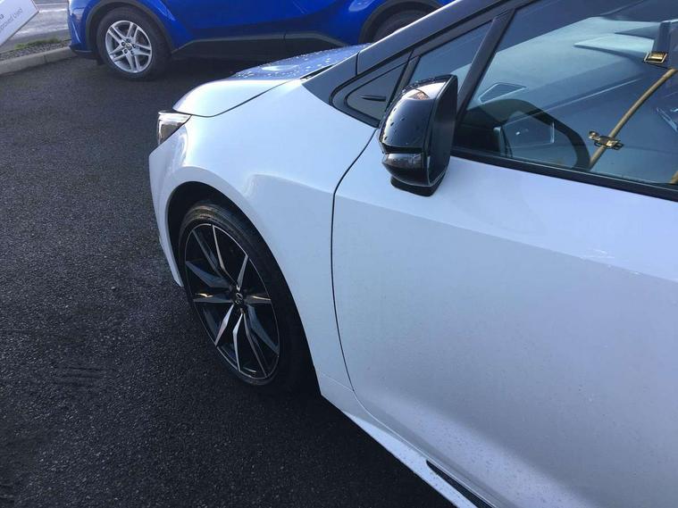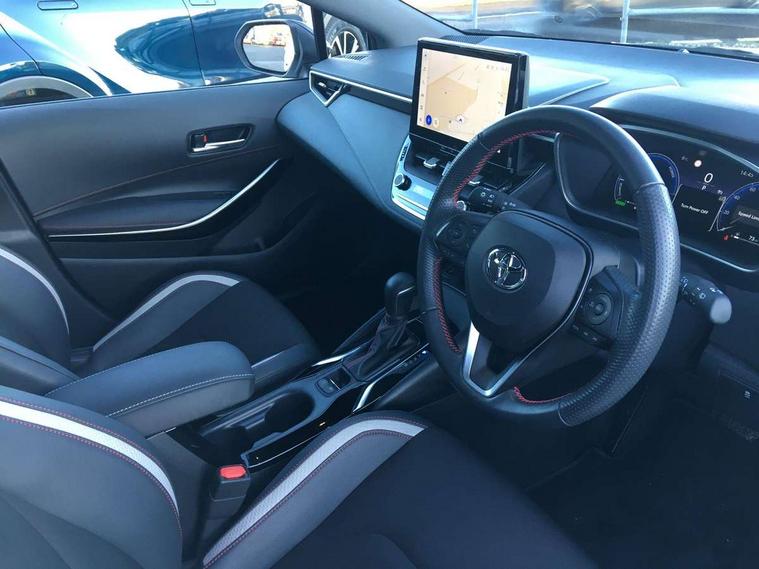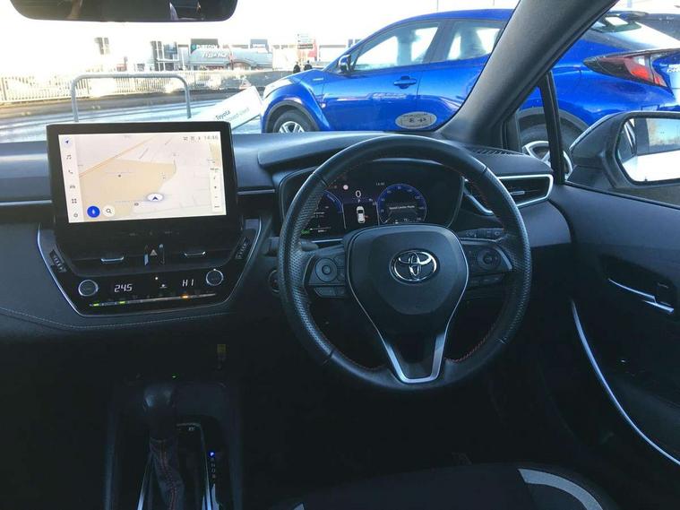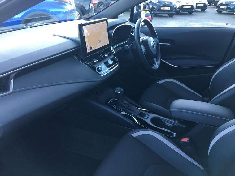 10.5" Multimedia display screen, Bluetooth telephone connectivity, Connected car functionality upgrade, tracker, remote status and e-care, Drive mode select (Eco, Normal), E-call, Electrically assisted power steering, EV drive indicator, Front and rear parking sensors with auto brake, Full Digital 12.3" TFT Digital Combimeter, Key reminder warning, Lane Departure Alert (LDA) switch on steering wheel, Memory on adjustable speed limiter, MyT connected services, Proactive driving assist (PDA), Reversing camera, Smart entry and push button start with GR Logo, Smartphone integration with Apple CarPlay and wired android auto, Tailgate, Toyota remote services, Toyota smart connect navigation, Wireless charger, Gasoline particulate filter, Vehicle Stability Control (VSC), 6 speakers, AM/FM radio, DAB Digital radio, Front USB-C in centre console, Front USB-C in dashboard, Smart voice assist/ Voice recognition, USB and Aux in connectors + 12V front outlet, Anti-jam protection on power windows, Auto up and down function on all power windows, Automatic folding mirrors, Automatic headlights with high beam assist, Black centre and side air vents, Black toyota logo in front, Body coloured bumpers, Body coloured door mirrors, Body coloured outside door handles, Dark chrome lower grille, Electrochromatic mirror, Follow me home headlights, GR Sport dark chrome front mesh grille and black rear grille, GR Sport exclusive under guard, GR sport scuff plates, LED daytime running lights, LED dual beam projector headlights, LED front fog lights, LED High mounted stop light, LED rear combi lights with LED lightguide, Manual headlight levelling system, New grille pattern, Noise reduction layer on windscreen, Piano black diffuser, Power adjustable heated door mirrors, Power front windows, Power rear windows, Privacy glass with UV filter, Rain sensing wipers, Rear side wing doors, Rear window defogger, Rear window wiper, Reverse tilting door mirrors, Rocker and door lower moulding, Roof spoiler, Satin chrome insert on front air vents, Satin chrome insert on front door assist grips, Satin silver front spoiler, Shark fin antenna, Tailgate release with push button, Time adjustment on intermittent wiper, Turning signal integrated indicators in door mirrors, Unique lower skirt, Unique side rocker with black insert, UV-filter on driver and passenger windows, 2 Shopping bag hooks in luggage compartment, 3 rear headrests, 3 seat bench in 2nd row, 3 spoke leather steering wheel with satin insert/red stitching + gear knob, 4 tie down hooks in luggage compartment, 60/40 split folding rear seat, Adaptive cruise control (ACC) switch on steering wheel, Adjustable speed limiter switch on steering wheel, Audio, multimedia and telephone switches on steering wheel, Black armrest on centre console box, Black gear shift console, Boot light, Centre room light, Driver and front passenger personal light, Driver and passenger assist grip, Driver and passenger seatback pockets, Driver and passenger sun visor with mirror and light, Dual zone automatic air conditioning with ECO mode switch, Fabric/synthetic leather upholstery, Front and rear cup and bottle holders, Front door pockets, Front head restraints, Front passenger seat, Front sliding synthetic leather armrest, GR Sports seats with partial leather bolsters, Heated seats, Illuminated entry system in room lamp, ISOFIX seat fixing (2 fixings on rear outer seats), Manual height adjustable for driver and front passenger seat, Manually tilt with sliding driver and front passenger seat, Nanoe-X air purifier, Parcel shelf, Pollen filter, Power window switches with satin chrome inserts, Rear armrest with 2 cupholders, Rear passenger coat hooks (2), Red stitching on gear shift, Remote air conditioning, Satin chrome inside door handles, Satin chrome surround on speedometer, Sliding armrest on centre console box, Slow opening glovebox with lights, Textile floor mats, Tilt/telescopic steering column, Voice recognition switch on steering wheel, Whiplash Injury Lessening (WIL) feature (active headrest) for seats, White ambient lighting on open tray and front cup holder, Toyota safety sense 3 pack - Corolla, 3x3 point rear seatbelts, Adjustable driver and front passenger seat belt extender to top anchor point, Anti lock braking system + Electronic brake force distribution, Brake assist function, Child locks on rear doors, Downhill Assist Control (DAC), Electronic parking brake, Emergency brake light signal (EBS), Front passenger airbag on/off switch, Front seatbelt reminder, HAC - Hill start assist control, Rear seat belt reminder, Seatbelt pretensioners and force limiters, Supplemental restraint system (SRS) 7 airbags - dual driver, dual side curtain, side impact and driver knee airbags, Traction control, Tyre pressure warning system, Acoustic vehicle alert system (AVAS), Alarm with motion sensor and immobilizer, Power passenger window lock, Remote central locking + deadlocks, GR Sport interior styling with accents and exterior styling, Satin chrome dash trim, Soft touch texture on upper dashboard, Stitching on lower dashboard, 18" Black machined face 10 spoke alloy wheels, Tyre repair kit, Unique wheel finish with red wheel cap,