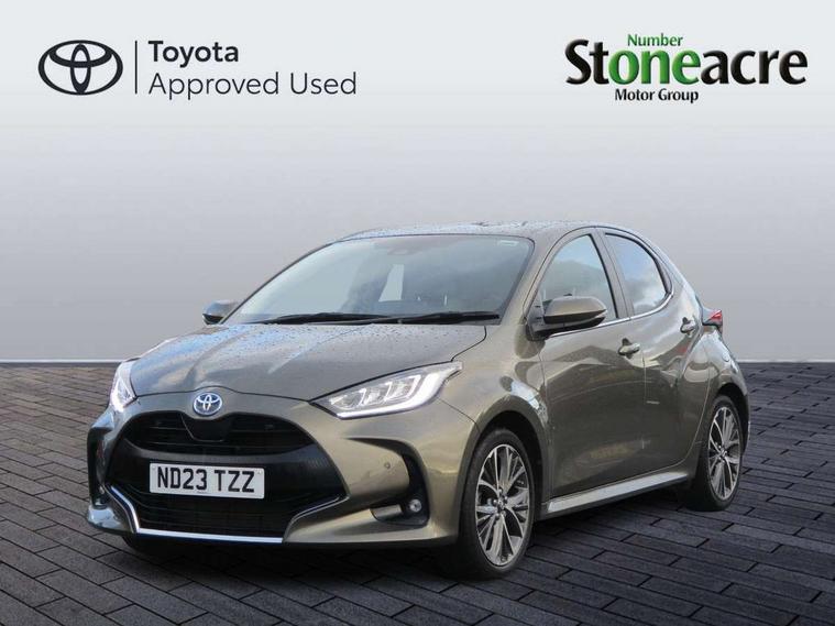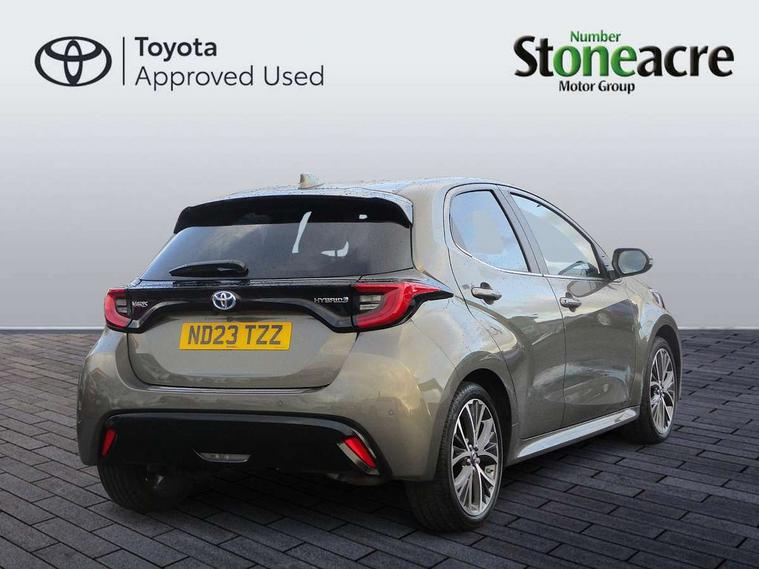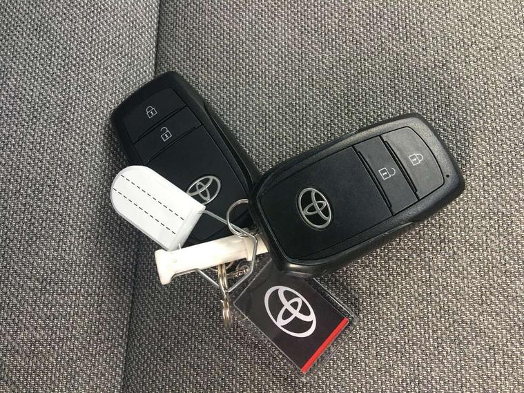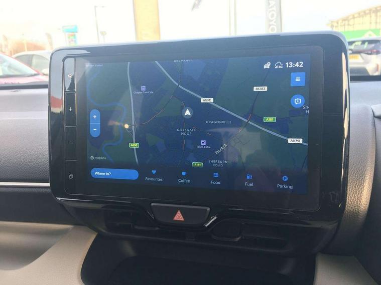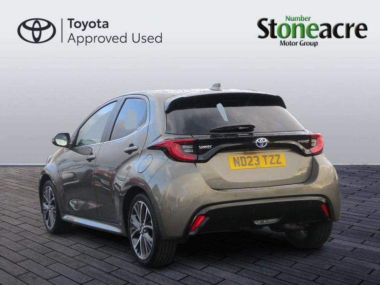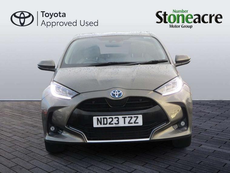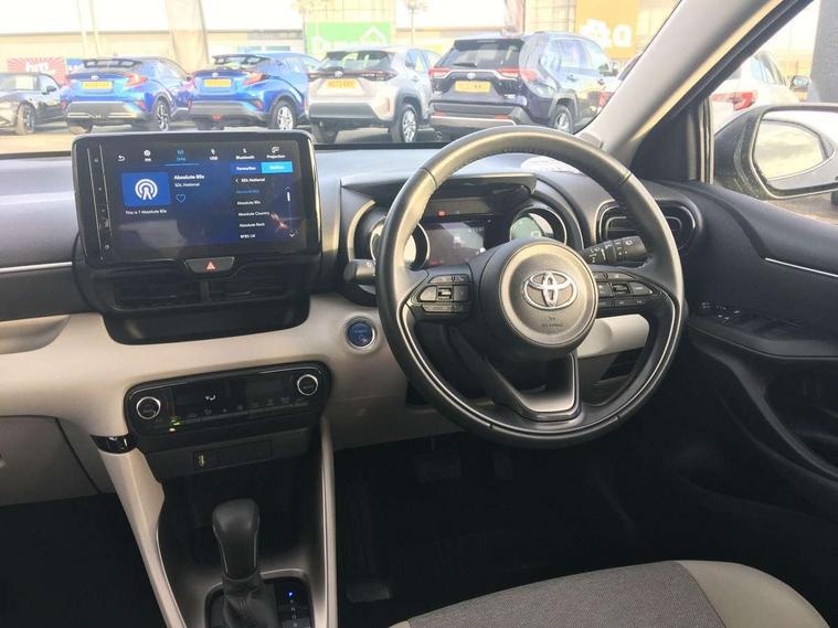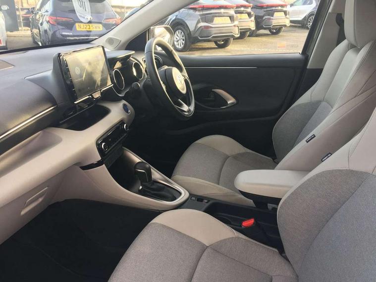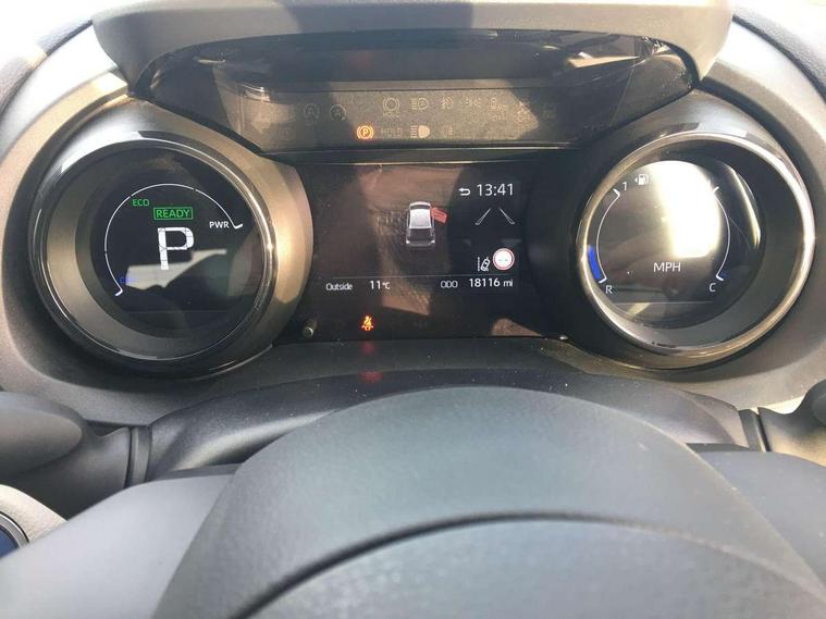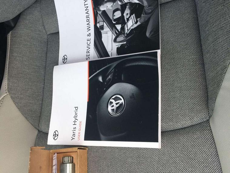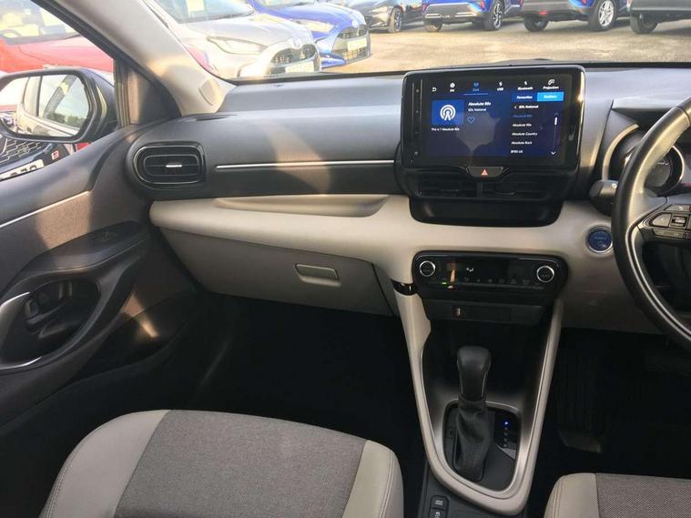 Adaptive cruise control, Adjustable speed limit with speed warning, Blind spot monitoring, Bluetooth connectivity, Colour binocular inspired displays with digital speedometer, E-call, Electric power steering, Hybrid energy display, Multi information display switches on steering wheel, Reversing camera, Smartphone integration with Apple CarPlay and Android auto, Tailgate, Touch 2 navigation system, Voice recognition, Vehicle Stability Control (VSC), 6 speakers, 9" HD multimedia display touch screen with Toyota smart connect, USB connection, Acoustic windscreen glass, Auto windscreen wipers, Automatic headlights, Automatically retractable door mirrors, Body coloured door mirrors, Electric adjustable heated door mirrors, Follow me home headlights, Front auto power windows with anti jam protection, Full LED rear lights, LED daytime running lights, LED front fog lights, LED front light guide, LED Headlights, LED High mounted stop lamp, LED Indicators, LED rear light guide, Manual headlight levelling, Painted chequered front grille, Rain sensor, Rear auto power windows with anti jam protection, Rear privacy glass, Rear side wing doors, Rear spoiler, Rear wiper, Satin lower front grille, Shark fin antenna, Turning signal integrated indicators in door mirrors, Variable front intermittent wipers, 3 adjustable rear headrests, 3 seat bench in 2nd row, 3 spoke leather steering wheel, 60/40 split folding rear seat, Active headrests, Adjustable boot height, Coat hooks in rear grab handles, Cup holders (2 front & door), Data Communication Module (DCM) connected services, Dual zone automatic air conditioning, Fabric seat with partial synthetic leather upholstery, Front armrest, Front sport seats, Glovebox, Grey roof lining, Height adjustable driver's seat, Height adjustable passenger seat, Isofix seat fixing, Leather gearshift, Map pockets on the backs of the front seats, Pollen filter, Shopping bag hooks, Single front passenger seat, Tilt/telescopic steering column, Parking pack - Yaris, 3 point seatbelts on all rear seats, ABS+EBD+Brake assist, Electronic parking brake, Emergency brake light system (EBS), Front passenger airbag on/off switch, Front seatbelt reminder, Hill start assist control (HAC), Rear child proof door locks, Rear seat belt reminder, Supplemental Restraint System (SRS) 8 airbags: Driver & passenger's airbags, dual side curtain airbags, side impact airbags, front centre airbag, Toyota Safety Sense 2, Precollison + Night time Pedestrian & Cyclist Detection, Lane Trace Assist, Auto High Beam, Intelligent ACC & Road Sign Assist, Tyre pressure warning system, 2x Master key, Alarm/immobiliser, Keyless smart entry with push button start, Remote AC via MyT, Remote locking via MyT, Remote powered central double locking doors, Satin chrome interior styling, Soft touch instrument panel, Space saver spare wheel,