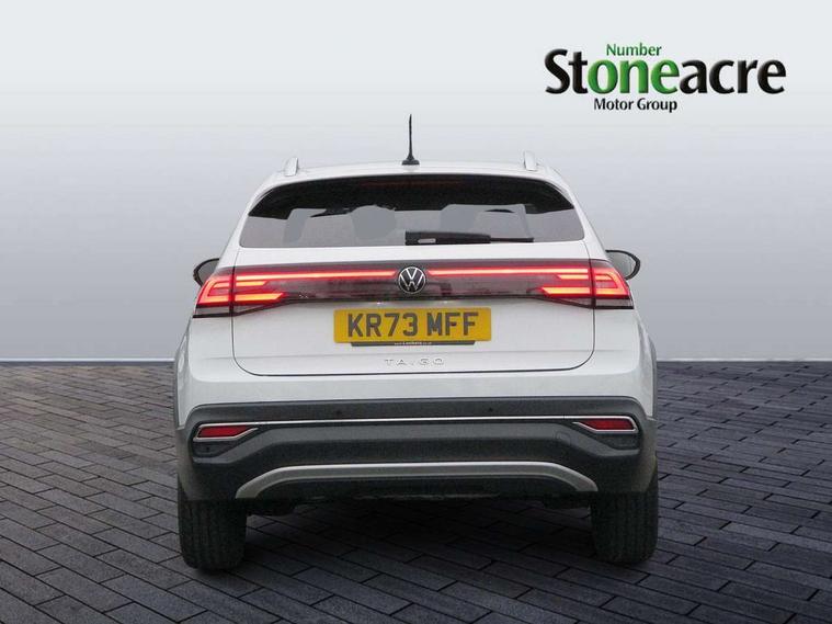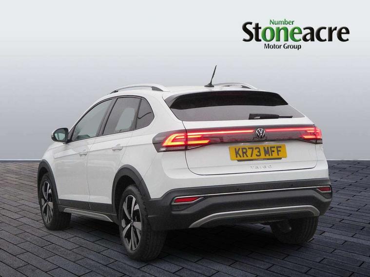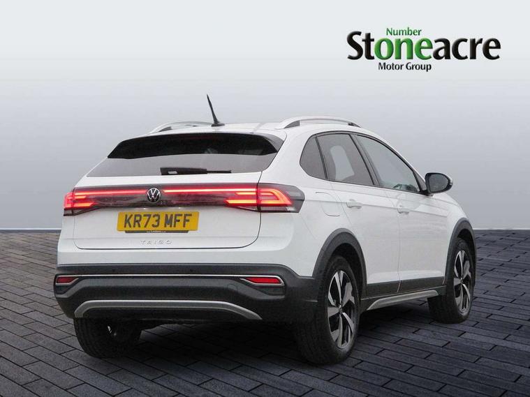 Advanced driver attention and drowsiness monitor, App-Connect including App-Connect Wireless, Digital cockpit pro - 10.25" high resolution TFT dash display screen with customizable menus and information, e-Call (emergency call), Power Steering, Travel assist including emergency assist, Washer fluid level indicator, Wireless Charging including Bluetooth, Rear shock absorption, Start-stop system with battery regeneration (recuperation - energy recovery during braking), Digital radio reception (DAB+), Diversity antenna for FM reception, WeConnect plus, Ambient lighting with logo projection, Aspherical driver's exterior mirror, Auto headlights, Body coloured bumpers and radiator grille with chrome trim and front fog lamps with chrome bezel, Body coloured exterior mirror housings and door handles, Dual chrome twin tailpipes on left and right, Electric windows, External USB type C socket and charging sockets, LED rear combination lamp, LED third brake light, Left convex exterior mirror, Power folding adjustable/heated exterior mirrors and front passenger exterior mirror lowering function, Rear fog light on one side, reversing light on both sides, Rear side wing doors, Rear wash/wipe with intermittent wipe setting, 12V socket in centre console, 2 front reading lights, 3 rear head restraints, 3 seat bench in 2nd row, Air care climatronic air conditoning system with active combination filter and 2-zone temperature control, Black carpets, Child seat anchor for child seat system i-Size, 2x top tether and child seat anchor in front on front passenger side, Chrome bezel for instrument cluster, vents, door handles + gear shift, Driver and front passenger seat height adjustment, Front + rear carpet mats, Front centre armrest, Front footwell illumination, Front sports comfort seats, Height and reach adjustable steering wheel, Interior ambient lighting and surround lighting, Leather trimmed gear knob, Leather wrapped multifunction steering wheel, Luggage compartment floor, Luggage compartment light, Lumbar support for driver's and front passengers seat, Single front passenger seat, Split folding backrest with centre armrest and unsplit rear seat bench, Storage compartment under front seats, Sun visors with illuminated vanity mirrors, Chrome Package - Taigo, Drivers assistance pack - Taigo, IQ.LIGHT - LED matrix headlights pack - Taigo, Light and sight pack - Taigo, 2 x 3-point seatbelts/outer rear seats with ECE label, 3-point seat belts in front with pretensioner and height adjustment, 3-point seatbelt for centre rear seat, Driver and front passenger airbags with front passenger airbag de-activation, front side and curtain airbags, Driver and front passenger safety-optimised head restraints, Electronic stability control, Extended and predictive pedestrian/ cyclist protection, Front and rear disc brakes, Front curtain and side airbags with center airbag, Hill start assist, Manual rear child locks, Single tone horn, Tyre pressure loss indicator, Anti-theft alarm system with interior monitoring, backup horn, and towing protection, Anti-theft wheel bolts, Low rolling resistance tyres,