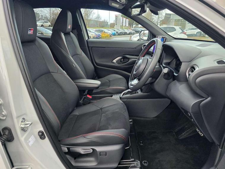10.5" Multimedia display screen, 10.5" Toyota smart connect+ with navi multimedia system with wireless Smartphone integration incl Apple CarPlay, 12.3" Multi information display screen, Adaptive cruise control, multi info switches on steering wheel, Adjustable speed limiter, Bluetooth connectivity, Color multi-information display, Digital speedometer, Digital tachometer, Drive mode selector, Driver attention alert system, eCall emergency system, Electric power steering, Emergency driving stop system, Full range intelligent adaptive cruise control, Hybrid system indicator, Intersection turn assist, Key reminder warning, Lane trace assist, My T Connected services, Pre-collision system enhanced with emergency steering assist, Reversing camera, Road sign assist - RSA, Static guide lines on reversing camera, Tailgate, Telephone switch on steering wheel, Wireless Mobile Phone Charger, Steering assisted vehicle stability control, 6 speakers, DAB Digital radio, Front USB Type-C connector, Front USB-C device charger, Acoustic windscreen glass, Anti-jam protection on power windows, Auto dimming rear view mirror, Auto high beam [AHB] with on/off switch, Auto intermittent windscreen wipers, Automatic headlights, Automatic headlights cut-off, Black door moulding, Black lower front grille, Black protection moulding on side doors, Black rear bumper with diffuser, Black rear under run, Black roof rails, Black wheel arch mouldings, Body colour door handles, Body colour front bumper, Electric adjustable heated door mirrors, Follow me home headlights, Front and rear electric windows with auto up/down function, Gloss black upper front grille, GR Sport meshed lower front grille, GR Sport meshed upper front grille, GR sport scuff plates, Headlight cut off reminder, Indicators integrated on door mirrors, Intermittent rear wiper, LED 3rd brake light, LED daytime running lights guide, LED front fog lights, LED front light guide, LED Indicators, LED projector headlights, LED rear lights with sequential indicators, Manual headlight levelling, Noise reduction layer on windscreen, Pre wiring for towing hook, Privacy glass, Rain sensor, Rear roof spoiler, Rear side wing doors, Rear window defogger, Shark fin antenna, 12v power outlet - front, 12V power point in boot, 2x Rear coat hooks, 3 seat bench in 2nd row, 3 Spoke GR Sport leather steering wheel, 40/60 split deckboard, 40:20:40 split folding rear bench seat, Adjustable rear headrests, Adjustable speed limiter switch on steering wheel, Black roof lining, Boot light, Driver and front passenger personal lights, Driver and front passenger Whiplash injury Lesseing seats, Driver and passenger seatback pockets, Dual zone automatic air conditioning, Fabric door trim, Front console box, Front cup holders, Front door pockets, Front head restraints, Front sport seats, Front/rear assist grips, Gear shift indicator, GR sport floor mats, Heated driver and passenger seats, Height adjustable driver's seat, Height adjustable front passenger seat, Hooks for luggage holding belts, ISOFIX child restraint system, Lane departure alert switch on steering control, Leather gearshift, LED centre room light, Light on driver and passenger sun visor, Manual telescopic and tilting steering wheel, Mirror on driver and passenger sun visor, Nanoe-X air purifier, Pollen air filter, Power adjustable lumbar support on driver seat, Rear cup holders, Rear door pockets, Rear head restraints, Remote air-conditioning system, Single compartment glovebox, Single front passenger seat, Soft tonneau cover, Storage box under boot floor, Ultra suede cloth upholstery, Voice recognition switch on steering wheel, White ambient lighting in centre console, White ambient lighting in footwell, White ambient lighting on front doors, 3x3 point rear seat belts, ABS+EBD+Brake assist, Driver and passenger central airbags, Driver and passenger front airbags, Driver and passenger side airbags, Electronic parking brake, Emergency brake light system (EBS), Front seat belt reminder, Hill start assist control (HAC), Passenger airbag on/off switch, Pre-collision system with pedestrian and cyclist detection, Rear door child safety locks, Rear passenger side airbags, Rear seat belt reminder, Traction control, Tyre pressure warning system, Immobiliser, Intrusion alarm, Keyless smart entry with push button start, Power door locks, Power passenger window lock, Remote door lock, Tyre repair kit,