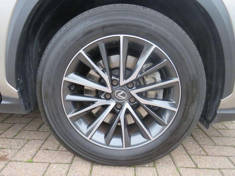 4 driving modes EV/Eco/Normal/Sport, 7" display in instrument binnacle, Blind spot monitoring with rear cross traffic alert, Bluetooth telephone connectivity, eCall emergency system, Electric speed sensitive power steering, Intelligent parking sensors - 4 front and 4 rear, Lane change flasher function, Lexus link connect - Cloud based navigation, cloud based voice assistant, always online and 9.8" VGA touchscreen, Push button starter, Reversing camera with back guidelines, Service interval indicator, Tailgate, Wireless Apple CarPlay and wired Android Auto, Wireless Smartphone charger, 6.6 kW onboard charger, All Wheel Drive (AWD), Hybrid automatic transmission, Vehicle Dynamics Integrated Management (VDIM), Vehicle Stability Control (VSC), 10 speakers, 4 USB ports - 2 front, one USB C, 2 rear USB C, DAB Digital radio, Auto dimming interior rear view mirror, Automatic headlights, Bi LED headlights, Double hidden exhaust pipes, Front and rear one touch power windows, with anti-jam protection, Heated, auto-folding, auto-dimming outside mirrors with reverse tilt function and turn indicators, Illuminated door handles with puddle light, LED brake lights and rear lights with emergency brake signal, LED cornering lights, LED daytime running lights, LED front fog lights, LED Indicators, Power back door with kick sensor, Privacy glass, rear doors and tailgate, Rain sensor windscreen wipers, Rear side wing doors, Rear wiper, Roof rails, 12V accessory port centre console and luggage compartment, 2 cupholders in front centre console, 2 way electrical lumbar adjustment for driver, 2 x fixed shopping bag hooks in boot, 2 x sun visors with vanity mirror and lamp, 3 seat bench in 2nd row, 4 x tie down hooks in the boot, 60/40 split folding rear seat, 8 way driver/passenger electrically adjustable front seats, Adjustable rear seat backrest, Card holder installed in driver and passengers sun visors, Centre armrest with storage box, Dual climate control air conditioning system, Front and rear head restraints, Front and rear textile carpet mats, Front passenger seat, Heated front seats, Heated steering wheel, Leather gear lever, LED interior illumination, Power adjustable leather steering wheel with paddle shifts, Premium Tahara leather upholstery, Rear centre armrest with 2 cupholders, Whiplash Injury Lessening (WIL) feature (active headrest) for seats, 2 x Isofix child rear seat restraints, 3 point ELR front seatbelts with pretensioners, 3x3 point rear seat belts, ABS, Adjustable seat belt anchor points, Driver and front passenger 2 stage airbag, Driver/front passenger side airbags, Drivers knee airbag, E-Latch with safe exit assist, EBD + Brake Assist, ECB (Electronically Controlled Brake System), Electronic parking brake, Front and rear curtain shield airbags, Front center airbag, Front passenger seat cushion airbag, Hill assist control, Lexus safety system - dynamic radar cruise control, pre collision system day and night, lane tracing assist, road sign, automatic high beam, OTA, Manual rear child locks, Passenger airbag cut-off device, Traction control, Tyre pressure warning, Anti-theft system with alarm, intrusion sensor, glass breakage sensor, tilt sensor and engine immobiliser, Locking wheel nuts, Smart keyless entry, Speed sensitive auto door locking, Two motion door lock with double lock, Ultra Wide Band (UWB) Anti-theft system, VIN Window etching, 3D prism black Inlay, Organic inlay, Tyre repair kit,