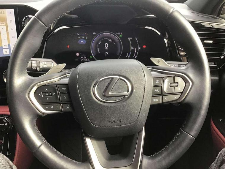 4 driving modes EV/Eco/Normal/Sport, 7" display in instrument binnacle, Blind spot monitoring with rear cross traffic alert, Bluetooth telephone connectivity, eCall emergency system, Electric speed sensitive power steering, Intelligent parking sensors - 4 front and 4 rear, Lane change flasher function, Lexus link connect - Cloud based navigation, cloud based voice assistant, always online and 9.8" VGA touchscreen, Push button starter, Reversing camera with back guidelines, Service interval indicator, Tailgate, Wireless Apple CarPlay/Android Auto, Wireless Smartphone charger, 6.6 kW onboard charger, All Wheel Drive (AWD), Hybrid automatic transmission, Vehicle Dynamics Integrated Management (VDIM), Vehicle Stability Control (VSC), 10 speakers, 4 USB ports - 2 front, one USB C, 2 rear USB C, DAB Digital radio, Auto dimming interior rear view mirror, Automatic headlights, Bi LED headlights, Double hidden exhaust pipes, Front and rear one touch power windows, with anti-jam protection, Heated, auto-folding, auto-dimming outside mirrors with reverse tilt function and turn indicators, Illuminated door handles with puddle light, LED brake lights and rear lights with emergency brake signal, LED cornering lights, LED daytime running lights, LED front fog lights, LED Indicators, Power back door with kick sensor, Privacy glass, rear doors and tailgate, Rain sensor windscreen wipers, Rear side wing doors, Rear wiper, Roof rails, 12V accessory port centre console and luggage compartment, 2 cupholders in front centre console, 2 way electrical lumbar adjustment for driver, 2 x fixed shopping bag hooks in boot, 2 x sun visors with vanity mirror and lamp, 3 seat bench in 2nd row, 4 x tie down hooks in the boot, 60/40 split folding rear seat, 8 way driver/passenger electrically adjustable front seats, Adjustable rear seat backrest, Card holder installed in driver and passengers sun visors, Centre armrest with storage box, Dual climate control air conditioning system, Front and rear head restraints, Front and rear textile carpet mats, Front passenger seat, Heated front seats, Heated steering wheel, Leather gear lever, LED interior illumination, Power adjustable leather steering wheel with paddle shifts, Premium Tahara leather upholstery, Rear centre armrest with 2 cupholders, Whiplash Injury Lessening (WIL) feature (active headrest) for seats, 2 x Isofix child rear seat restraints, 3 point ELR front seatbelts with pretensioners, 3x3 point rear seat belts, ABS, Adjustable seat belt anchor points, Driver and front passenger 2 stage airbag, Driver/front passenger side airbags, Drivers knee airbag, E-Latch with safe exit assist, EBD + Brake Assist, ECB (Electronically Controlled Brake System), Electronic parking brake, Front and rear curtain shield airbags, Front center airbag, Front passenger seat cushion airbag, Hill assist control, Lexus safety system - dynamic radar cruise control, pre collision system day and night, lane tracing assist, road sign, automatic high beam, OTA, Manual rear child locks, Passenger airbag cut-off device, Traction control, Tyre pressure warning, Anti-theft system with alarm, intrusion sensor, glass breakage sensor, tilt sensor and engine immobiliser, Locking wheel nuts, Smart keyless entry, Speed sensitive auto door locking, Two motion door lock with double lock, Ultra Wide Band (UWB) Anti-theft system, VIN Window etching, 3D prism black Inlay, Organic inlay, Tyre repair kit,