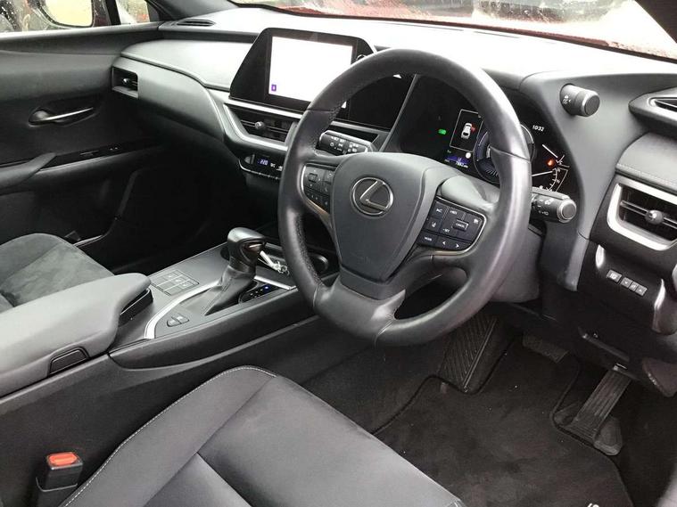 4 driving modes EV/Eco/Normal/Sport, 7" Lexus media display, 7" TFT instrument cluster, Analogue clock with GPS function, Apple car play/Android Auto, Compatible mobile phone bluetooth with audio streaming, E-call, Electric power steering (EPS) with speed sensitive features, Lane change flasher function, Lexus link connected services, Lexus safety systems + includes dynamic radar cruise control, pre collision system day and night, lane tracing assist, road sign assist, Push button start, Remote touch interface, Tailgate, Trip computer, Vehicle Dynamics Integrated Management (VDIM), Vehicle Stability Control (VSC), 2 front USB and 2 rear USB charging points, 6 speakers, AM/FM and DAB radio, AUX socket with VTR compatibility, CD player, Acoustic windscreen, Aero stabilising arch mouldings, Aero stabilising rear lights, Aero ventilated wheels, Bi-LED (low and high beam) headlights with Auto High Beam (AHB), Black roof drip mouldings, Black wheel arches, Body adhesive, laser screw welding and laser brazed roof structure, Body coloured bumpers, Electric adjustable/heated door mirrors, Front and rear one touch power windows, with anti-jam protection, Headlight cleaners, LED daytime running lights, LED tail lights, LED third brake light, Light green UV glass, Rain sensor windscreen wipers, Rear side wing doors, Rear wiper, Shark fin roof aerial, Single hidden exhaust pipe, Towing preparation, Variable front intermittent wipers, 12V accessory port centre console and luggage compartment, 2 cup holders in the front and rear centre console, 2 x folding shopping bag hooks in boot, 2 x sun visors with vanity mirror and lamp, 3 seat bench in 2nd row, 4 x tie down hooks in the boot, 5 headrests, 6 way driver and passenger manually adjustable front seats, 60/40 split folding rear seat, Black roof lining, Card holder installed in driver and passengers sun visors, Centre armrest with storage, Driver and passenger door pocket, Dual zone electronic climate control + Nano-E humidity sensor, Glovebox, Illuminated entry system, Leather gear lever, Leather steering wheel, LED interior illumination, Map pockets in the rear of passenger's front seat, Premium fabric upholstery, Rear air vents with 2 USB chargers, Rear armrest with 2 cupholders, Single passenger seat, Storage tray under audio panel, Textile carpet mats, Tilt/reach adjustable steering column, Under deck storage, Under desk side storage, 2 x Isofix child rear seat restraints, 3x3 point rear seatbelts, Anti-lock braking system (ABS), BAS (Brake Assist System), Driver and front passenger 2 stage airbag, Driver and front passenger knee airbag, Driver/front passenger side airbags, EBD - Electronic brakeforce distribution, ECB (Electronically Controlled Brake System), Electric child locks, Electric parking brake, Front adjustable seatbelt anchor points, Front and rear curtain shield airbags, Front outer seatbelt+pre-tensioners, force limiter+tension reduction: 3-point with active safety link to PCS, Hill start assist control (HAC), Passenger airbag cut-off device, Rear outer seatbelt+pre-tensioners, force limiter+tension reduction: 3-point with active safety link to PCS, Centre belt w/o pre tensioner+force limiter, Secondary Collision Brake (SCB), TRC (Traction Control), Tyre pressure warning, 2 x remote key fobs, Anti theft system : Alarm instruction sensor, glass breakage sensor and engine immobiliser, Locking wheel nuts, Remote central door locking, Speed sensitive auto door locking, Two motion door lock with double lock, VIN Window etching, 17" Alloy wheels, Tyre repair kit,