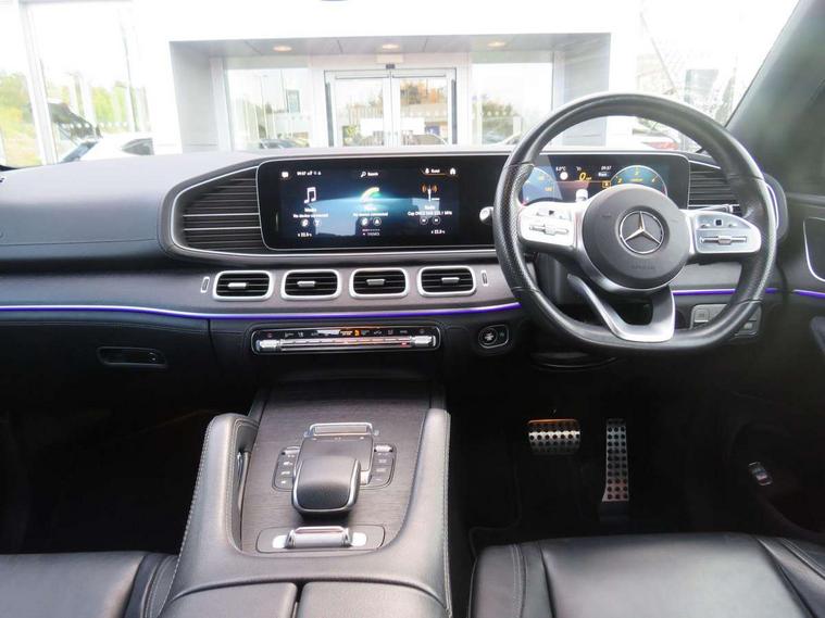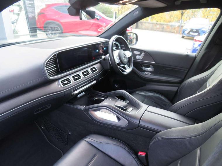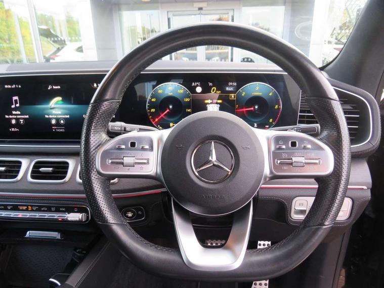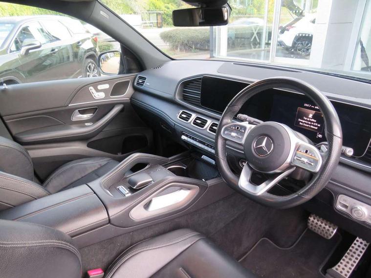 Attention assist, Blind spot assist, Brake wear warning display, Cockpit display 12.3" widescreen digital instrument cluster, Cruise control with variable speed limiter, Direct steer speed sensitive steering, DYNAMIC SELECT with a choice of driving modes (ECO, Comfort, Sport and Individual), Easy-pack tailgate - Powered opening/closing automatically, ECO start/stop function, Geofencing, Hard-disk navigation, Hey Mercedes Voice activation, High resolution 12.3" multimedia colour display, Lane keeping assistant (LKA), Mercedes me connect including emergency call system, accident recovery, breakdown and maintenance management, Outside temperature display, Remote boot release, Reversing camera, Service indicator (ASSYST), Speed limit assist, Status display for rear seat belts in instrument cluster, Traffic Sign Assist, Traffic sign recognition including wrong way warning function and display of posted speed limits in the instrument cluster, Trip computer in multifunction display showing current fuel consumption, Wireless charging system for mobile devices, 85 litre fuel tank, Agility control suspension with selective damping system and lowered by 15mm, Diesel particulate filter (DPF), Incorrect fuelling protection, Additional USB connection, DAB Digital radio, Dual bluetooth interface, 2 USB ports (type C), MBUX multimedia system with DAB digital radio and touchpad including satellite navigation, Adaptive brake lights, Adaptive high beam assist, Aerial for GPS, Aluminium look, illuminated running boards with rubber studs, AMG bodystyling front and rear aprons and side skirts in polished aluminium, Body colour door mirrors, Body coloured bumpers, Electric windows with one touch opening/closing and obstruction sensors, Exterior mirrors heated and electronically adjustable, Front green tinted glass, LED high performance headlamps, LED rear lights, Privacy glass - heat insulating dark tinted glass, Radiator grille with integrated star and single louvre in matt iridium silver with chrome trim, Radio aerial integrated into rear window, Rain sensing windscreen wipers, Rear wiper, Roof rail system, Top surround of side windows in polished aluminium, Visible twin pipe exhaust system integrated into bumper, Waistline in polished aluminium, 3 spoke AMG multifunction steering wheel with touch control buttons, trimmed in black nappa leather with flattened bottom section, 3rd row of seats for 2 people, 4 way adjustable front head restraints and 2 way rear head restraints, 4 way lumbar support, 40:20:40 split folding rear seats, AMG brushed stainless steel sports pedals with rubber studs, AMG floor mats with AMG lettering, Artico man-made leather upper dashboard with contrast topstitching, Automatic child seat recognition sensor, Black fabric roof liner, Central stowage compartment with 12 V socket in centre console, Chrome door pins, Courtesy lights in rear grab handles with reading light functionality, Electric folding second row seats adjustments, Electronically adjustable three second row seats, Four way partially front electric seat adjustment, Front centre armrest with stowage compartment and illuminated grab handles, Gearshift paddles on steering wheel, Glasses compartment in overhead control panel, Glove compartment - lockable, air conditioned and illuminated, Heated front seats, Interior lighting - 64 colour Ambient lighting, Nappa leather upholstery, Seat occupancy sensor for front passenger seat, Second row three seats, Steering column manually adjustable for height and reach, Sunvisors with illuminated vanity mirrors, Thermotronic automatic 4 zone climate control, Touchpad, Airmatic package - GLE, Anti theft Protection package - GLE, Mirror package - GLE, Parking package - GLE, Active bonnet, Active braking assist, Adaptive brake system with HOLD function and brake drying in the wet, Airbags - driver and front passenger, with extended adaptivity for front passenger airbag, Airbags - sidebag for driver and front passenger with combined thorax/pelvis bag, Airbags - windowbags, Anti-lock braking system (ABS), Childproof locks manually operated for rear doors and electrically operated for rear power windows, Drivers knee airbag, Electronic parking brake, Electronic Stability Programme (ESP), ISOFIX child seat attachment points two outer rear seats, Perforated front brake discs and brake calipers with Mercedes-Benz lettering, Pre-Safe anticipatory safety system, Three point rear seat belts, Tyre pressure monitoring system and loss warning system, Warning triangle and first aid kit, Alarm system/interior protection/immobiliser, Central locking with interior switch, automatic locking and crash sensor with emergency opening function, Chrome surround in electric key, Keyless Go starting function, Dashboard and door, anthracite open pore oak wood trim, Trim - Centre console, anthracite open pore oak wood trim, 20" AMG 5 twin spoke light alloy wheels, Summer tyres with noise reducing absorber, TIREFIT with tyre inflation compressor,