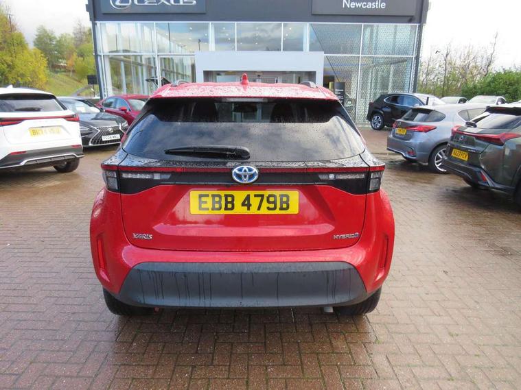 10.5" Multimedia display screen, 10.5" Toyota smart connect+ with navi multimedia system with wireless Smartphone integration incl Apple CarPlay, 360 degree panoramic view monitor, 7" Multi information display screen, Adaptive cruise control, multi info switches on steering wheel, Adjustable speed limiter, Advanced parking assist, Blind spot monitoring, Bluetooth connectivity, Color multi-information display, Digital speedometer, Digital tachometer, Drive mode selector, Driver attention alert system, Dynamic guide lines on reversing camera, eCall emergency system, Electric power steering, Emergency driving stop system, Full range intelligent adaptive cruise control, Hybrid system indicator, Intelligent front and rear parking sensors with clearance sonar and automatic braking, Intersection turn assist, Key reminder warning, Lane change assist, Lane departure warning, Lane trace assist, My T Connected services, Power tailgate, Pre-collision system enhanced with emergency steering assist, Rear cross traffic alert with brake assist, Remote boot door release in cabin, Road sign assist - RSA, Safe exit assist, Telephone switch on steering wheel, Wireless Mobile Phone Charger, Steering assisted vehicle stability control, 6 speakers, DAB Digital radio, Front USB Type-C connector, Front USB-C device charger, 3rd brake light, Acoustic windscreen glass, Anti-jam protection on power windows, Auto dimming rear view mirror, Auto high beam [AHB] with on/off switch, Auto intermittent windscreen wipers, Automatic headlights, Automatic headlights cut-off, Automatically retractable door mirrors, Black door moulding, Black lower front grille, Black protection moulding on side doors, Black roof rails, Black wheel arch mouldings, Body colour door handles, Body colour front bumper, Body colour rear bumper, Electric adjustable heated door mirrors, Follow me home headlights, Front and rear electric windows with auto up/down function, Gloss black upper front grille, Headlight cut off reminder, Indicators integrated on door mirrors, Intermittent rear wiper, Kick activated power back door, LED daytime running lights guide, LED front fog lights, LED front light guide, LED Indicators, LED projector headlights, LED rear lights with sequential indicators, Manual headlight levelling, Meshed upper front grille, Noise reduction layer on windscreen, Privacy glass, Rain sensor, Rear side wing doors, Rear spoiler, Rear window defogger, Shark fin antenna, 12v power outlet - front, 12V power point in boot, 2x Rear coat hooks, 3 seat bench in 2nd row, 3 spoke leather steering wheel, 40/60 split deckboard, 40:20:40 split folding rear bench seat, Adjustable rear headrests, Adjustable speed limiter switch on steering wheel, Boot light, Central armrest, Driver and front passenger personal lights, Driver and front passenger Whiplash injury Lesseing seats, Driver and passenger seatback pockets, Dual zone automatic air conditioning, Fabric door trim, Front console box, Front cup holders, Front door pockets, Front head restraints, Front sport seats, Front/rear assist grips, Gear shift indicator, Grey roof lining, Heated driver and passenger seats, Heated steering wheel, Height adjustable driver's seat, Height adjustable front passenger seat, Hooks for luggage holding belts, ISOFIX child restraint system, Lane departure alert switch on steering control, Leather gearshift, LED centre room light, Light on driver and passenger sun visor, Manual telescopic and tilting steering wheel, Mirror on driver and passenger sun visor, Nanoe-X air purifier, Partial synthetic leather upholstery, Pollen air filter, Power adjustable lumbar support on driver seat, Rear cup holders, Rear door pockets, Rear head restraints, Remote air-conditioning system, Single compartment glovebox, Single front passenger seat, Soft tonneau cover, Storage box under boot floor, Voice recognition switch on steering wheel, White ambient lighting in centre console, White ambient lighting in footwell, White ambient lighting on front doors, Yaris cross floor mats, Tech pack - Yaris Cross, 3x3 point rear seat belts, ABS+EBD+Brake assist, Downhill Assist Control (DAC), Driver and passenger central airbags, Driver and passenger front airbags, Driver and passenger side airbags, Electronic parking brake, Emergency brake light system (EBS), Front seat belt reminder, Hill start assist control (HAC), Passenger airbag on/off switch, Pre-collision system with pedestrian and cyclist detection, Rear door child safety locks, Rear passenger side airbags, Rear seat belt reminder, Traction control, Tyre pressure warning system, Immobiliser, Intrusion alarm, Keyless smart entry with push button start, Power door locks, Power passenger window lock, Remote door lock, Gloss black side air vent surrounds, Tyre repair kit,