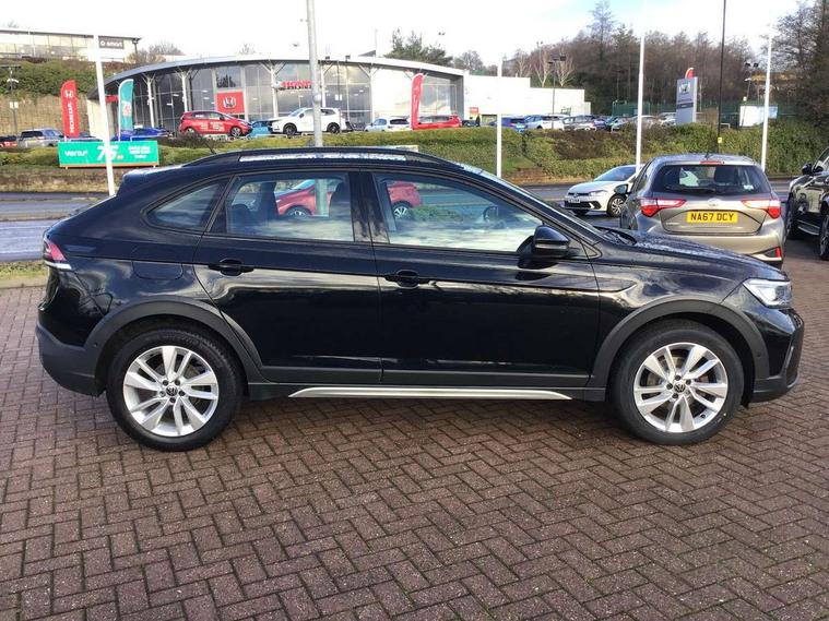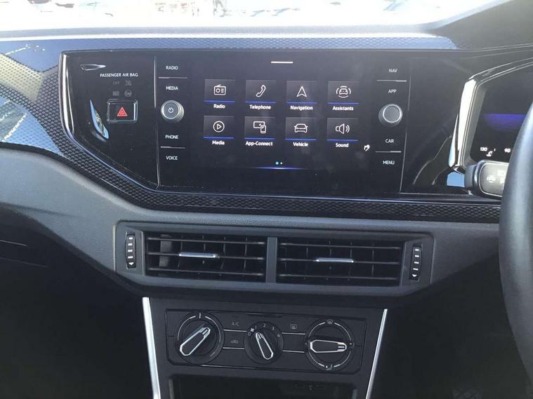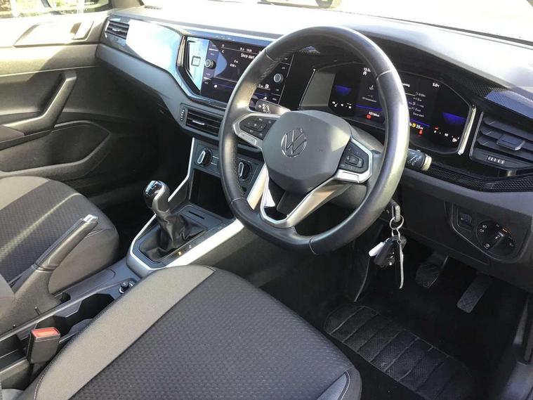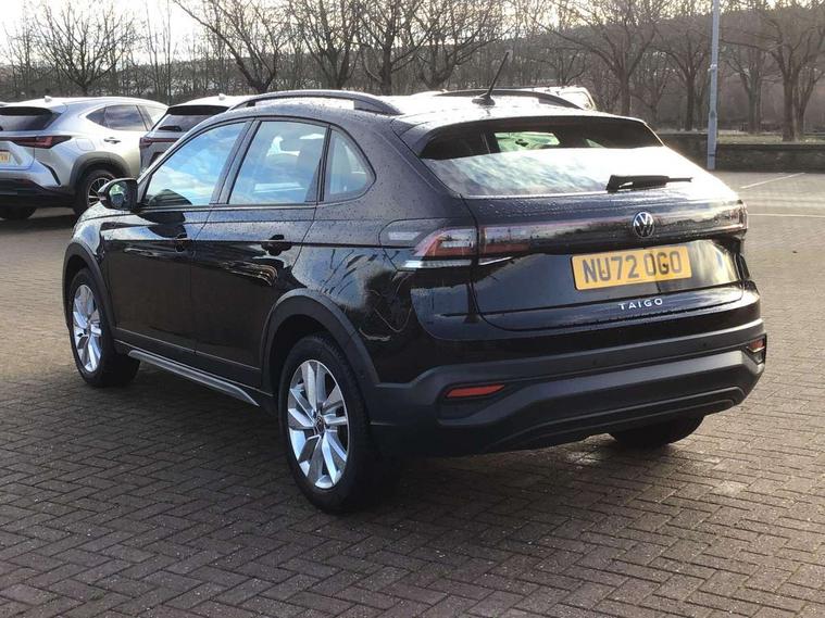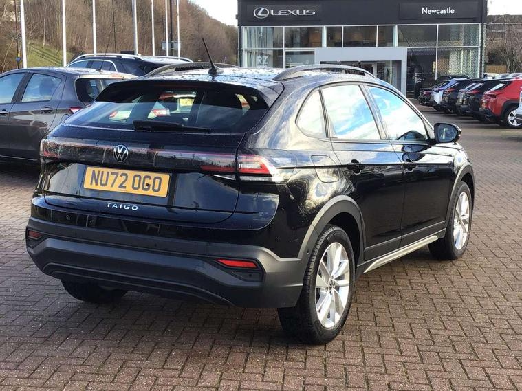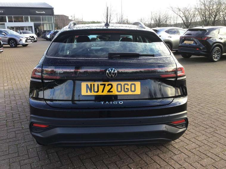 App-Connect including App-Connect Wireless, Driver alert system, e-Call (emergency call), Power Steering, Travel assist including emergency assist, Washer fluid level indicator, Wireless Charging including Bluetooth, Start-stop system with battery regeneration (recuperation - energy recovery during braking), Digital radio reception (DAB+), Diversity antenna for FM reception, WeConnect plus, Ambient lighting with logo projection, Aspherical driver's exterior mirror, Auto headlights, Body coloured bumpers, Body coloured exterior mirror housings and door handles, Electric windows, External USB type C socket and charging sockets, Front fog lamps with cornering function, Headlight range control, Heat insulating glass windscreen, LED headlamps, LED rear combination lamp, LED third brake light, Left convex exterior mirror, Power folding adjustable/heated exterior mirrors and front passenger exterior mirror lowering function, Rear fog light on one side, reversing light on both sides, Rear side wing doors, Rear wash/wipe with intermittent wipe setting, 'Slash/ Austin' Cloth upholstery, 12V socket in centre console, 2 front reading lights, 3 rear head restraints, 3 seat bench in 2nd row, Black carpets, Child seat anchor for child seat system i-Size, 2x top tether and child seat anchor in front on front passenger side, Door and side trim panels in titan black, Driver and front passenger seat height adjustment, Front centre armrest, Handbrake lever handle in leather, Height and reach adjustable steering wheel, Leather trimmed gear knob, Leather wrapped multifunction steering wheel, Luggage compartment floor, Luggage compartment light, Lumbar support for driver's and front passengers seat, Seat covers in titanium black, Single front passenger seat, Split folding backrest with centre armrest and unsplit rear seat bench, Storage compartment under front seats, Sun visors with illuminated vanity mirrors, Chrome Package - Taigo, Drivers assistance pack - Taigo, Light and Sight pack including High beam assist - Taigo, 2 x 3-point seatbelts/outer rear seats with ECE label, 3-point seat belts in front with pretensioner and height adjustment, 3-point seatbelt for centre rear seat, Driver and front passenger airbags with front passenger airbag de-activation, front side and curtain airbags, Driver and front passenger safety-optimised head restraints, Electronic stability control, Extended and predictive pedestrian/ cyclist protection, Front and rear disc brakes, Front curtain and side airbags with center airbag, Hill start assist, Manual rear child locks, Single tone horn, Tyre pressure loss indicator, Anti-theft alarm system with interior monitoring, backup horn, and towing protection, Anti-theft wheel bolts, Lava stone black gloss/matt decorative inserts in dash and front door panels, Low rolling resistance tyres,