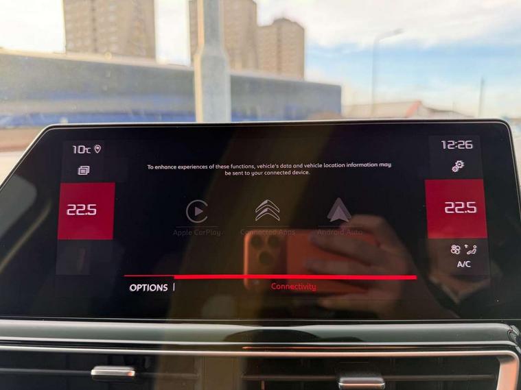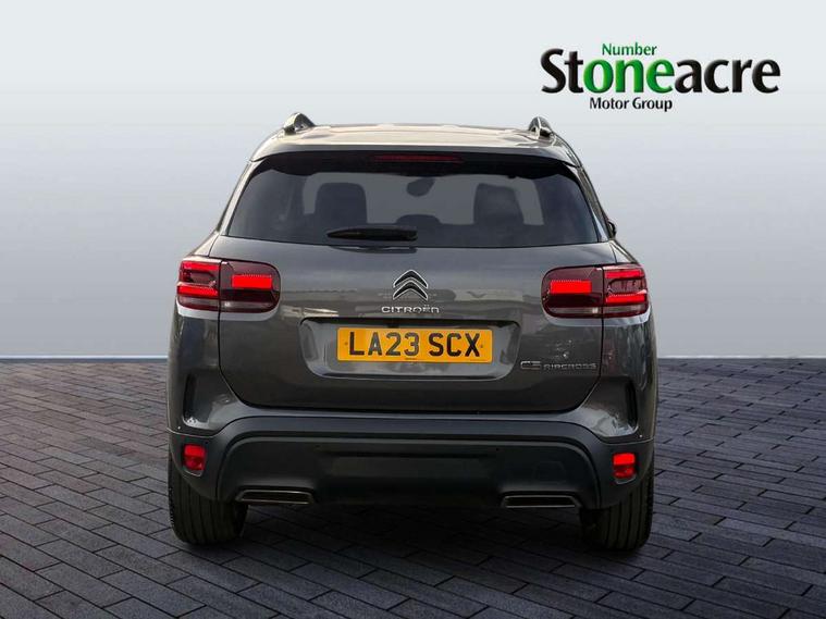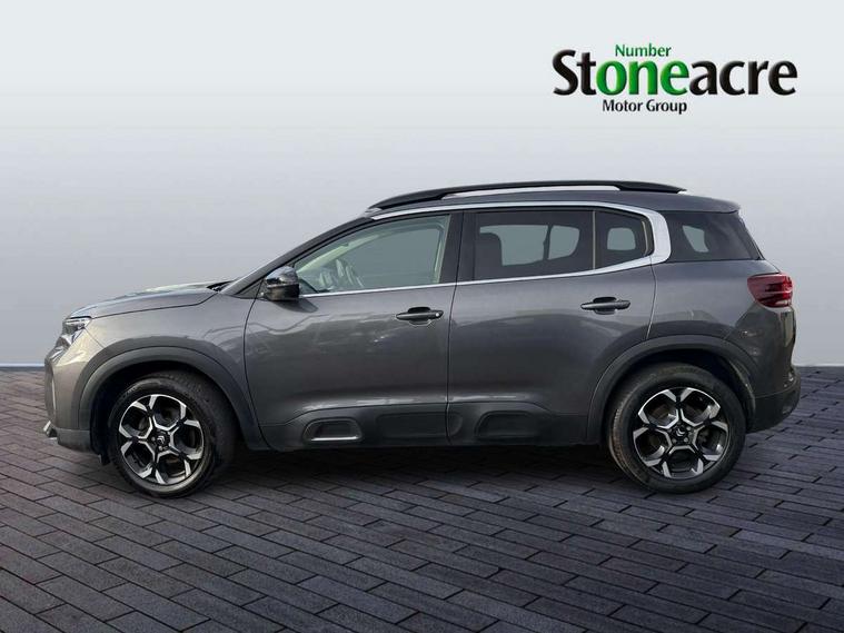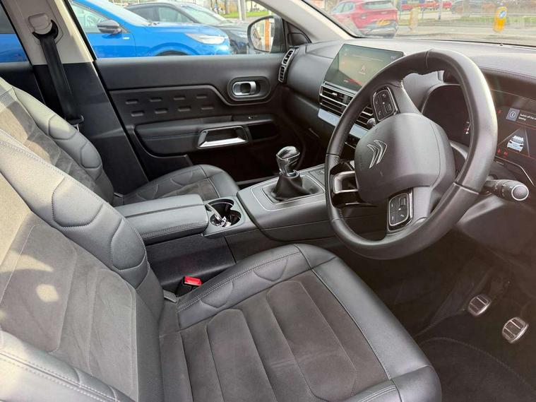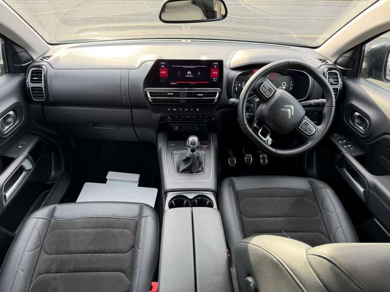 10" Touchscreen user interface with citroen connect nav, voice commands, Bluetooth handsfree and audio streaming, 12.3" digital instrument cluster with customisable zones and colour schemes, Citroen connect box emergency assist system, Citroen connect play featuring android auto and apple carPlay, Electric power steering, Multi function trip computer, Advanced comfort suspension, Auxiliary input socket, FM and DAB digital radio, 6 speakers, Polyphonic sounds, USB A socket (charge only) on rear part of central console, 3rd brake light, Acoustic laminated windscreen with rain and brightness sensors, Automatic hazard light activation upon heavy brake application, Automatic headlights with welcome and goodbye lighting, Body colour door handles, Body colour front bumper with air curtain, silver painted skid plate, and matt black lower section, Body colour rear bumper, Electric heated and folding door mirrors with LED approach lighting and blind spot monitoring indicators, Electrochrome auto dimming interior rear view mirror, Front fog lights with static cornering function, Gloss black longitudinal roof bars, Glossy black door mirrors, Glossy black structured grille, LED headlights with LED daytime running lights and visual signature, LED rear lights with visual signature, Magic wash automatic windscreen wipers with flat blades, variable speed depending on vehicle speed, and windscreen washers integrated into the wipers, Radio aerial integrated into rear window, Rear side wing doors, Rear window wiper with intermittent facility, linked to reverse gear, Sequential electric front and rear side windows with anti pinch function, Stainless steel front door thresholds, Stainless steel window finishers, Tinted row 1 windows and dark tinted row 2, C-Pillar and tailgate windows, 12V power outlet and 2x USB-A sockets (1x charge+data, 1x charge only) on front part of central console, 12V socket in boot, 2 Position boot floor, 3 point ISOFIX mountings on front passenger and rear outer seats, 4 way adjustable steering column, 6-way electric adjust driver seat, Adjustable headrests (2 in front, 3 in rear), Advanced comfort front and rear seats, Aluminium pedals and foot rest, Automatic bi-zone air conditioning with active carbon filter and air quality system, plus controllable row 2 air diffuser, Boot light, Central storage box with opening central armrest and interior lighting, Dashboard storage area to right of driver, open storage at front of central console, glovebox with smooth opening and lighting, Front + rear carpet mats, Front door storage can hold 1.5 litre bottle and A4 size documents, B-pillar coat hooks, rear door storage, central storage under armrest, Manual driver lumbar adjustment, Manual front passenger seat adjustment (height, slide, backrest angle), Map pockets in rear of front seats, Multi function leather steering wheel with two command blocks, Single front passenger seat, Three individual sliding seats with adjustable backrest and flat floor function, Two open cupholders with LED lighting in central console, Urban leather effect cloth/Alcantara upholstery with black ambience, City camera pack with front and rear parking sensors - C5 Aircross, Drive assist pack - C5 Aircross, LED interior lighting - - C5 Aircross, 3 rear 3-point seatbelts (outer seats featuring force limiters), ABS/EBD, Adaptive driver and front passenger airbags with passenger airbag deactivation function, Collision risk alert, Driver and front passenger side airbags, DSC (Dynamic Stability Control) and ASR (Electronic Anti-skid System), Electronic parking brake, ESP including traction control and stability programme, Front seat belts with double pretensioning, force limiters and height adjustment (driver and passenger), Front ventilated disc brakes and rear disc brakes, Head curtain airbags covering rows 1 and 2 (left and right), Hill start assist, Manual child lock in second row, Seatbelt unfastened audible alert, Two tone horn, Tyre under inflation indicator, Anti theft alarm with perimetric and volumetric protection, plus tilt sensor, Anti theft locking wheel nuts, Automatic door and tailgate locking with automatic unlocking in case of collision, Electronic code immobiliser, Keyless entry and start, Remote central locking + deadlocks, Compressor with puncture repair kit,