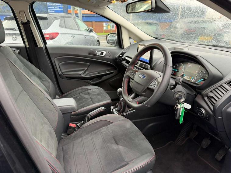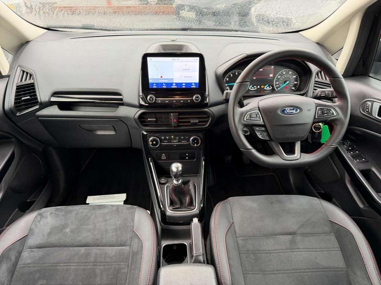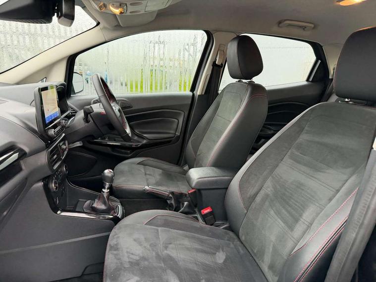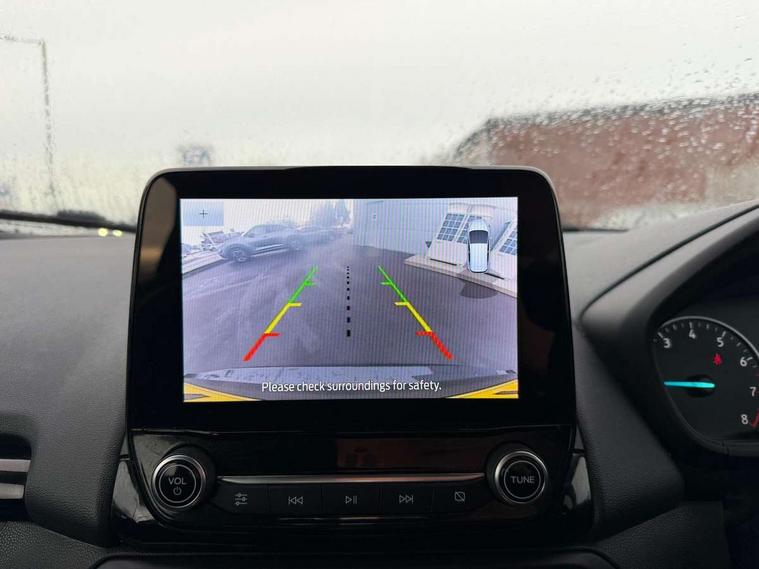 Cruise control, e-Call (emergency call), Easy fuel capless refuelling system, Ford SYNC 3 nav system with DAB radio, 8" screen, emergency assistance, Apple car play/Android auto, 2x USB, 6 speakers, Ford pass connect, Intelligent speed limiter, PAS, Rear parking sensors, Rear view camera, Traffic sign recognition, Trip computer, Sports suspension, Steering wheel mounted audio controls, Auto dimming rear view mirror, Automatic front wipers, Automatic headlights, Black roof rails, Body colour door handles, Body coloured bumpers, Chrome lower window surround, Electrically adjustable and heated door mirrors, Front fog lights, Front grille bars and surround in black, Headlight levelling control, Large rear roof spoiler, LED day running lights, LED third brake light, Power front and rear windows, Puddle lights, Quick-clear heated windscreen, Rear side wing doors, Rear wiper, ST Line body styling kit - Black headlamp bezel, front and rear sport bumpers, body colour lower door claddings, 12V socket in front and rear, 3 seat bench in 2nd row, 60/40 split rear seats, Ambient lighting, Centre console with sliding front armrest, Cooled glovebox, Courtesy lights with map reading light, Driver seat height/lumbar adjust, Driver's side glovebox, Driver/passenger sunvisors and lidded vanity mirrors, EATC - Electronic Auto Temperature control, Folding grab handles, Front head restraints, Front seat back map pockets, Illuminated glovebox, Illuminated luggage compartment, Isofix system on outer rear seats, Luggage compartment carpet, Neosuede/Partial sensico leather upholstery, Overhead console with sunglasses holder, Rake adjustable rear seats, Reach + rake adjustable steering column, Rear headrests, Sensico trimmed steering wheel, handbrake and gearshift gaiter with red stitching, Single front passenger seat, ST-Line Front floor mats with red stitching, Stainless steel sports pedals, Storage drawers under front seats, Tie down hooks, Variable boot floor, 3x3 point rear seatbelts, ABS, Autonomous emergency braking, Child locks on rear doors, Curtain airbags, Driver airbag, Drivers knee airbag, Electronic Stability Programme with hill launch assist, Front passenger airbag deactivation, Front side airbags, Passenger airbag, Pre collision assist system with AEB, Seatbelt reminder for driver and front passenger, Traction control, Tyre pressure monitoring system, Immobiliser, MyKey system, Remote central locking, Thatcham 1 volume sensing alarm, Low rolling resistance tyres, Tyre inflation kit,
