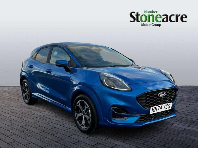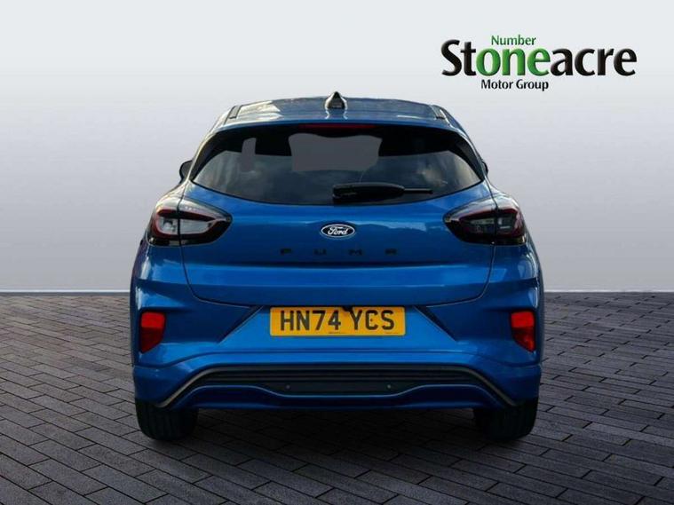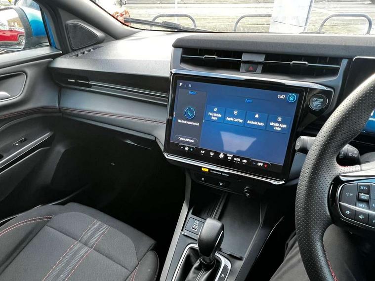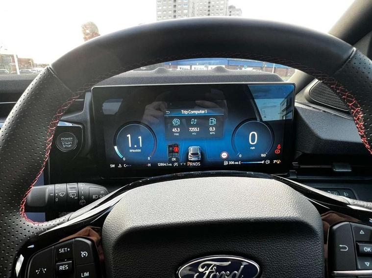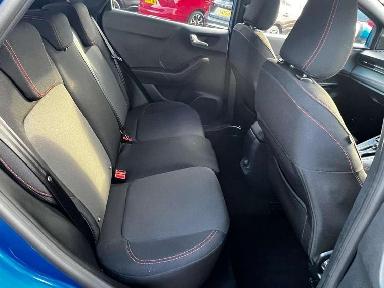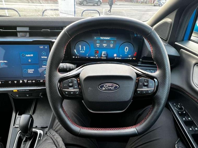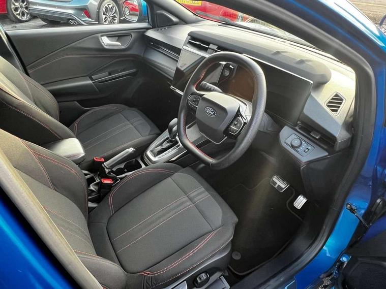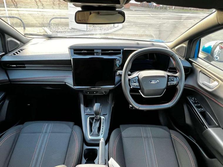 Driver impairment monitor, Emergency call service, Ford easy fuel, Full digital 12.8" instrument cluster, Lane keeping aid with lane departure warning, Power assist steering, Selectable drive modes(Normal, Eco, Sport, Slippery and Trail), Speed sign recognition, Sport suspension, 12" landscape touchscreen display with wireless apple car play and android auto 6 speaker audio system, Ford pass connect and emergency assistance, Ford SYNC4 with connected navigation, Automatic headlights with rain sensing wipers and auto high beam, Front fog lamps, LED daytime running lights, LED rear lamps, LED third brake light, Power foldable heated door mirrors with puddle lamps and puma logo protection, Quickclear heated windscreen, Rear privacy glass, Rear side wing doors, Rear wiper, ST-Line body styling kit with unique grille, 3 seat bench in 2nd row, Centre console with armrest and stowage, Electronic automatic temperature control (EATC), Ford megabox extended bootspace, Front and rear head restraints, Front floor mats, Manual 4 way driver seat adjust with lumbar adjustment, Single front passenger seat, ST- Line cloth trim with red stitching, 3 rear seatbelts, Child safety lock, Electronic stability control (ESC) and hill start assist, Pre-collision assist with autonomous emergency braking, pedestrian/cyclist detection & post-collision braking, Tyre pressure monitoring system (TPMS), Thatcham alarm,