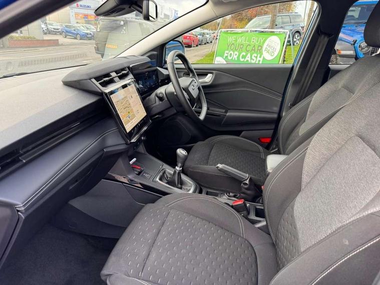 Driver impairment monitor, Emergency call service, Ford easy fuel, Full digital 12.8" instrument cluster, Lane keeping aid with lane departure warning, Power assist steering, Selectable drive modes(Normal, sport, Eco, trail, slippery), Speed sign recognition, Standard suspension, 12" landscape touchscreen display with wireless apple car play and android auto 6 speaker audio system, Ford pass connect and emergency assistance, Ford SYNC4 with connected navigation, Automatic headlights with rain sensing wipers and auto high beam, Front fog lamps, LED daytime running lights, LED rear lamps, LED third brake light, Quickclear heated windscreen, Rear privacy glass, Rear side wing doors, Rear wiper, 3 seat bench in 2nd row, Centre console with armrest and stowage, Electronic automatic temperature control (EATC), Ford megabox extended bootspace, Front and rear head restraints, Front floor mats, Manual 4 way driver seat adjust with lumbar adjustment, Single front passenger seat, Titanium cloth upholstery, 3 rear seatbelts, Child safety lock, Electronic stability control (ESC) and hill start assist, Pre-collision assist with autonomous emergency braking, pedestrian/cyclist detection & post-collision braking, Tyre pressure monitoring system (TPMS), Thatcham alarm, 17" Absolute black machined finish alloy wheel,