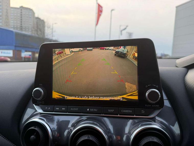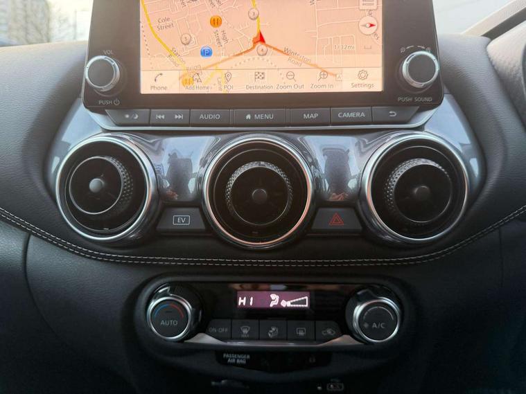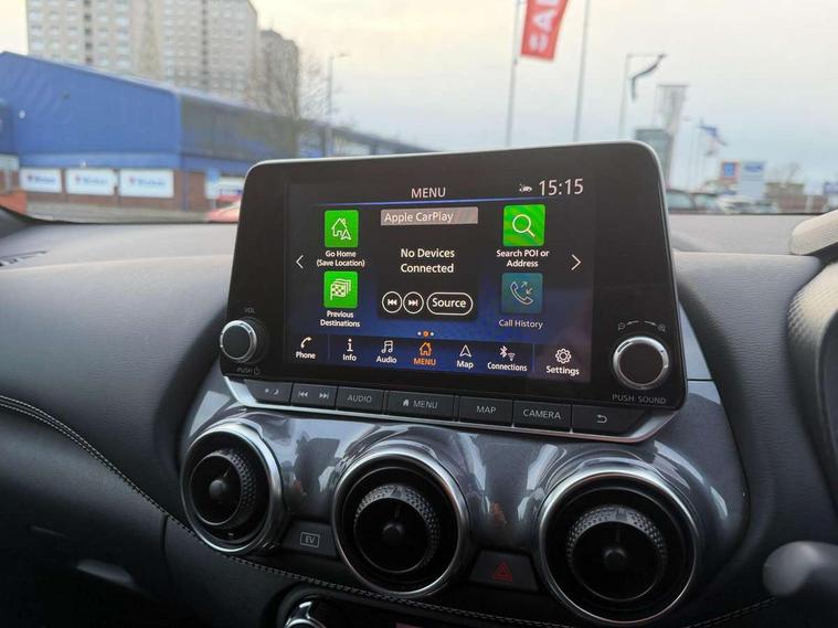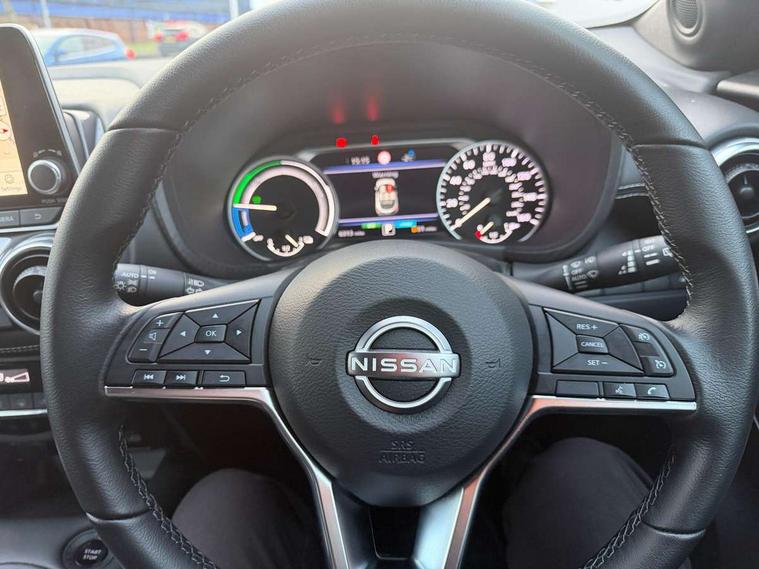 7" full colour TFT screen combimeter, Apple CarPlay and Google Android auto, Drive modes select (Eco, normal and sport), e-Pedal step, Emergency and breakdown call, EV mode selector, Front parking sensor, Intelligent lane intervention, Lane departure warning system, Nissan connect 8" touch screen entertainment system, Nissan connect nav with TomTom traffic, Nissan connect services and Wifi connection, Outside temperature sensor, Power Steering, Rear parking sensor, Traffic sign recognition, Trip computer, Voice recognition, Gasoline particulate filter, 6 speakers, Bluetooth system, USB, Aux-in and 12V socket, DAB Digital radio, Rear console USB port, Auto dimming interior rear view mirror, Auto headlights, Automatic hazard signal with emergency stop signal, Body colour bumpers, Body colour door handles, Electrically adjustable door mirrors with integrated indicators, Follow me home headlights, Front and rear electric window with one touch driver window, Heated and auto folding door mirrors, High beam assist, LED daytime running lights, LED headlamps, LED rear fog lamp, LED rear lamps, Rain sensor windscreen wipers, Rear privacy glass, Rear side wing doors, Rear wiper, Three blink turn signal, 3 height adjustable rear headrests, 3 seat bench in 2nd row, 60/40 split folding rear seat, Automatic climate control, Card holder on driver sunvisor, Cloth upholstery with black and metallic grey syntech leather inserts, Driver and passenger sliding and reclining seats, Driver side rear coat hanger, Driver/passenger sunvisors and vanity mirrors, Front and rear cabin lights, Front armrest, Front door pockets with bottle holders, Front head restraints, Front/rear passenger grab handles, Grey synthetic leather kneepad, Height adjustable driver's seat, Internal chrome door handles, Leather gearshift knob, Leather steering wheel, Luggage board, Luggage space lighting, Monoform sporty seats, Multifunction steering wheel, Rear door bottle holders, Single front passenger seat, Steering wheel mounted gearshift paddles, Telescopic steering wheel adjustment, Two cupholders in front centre console, Two rear isofix child seat anchorage points with top tether, Welcome light and console tray ambient lighting, ABS with EBD and brake assist, Active ride control, Active Trace Control, Driver and passenger airbags, Driver and passenger side airbags, Electric handbrake with auto hold function, Electronic Stability Programme (ESP), Front and rear curtain airbags, Height adjustable seatbelts, Hill start assist, Intelligent emergency braking with pedestrian and cyclist recognition, Rear door child safety locks, Seatbelt reminder for driver/front passenger and rear seats, Single tone horn, Three 3 point rear seatbelts, Traction control, Tyre pressure monitoring system, VDC Dynamic Vehicle Control, Ventilated rear brake discs, Alarm, Immobiliser, Intelligent key and start push button with walk away lock and approach unlock functions, Remote central locking,