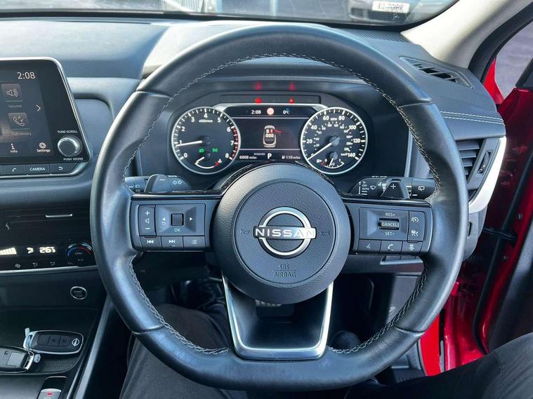 7" High definition full colour TFT screen combimeter, Android auto/Apple CarPlay (Wired), Blind spot warning, Drive modes (sport, normal, eco), Electric speed sensitive power steering, Emergency and breakdown call, Idle stop/start system, Intelligent Cruise control (ICC), Intelligent driver alert system, Intelligent forward collision warning, Intelligent lane intervention, Lane departure prevention, Lane departure warning system, Maximum speed limiter, Nissan connect 8" touchscreen infotainment system, Push button starter, Rear cross traffic alert, Rear parking sensors, Rear view camera, Traffic sign recognition with legal speed adjustment, Trip computer, 6 speakers, AM/FM audio system with DAB, Bluetooth audio streaming, Front USB connections (Type-A and Type-C), Auto dimming rear view mirror, Auto rear wiper when reversing, Automatic hazard signal with emergency stop signal, Body colour mirror caps, Body coloured door handles, Bodyside mouldings, Chrome side window finisher, Door handle with button, Electric auto folding door mirrors, Electrically adjustable and heated door mirrors with LED turn indicator, Follow me home headlights, High beam assist, Intelligent auto headlights, LED daytime running lights, LED Headlights, LED rear lights, One touch front and rear electric windows with remote opening and closing, Partially body coloured bumpers, Rear reversing light (bulb lighting), Rear roof spoiler, Rear side wing doors, Shark fin antenna, Splash free rain sensing wipers, Three blink turn signal, 12v power socket in dashboard and luggage, 2x Rear coat hooks, 3 bench rear seats in 2nd row, 3 rear headrests, 4 folding assist grip, 6-way manually adjustable driver's seat, 60/40 split folding rear seat bench, Centre console storage tray, Chrome interior door handles, Cloth monoform upholstery, Driver and front passenger sunvisors with illuminated vanity mirrors, Driver seat back pocket, Dual zone automatic climate control with pollen filter, Electrically adjustable lumbar support for driver, Front and rear door storage, Front centre console and armrest, Front cupholders x 2, Front door with bottle holders, Glovebox with light, Hard trunk cover, Height adjustable driver's seat, Height adjustable front headrests, Height adjustable passenger seat, Leather steering wheel, Luggage space lighting, Manually adjustable passenger (slide recline + lifter), Multifunction steering wheel, Passenger seat back pocket, Rear armrest with 2 cupholders, Rear door bottle holders, Single front passenger seat, Steering wheel gearshift paddles, Steering wheel switches, Sunglasses holder, Tilt/telescopic adjustable steering wheel, Two rear isofix child seat anchorage points with top tether, 3x3 point rear seatbelt pretensioners + load limiters, ABS with EBD and brake assist, Active brake limited slip, Auto hold function, Child locks on rear doors, Curtain and front side, far side airbags, Driver and passenger airbags, Driver, passenger and 2nd row rear seat belt reminder, Electronic parking brake, Front seatbelt pretensioners + load limiters, Height adjustable front seatbelts, Hill start assist, Intelligent blind spot intervention, Intelligent front emergency braking with pedestrian, cyclist recognition and junction assist, Intelligent rear automatic braking, Tyre pressure monitoring system, Vehicle dynamic control, Capless fuel filler, Engine immobiliser, Intelligent Key, Remote central door locking with deadlocking, Thatcham Cat.1 alarm, Interior instrumental panel A finisher, 17" Alloy wheels, Tyre puncture repair kit,