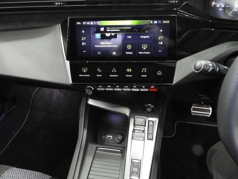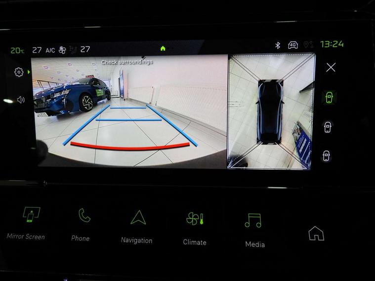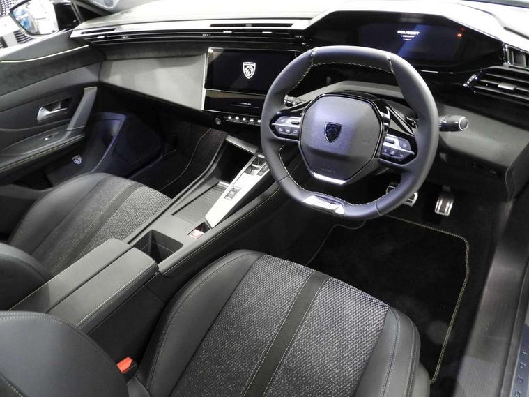 Bluetooth telephone facility, Compact automatic gearbox impulse selector, Driver attention warning, Driver's profile setting, Emergency call service, Extended traffic sign recognition, Exterior temperature indicator with ice warning, Front and rear parking sensors, Intelligent speed adaptation, Lane keep assist, Multi driving mode selector - Eco / Normal / Sport mode selector, Multi function trip computer, PEUGEOT i-Cockpit with 10.0" high definition (HD) capacitive touchscreen, PEUGEOT i-Cockpit with compact steering wheel, PEUGEOT i-Connect Advanced - Over the air updates, PEUGEOT SOS and assistance, Push button start, Speed limit recognition and recommendation, Wifi and voice recognition, Wireless apple car play/android Auto, 2x USB sockets in front, 2x USB sockets in rear, DAB Digital radio, PEUGEOT i-Cockpit with PEUGEOT configurable i-Toggles, 3rd brake light, 408 Model designation badges on front and rear, Acoustic laminated front windows, Acoustic tinted windscreen, Automatic hazard light activation upon heavy brake application, Body colour door handles, Body colour rear spoiler, Dark tinted rear side and tailgate windows, Electric, heated, and power folding door mirrors, Electrochrome rear view mirror, Front and rear electric windows with one touch/anti pinch, Front grille with vertical body colour stamping, Full LED matrix headlights with automatic adjustment, Gloss black finish B pillar, Gloss black rear cluster connecting strip, High beam assist, LED rear number plate lights, LED side indicator lights integrated into door mirrors, Lower body and wheel arch "SUV style" protection, Nera black door mirrors, PEUGEOT shield on front doors, PEUGEOT signature LED front daytime running lights incorporating indicators, Rear bumper grained black, Rear full LED 3D Peugeot new claw effect lights with sequential welcome sequence upon unlocking the vehicle, Rear Hybrid badging, Rear reversing lights, Rear side wing doors, Roof mounted 'fin' style antenna, Smart electric tailgate, Tailgate with heated rear windscreen and wiper blade, 1/3 2/3 'Magic Flat' folding rear seats with controls located in the boot, 2x 12V sockets, 3 seat bench in 2nd row, 4 Grab handles retractable and damped, 8 Colour personalisable ambient lighting, Aluminium door sills and boot sill, Aluminium pedals and footrest, Arch design central console with storage, Central front armrest with storage compartment, Dual Zone automatic air conditioning with AQS 3, Dynamic front seats, Electric power steering with reach and rake adjustable steering column, Front central console with two cup holders, Gloss black waistbelt (window weather strips), Glovebox with LED lighting, Heated steering wheel, High air vent system, Luggage cover, Luxury carpet mats with adamite green stitching, Multifunction full grain leather steering wheel with admite green stitching & GT badging, Piano keys toggle switches to access main functions, Roof lining - Mistral black, Seatbelt unfastened on the move audible and visual alert for front and rear seats, Single front passenger seat, Ski hatch with central rear armrest with cup holder, Steering wheel mounted gearshift paddles, Sunvisor with concealable vanity mirrors with LED lighting, Driver Sport Pack - 408, Visibility pack - 408, 2x Isofix child seat fitting on outer rear seats, 3x3 point rear seat belts, ABS + EBD + EBA, Active safety brake with night function/cyclists/pedestrians, Adaptive driver and front passenger airbags with passenger airbag deactivation function, Advanced emergency braking system (Video - AEB) includes Radar, Automatic post collision braking, Child locks on rear doors, Driver/front passenger side airbags, Electronic parking brake, ESP, Front and outer rear seatbelts with pyrotechnic pretensioners, Front and rear curtain airbags, Front and rear disc brakes, Front optimised safety headrests and rear retractable headrests (x3), height adjustable, Front three point retractable seatbelts with force limiters, Hill start assist, Tyre under inflation monitoring and indirect detection with visual indicator and warning sound, 2x keys, Acoustic vehicle alert system (AVAS), Anti-theft wheel bolts, Automatic door locking when moving off, Deadlocking system, Electronic code immobiliser, Locking wheel nuts, Peugeot open and go system includes keyless entry with proximity locking and unlocking, Thatcham cat. 1 alarm with anti lift sensor, 19" Graphite diamond cut alloy wheels in Onyx black gloss, Alloy wheel 'star' centre cap,
