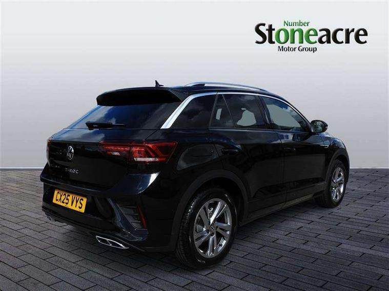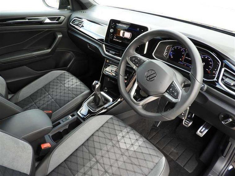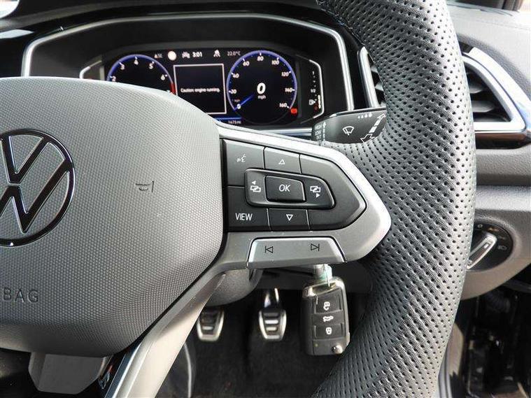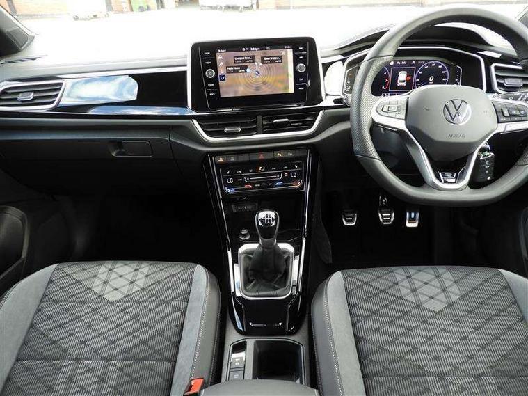 10.25" Digital cockpit pro, Advanced driver attention and drowsiness monitor, Emergency call service, Lane keeping system Lane Assist, Mobile phone interface, Modified key software - reduce switch off time for key status change to Long no motion, Online services, Park assist including front and rear parking sensors, Service interval indicator, Tailgate/trunk lid release from outside, Think blue trainer driver tips and journey analysis, Warning sound and light for front seatbelts unfastened, Wireless app connect, Battery regeneration during braking, Start/stop function with battery regeneration, DAB Digital radio, Diversity antenna for FM reception, Front and rear 6 speakers, Music playback - MP3, WMA and AAC files, Premium USB cable in choice of either Apple or Android smartphone compatibility, SD card slot, Simultaneous pairing of 2 compatible mobile devices, Title and cover art display, We Connect and We Connect Plus functionality, Auto dimming interior rear view mirror, Automatic hazard lights activation under emergency braking, Automatic headlight control with LED separate daytime running lights with coming/leaving home function, Body coloured exterior mirror housings and door handles, Electrically adjustable and heated door mirrors, Extended roof spoiler, Exterior mirrors aspherical on driver side, convex on front passenger side, External USB type C socket and charging sockets, Front windscreen wiper with intermittent wipe and 4 position delay, Heated rear window, LED 3rd brake light, LED rear combination lamps, LED rear number plate lights, Power windows with comfort operation and circuit breaker, Privacy glass for rear side windows and rear window, R-Line design body coloured bumpers, Rain sensor, Rear exhaust tailpipe, Rear fog light on one side and reversing lights on both sides, Rear side wing doors, Rear wash/wipe with intermittent wipe setting, Remote electrically foldable door mirrors, puddle lights and reverse activated passenger's door mirror, 12V power socket in centre console, 3 rear head restraints, 3 seat bench in 2nd row, 4 load lashing points in luggage compartment, Air care climatronic air conditoning system with active combination filter and 2-zone temperature control, Black roof lining, Chrome plated decorative trims, Chrome plated radiator grille inserts, air vent surrounds and light switch surrounds, Door and side trim panel with leatherette insert, Front + rear carpet mats, Front centre armrest, Front cupholders x 2, Front footwell illumination, Front reading light, Front scuff plates with R Line logo, Front seat back storage pockets, Glove compartment door with light, Instrument lighting, white adjustable panel illumination, Interior ambient lighting and surround lighting, Interior light delay, Isofix child seat preparation, Leather gearshift handle, Load-through provision with cup holder when folded down ('Unsplit rear seat bench, split folding backrest, with centre armrest), Luggage compartment lighting, Single front passenger seat, Stainless steel pedals, Storage compartment in left and right luggage area, Storage compartment in rear doors, Storage compartments in driver and front passenger doors, Sunvisors with illuminated vanity mirrors, Variable boot floor, height adjustable and removable, Driver assistance pack without proactive passenger protection - T-Roc, 3 point height adj front seatbelts + pretensioners, 3 point seatbelts in outer rear with ECE label, ABS, Child locks on rear doors, City emergency braking and pedestrian monitoring, Driver and front passenger airbag with front passenger airbag deactivation, Driver and front passenger safety-optimised head restraints, Drivers seatbelt reminder, Electronic parking brake, Electronic Stability Control (ESC) inc EDL (Electronic Differential Lock) and ASR (Traction Control), Front and rear passengers curtain airbag system including front side airbags, Hill start assist, Predictive pedestrian protection, Rear disc brakes, Two tone horn, Tyre pressure loss indicator, Volkswagen roadside assistance, Piano black decorative inserts in dashboard and front door trim panels, Trims for alloy wheels,