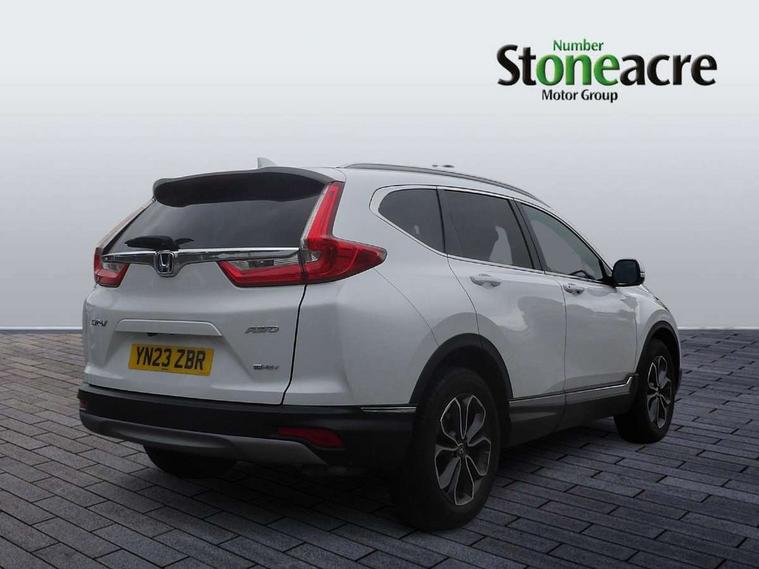 Adaptive cruise control, Agile handling assist, BLIS (Blind Spot Information System) with dual power heated blind spot mirrors, Bluetooth hands free telephone connection, E-call, Economy mode, Electric power steering, Emergency stop signalling system, Forward collision warning, Front parking sensors, Hands free tailgate, Head up Display, Honda CONNECT with GARMIN Navigation + 7" touchscreen, DAB radio, Apple CarPlay, Android Auto, Aha app integration and internet browsing, Intelligent multi info display, Lane departure warning system, Lane keep assist system, Low speed following, Rear parking sensors, Rear view camera, Road departure mitigation, Speed limiter, Traffic sign recognition, Wireless charging, Drive mode (Econ, Sport, EV), Vehicle stability assist, 2 USB sockets in rear, 2x USB sockets in front, 9 speakers, DAB Digital radio, Dashboard centre speaker, Front tweeters, Steering wheel mounted controls, Subwoofer, Aspheric door mirrors, Auto dimming rear view mirror, Auto wipers, Automatic headlights with dusk sensor, Body colour bumpers, Body colour door handles, Body colour door mirrors, Chrome grille, Cornering light, Door mirrors tilt when reversing, Electric front windows/one touch facility, Electric rear windows + one touch facility, Electrically adjustable and heated door mirrors, Electrically retractable door mirrors, Front LED Indicator lights, Front windscreen de-icer, High beam assist, LED daytime running lights, LED front fog lights, LED Headlights, LED rear lights, Panoramic opening glass sunroof, Rain sensor, Rear privacy glass, Rear side wing doors, Rear wiper, Roof rails, Shark fin roof aerial, Tailgate spoiler, Third brake light, Welcome home function, 3 seat bench in 2nd row, 60/40 split folding rear seat, 8 way electrically adjustable drivers seat + mirror memory, Accessory sockets, Ambient interior lighting, Ambient light in roof, AWD emblem rear, Cargo hooks, Courtesy lights, Driver's electric adjustable lumbar support, Driver/passenger front seatback pockets, Driver/passenger sunvisors with illuminated vanity mirrors, Dual zone automatic climate control, Electric lumbar adjustment on passenger's seat, Footwell ambient lighting, Front centre armrest, Front map lights, Front passenger seat height adjust, Heated front seats, Heated rear seats, Heated steering wheel, Hybrid emblem, Illuminated glovebox, Instrument panel with garnish wood film, Isofix child seat preparation, Leather steering wheel, Leather upholstery, Paddle shift controls, Rear air vents, Rear centre armrest, Rear headrests, Rear reading lights, Silver interior door handles, Silver interior panels, Single front passenger seat, Sunglasses holder with mirror, Tilt/telescopic adjustable steering wheel, Tonneau cover, Trunk light, 5 x 3 point seatbelts, ABS/EBD, Anti-whiplash front headrests, Brake assist function, Collision mitigation braking system, Deflation detection system, Driver airbag, Electronic parking brake with auto hold, Front and rear curtain airbags, Front and rear seat belts with emergency locking retractor (ELR), Front centre airbag, Front passenger airbag, Front side airbags, Hill start assist, Manual child lock in rear doors, Passenger airbag deactivate switch, Honda super locks, Immobiliser, Security alarm, Selectable door unlock, Smart entry + Smart start, Ultrasonic security sensor, Tyre repair kit,