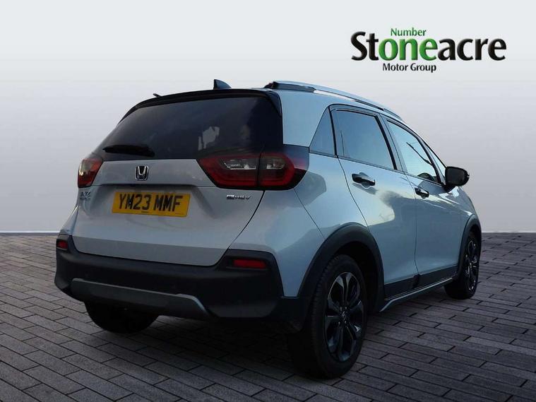 Adaptive cruise control, Adjustable speed limiter, Agile handling assist, Bluetooth hands free telephone connection, eCall emergency call system, Econ mode, Electric power steering wheel with variable gear ratio steering, Emergency stop signalling system, Forward collision warning, Front and rear parking sensors, Honda CONNECT with GARMIN Navigation + 9" touchscreen, AM/FM/DAB/Apple Carplay and android auto, Idle stop, Intelligent speed limiter, Lane departure warning system, Lane keep assist system, Low speed following, Multi-information display, Rear view camera, Road departure mitigation, Tailgate, Traffic jam assist, Traffic sign recognition, Wireless apple carplay, Vehicle stability assist, 'Shark fin' mobile antenna, 180w Power audio system with 4 speakers, 2 USB-C connectors rear, 2x USB Front socket (1 data & 1 charge), Remote audio controls on steering wheel, Aspheric door mirrors, Auto wipers, Automatic headlights with on/off timer, Coming/leaving home function, Black door mirrors, Black headlight extension, Body colour door handles, Body coloured front grille, eHEV emblem, Electric adjustable door mirrors, Electrically folding door mirrors, Exclusive styling includes front and rear bumper, front fog garnish, silver fender, side sill garnish, Front and rear electric windows, Heated door mirrors, High beam assist, LED 3rd brake light, LED daytime running lights, LED front fog lights, LED Headlights, LED rear lights, Manual headlight levelling, Privacy glass, Rear side wing doors, Rear wiper, Roof rails, Single exhaust tailpipe, 3 seat bench in 2nd row, 60/40 split rear bench seat, Cargo net hooks, Climate control air conditioning, Driver and front passenger seat armrests, Driver and passenger front seat pockets, Driver's seat height adjustment, Fabric/Water repellent upholstery, Front accessory power socket, Front head restraints, Front map lights, Front/rear courtesy lights, Heated front seats, Heated steering wheel, Isofix points, Leather gearshift knob, Leather steering wheel, Magic seat flexibility system, Plating interior door handles, Rear head restraints, Single front passenger seat, Sunvisors with vanity mirrors, Tilt/telescopic adjustable steering wheel, Tonneau cover, Trunk light, Vanity mirror illumination, 3x3 point rear seatbelts, Anti-lock braking system (ABS), Brake assist function, Brake hold function, Child locks on rear doors, Collision mitigation braking system, Deflation warning system, Driver knee airbag, Driver SRS airbag (single stage inflation), Driver/Front Passenger airbags, Electronic parking brake with auto hold, Front and rear seat belt with emergency locking retractor, Front and rear side curtain airbag, Front centre airbag, Front side airbags, Hill start assist, Passenger SRS airbag cut-off device, Rear side airbags, Whiplash lessening front headrests, Honda super locks, Immobiliser, Mirrors and windows key fob operation, Remote central locking with 2 remote folding keys, Security alarm, Smart entry + Smart start, Soft pad leather interior panels, 16" 3D chrome H centre cap alloy wheels, Tyre repair kit,
