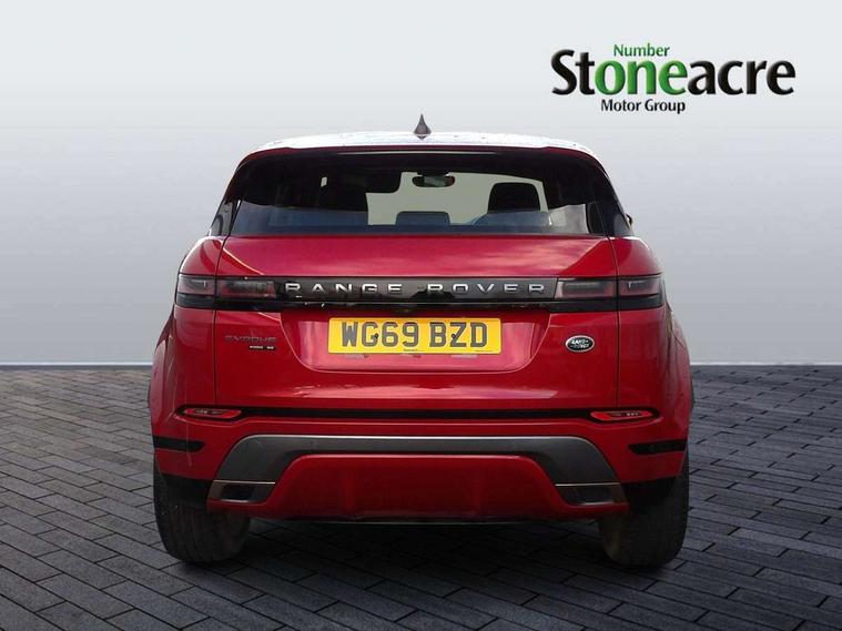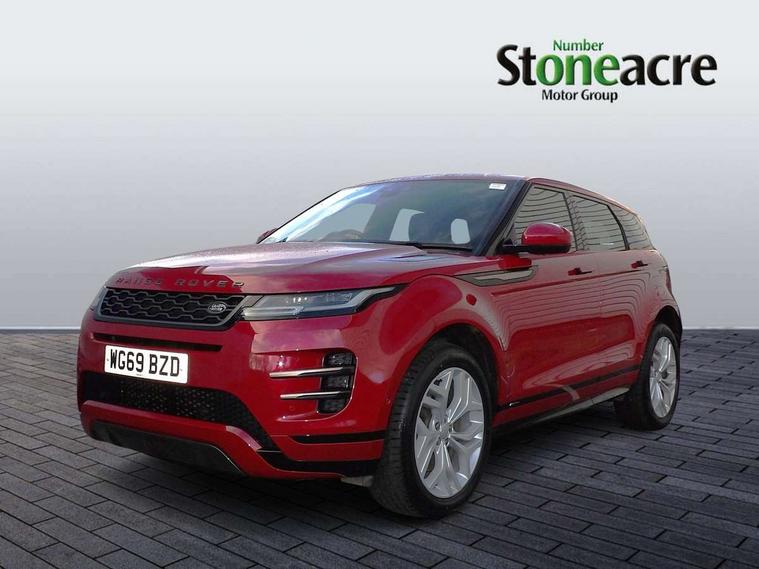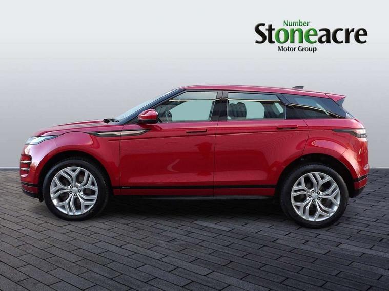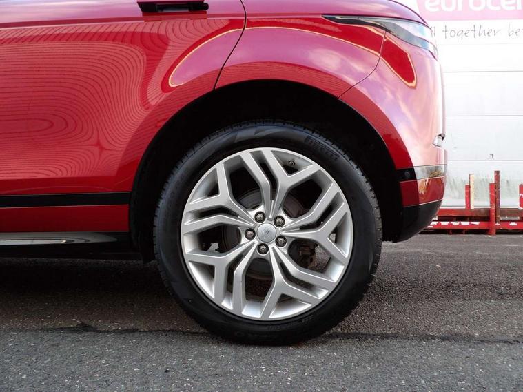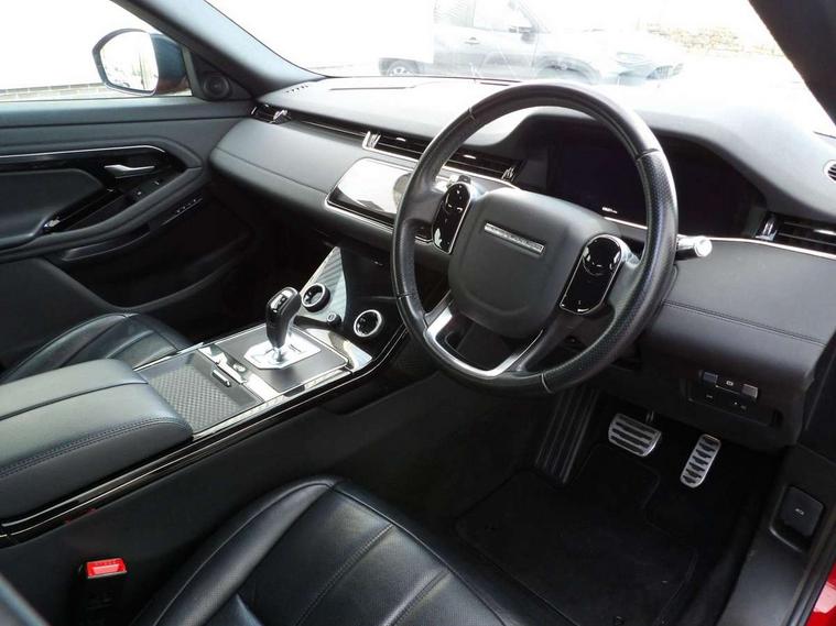 360 degree parking aid, Android Auto, Apple car play, Bluetooth connectivity, Brake pad wear indicator warning light, Clear exit monitor, Driver condition monitor, Duo touch pro, Electronic power assisted steering (EPAS), InControl remote, Interactive Driver display instrument cluster, Land Rover InControl apps, Lane keep assist, Navigation pro system, Park assist - Parallel, perpendicular and parking exit, Pro services and wifi hotspot, Push button starter, Rear traffic monitor, Smart settings, Traffic sign recognition with adaptive speed limiter, Voice control system, All terrain progress control, Efficient Driveline, Large fuel tank, Passive suspension, Terrain Response 2 Auto, Digital Audio Broadcast radio-DAB, Steering wheel mounted controls, Automatic headlight levelling, Electric windows with one touch open/close and anti trap, Evoque and R-Dynamic badge, Flush deployable exterior door handles, Heated rear window with timer, Heated washer jets, Heated windscreen, Power fold, auto-dimming, heated door mirrors with memory and approach lights, Rain sensing windscreen wipers, Rear fog lights, Shadow atlas bonnet and tailgate script, Tailgate spoiler, 40:20:40 split folding rear seats, Black gearshift paddles, Bright metal pedals, Isofix system on outer rear seats, Overhead lighting console, Overhead stowage for sunglasses, Passive front head restraints, Rear air vents, Rear centre headrest, Sunvisors with illuminated vanity mirrors, Twin front cupholders with cover, Twin sliding front centre armrest, 3 rear 3 point seatbelts, Anti-lock braking system (ABS), Customer configurable autolock, DSC - Dynamic Stability Control, Electronic brake force distribution, Electronic parking brake, Electronic traction control, Front and rear seatbelt reminder, Hill descent control, Hill launch assist, Low traction launch, Power operated child locks, Roll stability control, Six airbags - Driver and passenger airbags/driver knee airbag/front side airbag and curtain airbags, Torque vectoring brake, Tyre pressure monitoring system, Alarm, Immobiliser, Intrusion sensor, Locking wheel nuts,
