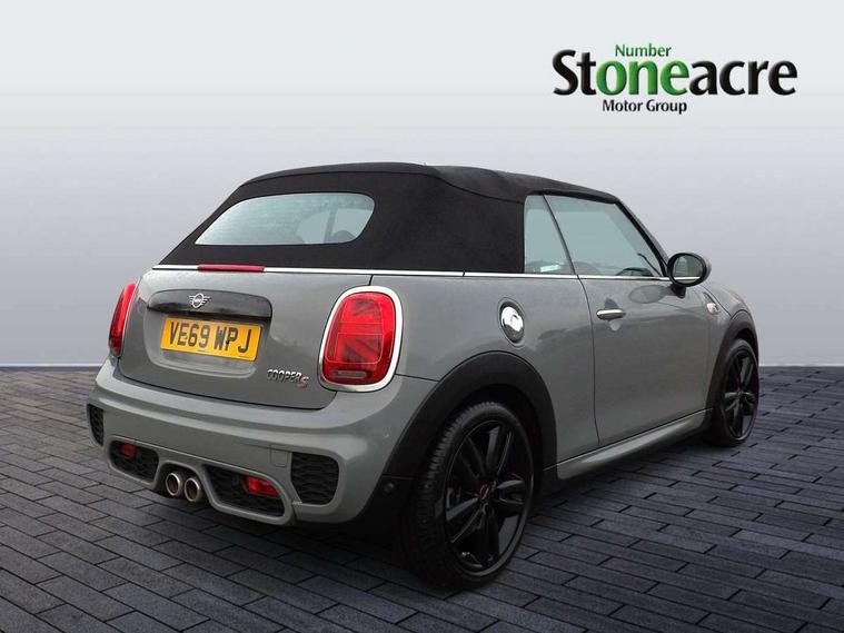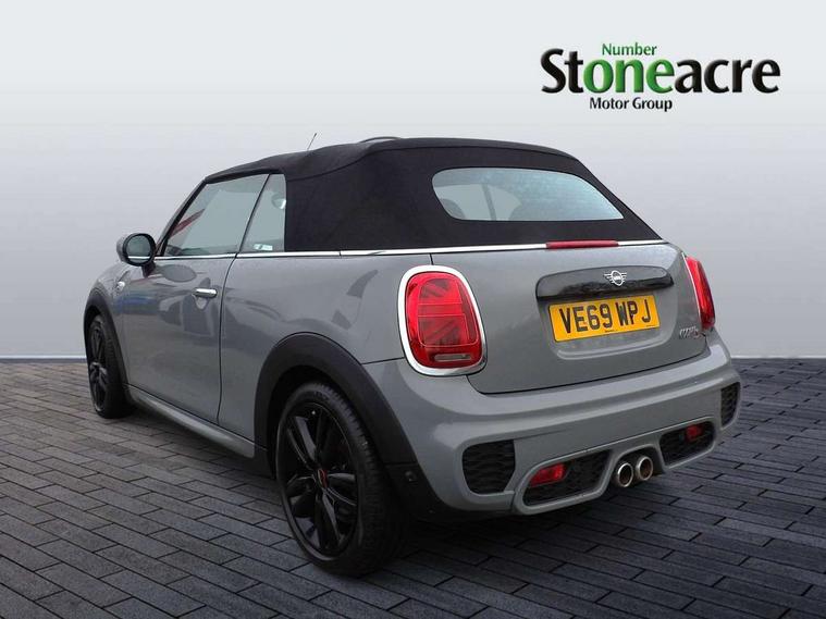Automatic start/stop function with brake energy recuperation, Compatible mobile phone bluetooth with audio streaming, Electro-mechanical speed dependant steering assistance, Gear change indicator, Instrument cluster, Mini E-call, MINI TeleServices, On board computer, Rear park distance control, Service interval indicator, Double Vanos system, Fully variable valve control, High precision injection, Performance Control, 6.5" touchscreen with LED ring, FM tuner and DAB digital radio, Automatic headlight activation switch, Bonnet scoop, Chrome border honeycomb structure radiator grille with S badge, Chrome plated fuel cap, Dynamic brake lights, Electric windows, Fully electric black softtop with integrated sunroof functionality, Heated rear window, Heated windscreen washer jets, John Cooper Works - aerodynamic kit (front and rear apron, spoiler), front and rear sport bumpers and part-painted side sills with door sill finishers, LED headlight with closed ring and daytime driving lights, Metal door sill strips with Cooper S imprint, Model logo Cooper S on right of tailgate, Rain sensor window wipers, Rear fog lights, Rear LED lights with union jack design, Side scuttle panel with integrated indicator, Sun/heat protection glass, Two central exhaust tailpipes with chrome finisher, White indicator lenses, 12V Accessory socket in centre console, 4 lashing eyes in luggage compartment, 50/50 split folding rear seats, Chrome interior highlights, Cupholders, Easy Load boot handles, Front and rear isofix with front passenger airbag deactivation, Front seatback storage pockets, Glove compartment, Height and length steering column adjustment, Interior lighting with 12 basic colours selectable via toggle switch in roof, John Cooper Works perforated leather steering wheel with contrast stitching in chilli red and John Cooper Works logo, Leather gearshift lever and handbrake gaiters, Leatherette integrated headrest, adjustable thigh support with john cooper works logo, LED reading lights, vanity mirror lights, front foot well light and spotlight on front seats, Manual air conditioning, Mechanical seat adjustment, driver seat height adjust, forward/back and front seats backrest, Mini logo projection on floor from drivers exterior mirror, Multifunction steering wheel, Rear head restraints, Storage compartments in doors, Sunvisors with vanity mirrors, 3 point seatbelts on all four seats, 6 Airbags - front, side and seat belt tensioners, Active rollover protection, Anti-lock braking system (ABS), DSC - Dynamic Stability Control, Front and rear disc brakes, Hill start assist, Two tone horn, Tyre pressure monitoring system, Alarm system with tilt sensor, monitoring doors, bonnet interior and tailgate, Electronic vehicle immobiliser, Keyless Go, Tool kit,