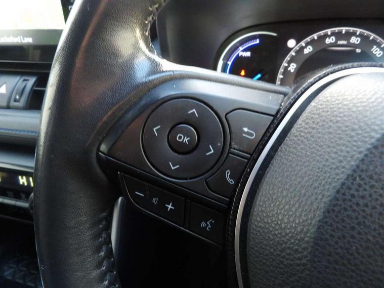 7" colour TFT display, Adaptive cruise control with lane trace assist, Adjustable speed limiter, Apple car play and Android auto, Blind spot monitoring with rear cross traffic alert, Bluetooth system, Cyclist Detection, Drive mode selector, eCall emergency call system, ECO-driving indicator, Electric power steering, EV audible alert, Hybrid system indicator, Lane departure warning system, Lights on warning, Night Time Pedestrian Detection, Pedestrial detection, Power boot opening and closing, Rear parking camera, Rear parking sensors, Remote boot door release in cabin, Tachometer, Touch 2 Go navigation system including 3D maps and voice control, Traffic sign recognition, Trip computer, Voice control system, Vehicle Stability Control (VSC), 6 speakers, 8" Multimedia display touch screen, Auxiliary socket for external MP3 player, DAB audio, Steering wheel mounted audio controls, Toyota touch media system, USB connection, Auto dimming interior mirror, Auto high beam, Automatic headlamp levelling, Automatic headlights, Automatically retractable door mirrors, Bi-tone black roof, Black door mirrors, Black rear spoiler, Black roof rails, Black Shark-fin antenna, Body colour door handles, Body coloured bumpers, Door mirror puddle lights, Electric adjustable door mirrors, Emergency brake-light signal (EBS), Follow me home headlights, Front fog lights, Gloss black front bumper insert, Gloss black rear bumper insert, Headlight cleaners, Heated door mirrors, LED daytime running lights, LED High mounted stop lamp, LED rear lights, Meshed upper front grille, Power front windows, Power rear windows, Privacy glass, Projector LED headlights, Rear screen wiper - intermittent, Rear windscreen defogger, Silver front under-run, Silver rear under-run, Trailer Sway Control, Turning signal integrated indicators in door mirrors, 3 rear headrests, 60/40 split fold rear seat back, Black roof lining, Boot light, Clean air filter, Driver and front passenger personal light, Driver and front passenger Whiplash Injury Lessening seats, Driver and passenger sunvisors with illuminated vanity mirrors, Dual sided deck board in boot, Dual zone automatic air conditioning, Floor mats, Folding rear centre armrest, Front and rear bottle holders, Front centre armrest, Front footwell lights, Front headrests, Front seat and rear pockets, Front sport seats, Front/rear roof mounted assist grips, Heated driver and front passenger seats, Isofix child seat preparation, Leather gear shift with chrome surround, Light blue ambient lighting on front cupholders and open tray, Manual telescopic and tilt 3-spoke leather steering wheel with Chrome insert, Manually reclining and sliding front passenger seat, Pollen filter, Power height-adjustable sliding reclining and lumbar support for driver seat, Rear coat hooks, Rear door armrests, Rear passenger air vents, Reclining rear seats, Satin chrome interior door handles, Sunglasses holder, Synthetic leather upholstery, 3x3 point rear seatbelts, ABS/EBD, Adjustable front driver and passenger seat belt extender, Brake assist function, Child proof door locks, Collision mitigation braking system, Driver/Front Passenger airbags, Driver/front passenger side airbags, Drivers knee airbag, Electronic parking brake, Electronic Stability Programme (ESP), Emergency brake light system (EBS), Front and rear curtain airbags, Front and rear seatbelt reminder, Hill start assist, Passenger airbag cut-off device, Seatbelt pretensioners with load limiters, Traction control, Tyre pressure warning, Alarm/immobiliser, Glass-breaking alarm sensors, Light - on and Key in reminder, Remote central locking, Smart entry + Smart start, Speed sensitive auto door locking, Tilt detection sensors, Piano black centre console with silver insert, Soft-touch black lower dashboard, Soft-touch black upper dashboard with silver insert, Full size spare wheel,