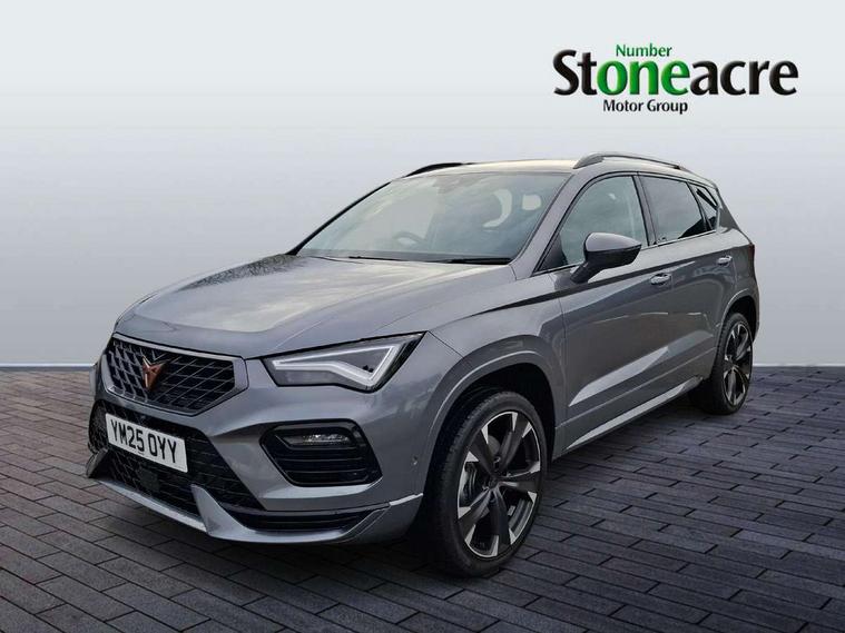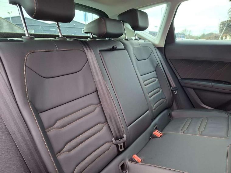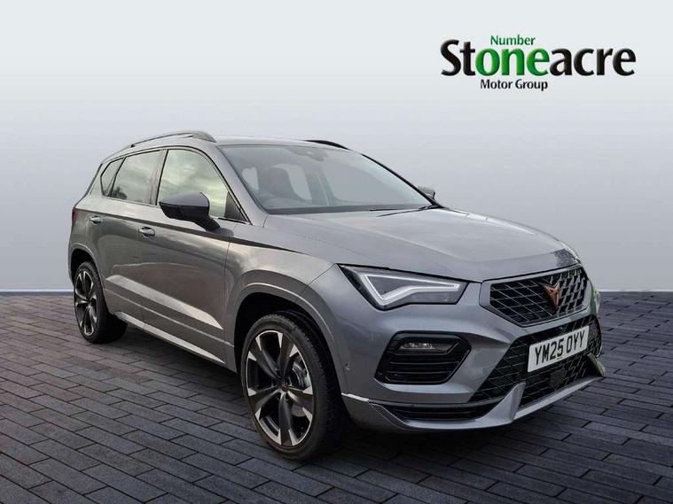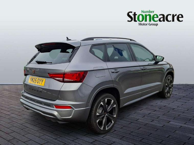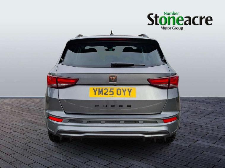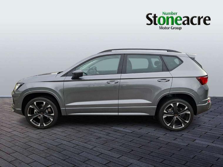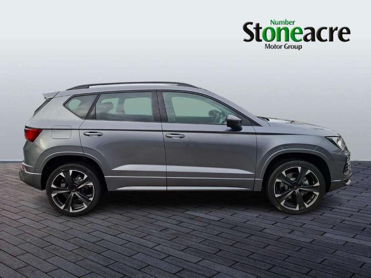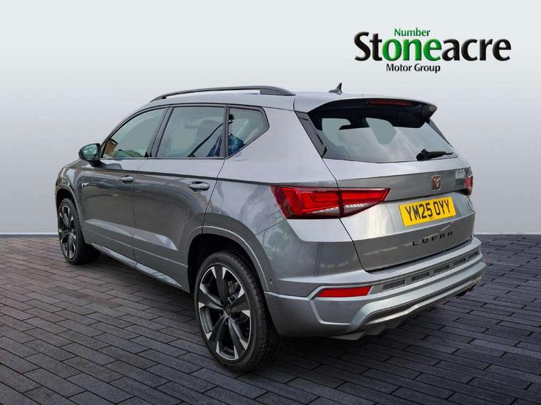 Cruise control system with speed limiter, Digital cockpit, Driving profile selection and conventional shock absorber, E-call, Electric tailgate with virtual pedal, Outside temperature gauge, Progressive power assisted steering, Rear view camera, Self parking functionality (includes front and rear parking sensors), Trip computer, wired and wireless full link smartphone integration, Wireless phone charger, Front and rear shock absorption, chassis with increased ride height, Steering wheel mounted audio/phone controls, Body colour bumpers with dark aluminium diffusor, Body coloured wheel arch surrounds, Dark tinted rear windows, Daytime running lights, Door mirrors with welcome CUPRA light silhouette, Dynamic headlight range control with self adjusting whilst driving, Electric adjustable/heated/folding door mirrors, Front and rear electric windows, Front grille frame in chrome, Full LED headlamps with lens and LED front fog lamps with cornering function, Gloss black door mirrors, Gloss black roof rails, Gloss black side mouldings, Gloss black side window trim, Illuminated aluminium front door sill, LED rear tail lights with dynamic indicators, Rear fog lights, Rear side wing doors, Rear spoiler, Rear wash/wipe, Specific CUPRA design front bumper, Standard rear exhaust tailpipes, Third brake light, 12V socket in front, 3 seat bench in 2nd row, 60/40 split folding rear seat, Aluminium pedals, Cupra steering wheel emblem, Dual zone climate control, Electric driver seat with memory function, Front and rear head restraints, Front centre armrest, Front seat back storage pockets, Grey roof lining, Heated front seats, Heated steering wheel, Height adjustable driver and passenger seat with lumbar adjustment, ISOFIX points in outer rear seats with top tether anchorage points, Leather sport bucket seats, Leather steering wheel and gear knob, Multicoloured ambient lighting with LED interior illumination, Pedal cluster, Rear armrest and easy back seat release mechanism from boot, Single front passenger seat, Sports steering wheel, Steering wheel mounted gearshift paddles, Storage compartment in roof console for sunglass, Storage compartment under driver's seat, Convenience pack - Ateca, Interior lighting pack - Ateca, Navigation system plus pack with DAB - Ateca, Safety and driving pack - Ateca, 3x3 point rear seatbelts, ABS, Traction control system (TCS), Electronic stability control (ESC) and Electronic differential lock system (XDS), Airbags - Driver and front passenger airbag with deactivation, front side, two curtain and driver's knee airbags, Black brake callipers with CUPRA logo, Electric parking brake with auto hold function, Front and rear seatbelt reminder, Front assist with autonomous emergency braking, Hill hold control, Manual rear child locks, Single tone horn, Tiredness recognition system, Tyre pressure monitoring system, Alarm, Keyless entry, Locking wheel bolts, 19" Sport machined alloy wheels 36/3 in black/silver,