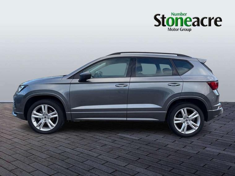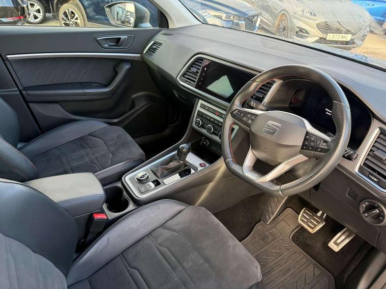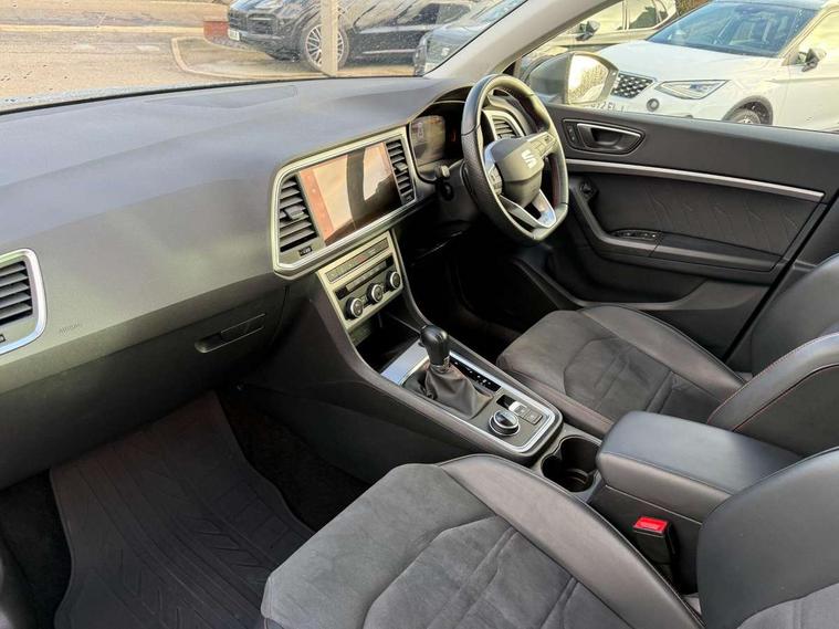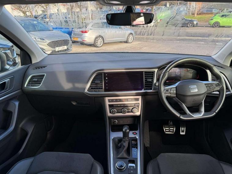 8" Digital cockpit, Colour multi-function on board computer display, Cruise control system with speed limiter, E-call, Outside temperature gauge, Progressive power assisted steering, SEAT drive profile with driving experience button - Normal, Sport, Eco and Individual mode, gearshift, steering and throttle response, Self parking functionality (includes front and rear parking sensors), Start/stop system, Tailgate, Trip computer, Wireless full link smartphone integration, Wireless phone charger, Steering wheel mounted audio/phone controls, Body colour bumpers, Body coloured wheel arch surrounds, Chrome front grille frame, Chrome roof rails, Chrome side window trim, Dark tinted rear windows, Daytime running lights, Door mirrors with welcome light silhouette, Dynamic headlight range control with self adjusting whilst driving, Electric adjustable/heated/folding door mirrors, Front and rear electric windows, Full LED headlamps with lens and LED front fog lamps with cornering function, Illuminated aluminium front door sill, LED rear tail lights with dynamic indicators, Rear fog lights, Rear side wing doors, Rear wash/wipe, Simulated exhaust pipes in chrome frame, Variable front intermittent wipers, 12V socket in front, 3 seat bench in 2nd row, 60/40 split folding rear seat, Aluminium pedals, Drawer under right front seat, Dual zone climate control, Front and rear head restraints, Front centre armrest, Front seat back storage pockets, Height adjustable driver and passenger seat with lumbar adjustment, ISOFIX points in outer rear seats with top tether anchorage points, Leather steering wheel and gear knob, Microsuede upholstery with front comfort seats, Rear armrest and easy back seat release mechanism from boot, Single front passenger seat, Steering wheel mounted gearshift paddles, Convenience pack - Ateca, Interior lighting pack - Ateca, Navigation system pack with DAB - Ateca, 3x3 point rear seatbelts, ABS, Traction control system (TCS), Electronic stability control (ESC) and Electronic differential lock system (XDS), Airbags - Driver and front passenger airbag with deactivation, front side, two curtain and driver's knee airbags, Electric parking brake with auto hold function, Front and rear seatbelt reminder, Front assist with autonomous emergency braking, Hill hold control, Manual rear child locks, Single tone horn, Tiredness recognition system, Traction control, Tyre pressure monitoring system, Alarm, Keyless entry, Locking wheel bolts, Remote central locking, Chrome interior detailing, 18" Brillaint silver alloy wheels,
