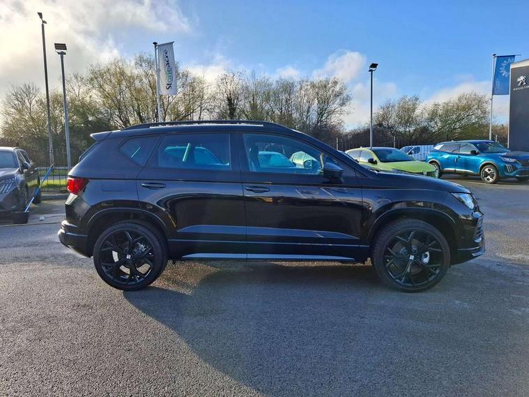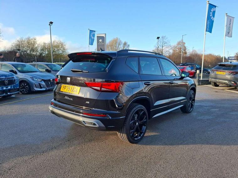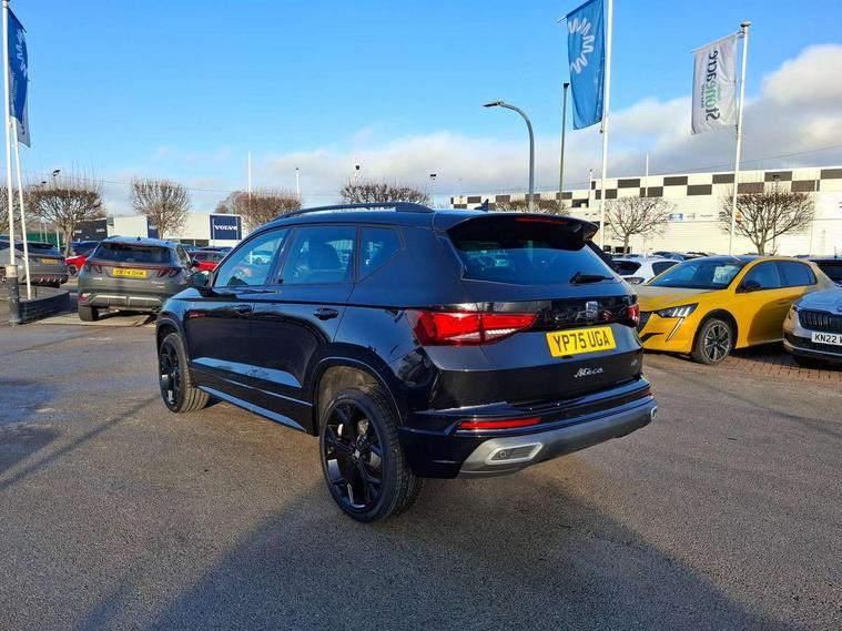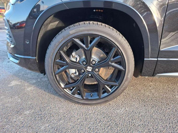 10" Digital cockpit, Bluetooth audio streaming with handsfree system, E-call, Electric tailgate with virtual pedal, Outside temperature gauge, Progressive power assisted steering, SEAT drive profile with driving experience button - Normal, Sport, Eco and Individual mode, gearshift, steering and throttle response, Self parking functionality (includes front and rear parking sensors), Speed limiter, Start/stop system, Top view camera with rear view camera, Trip computer, wired and wireless full link smartphone integration, Wireless phone charger, Steering wheel mounted audio/phone controls, Black roof rails, Black side window trim, Body colour bumpers, Body coloured wheel arch surrounds, Chrome front grille frame, Dark tinted rear windows, Daytime running lights, Door mirrors with welcome light silhouette, Dynamic headlight range control with self adjusting whilst driving, Electric adjustable/heated/folding door mirrors, Front and rear electric windows, Illuminated aluminium front door sill, LED 3rd brake light, LED headlamps with lens and LED front fog lamps with cornering function, LED rear tail lights with dynamic indicators, Rear exhaust tailpipe, Rear fog lights, Rear side wing doors, Rear spoiler, Rear wash/wipe, Variable front intermittent wipers, 12V socket in front, 3 seat bench in 2nd row, 60/40 split folding rear seat, Aluminium pedals, Black greenhouse interior roof, Dual zone climate control, Electric adjustable driver seat with memory function, Front and rear head restraints, Front centre armrest, Front seat back storage pockets, Heated front seats, Height adjustable passenger seats with lumbar adjustment, ISOFIX points in outer rear seats with top tether anchorage points, Leather sports steering wheel and gear knob, Leather upholstery with front comfort seats, Rear armrest and easy back seat release mechanism from boot, Single front passenger seat, Steering wheel mounted gearshift paddles, Convenience pack - Ateca, Interior lighting pack - Ateca, Navigation system pack with DAB - Ateca, Safety and driving pack (L) - Ateca, Safety and driving pack with attention and drowsiness assist - Ateca, 3x3 point rear seatbelts, ABS, Traction control system (TCS), Electronic stability control (ESC) and Electronic differential lock system (XDS), Airbags - Driver and front passenger airbag with deactivation, front side, two curtain and driver's knee airbags, Electric parking brake with auto hold function, Front and rear seatbelt reminder, Hill hold control, Manual rear child locks, Single tone horn, Tyre pressure monitoring system, Alarm, Keyless entry, Locking wheel bolts, Remote central locking, Chrome interior detailing, 19" Exclusive alloy whelels 36/10 in glossy black, Tool kit,