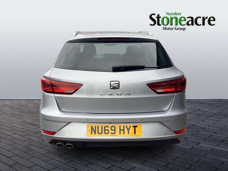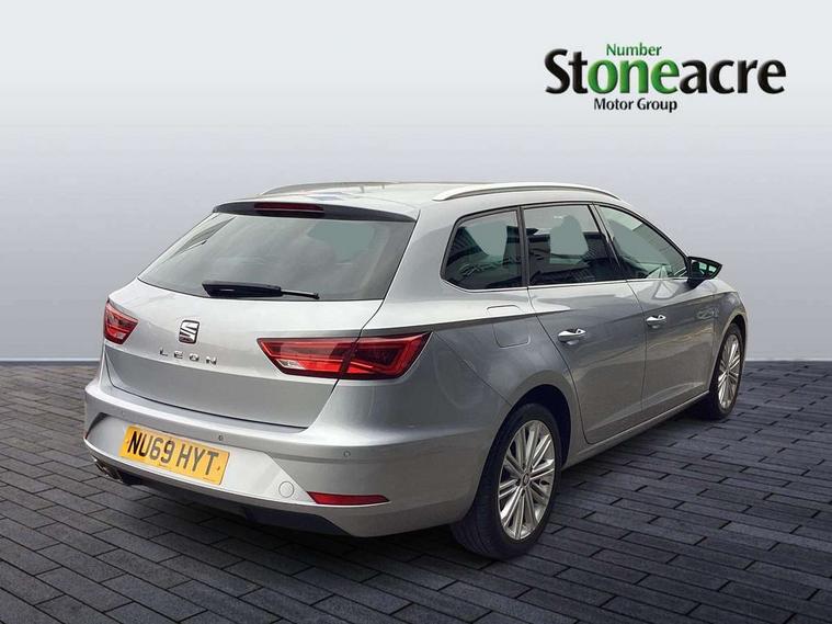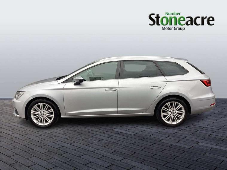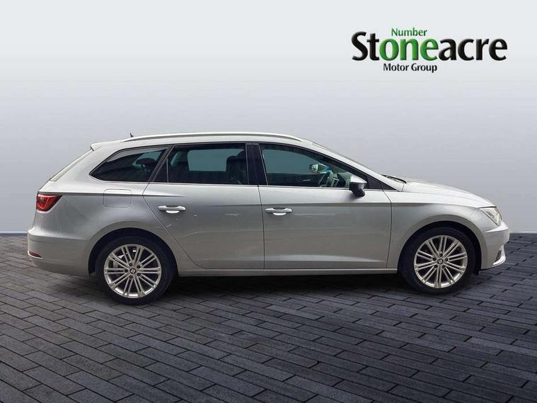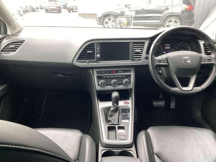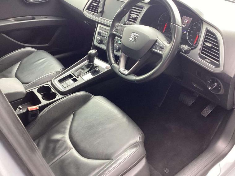'Lights On' Reminder warning buzzer, 3D map display, 8" touch screen, Bluetooth Handsfree Phone Connection, Electro-mechanical power steering, Front and rear parking sensors, Front assist with pedestrian protection, Full Link Smartphone Integration with Mirror Link, Apple Car Play, Google Android Auto, Low fuel warning light, Navigation system (incl. media system plus), Outside temperature gauge, Rear view camera, RPM counter, SEAT logo boot release, Service interval indicator, Trip computer, Voice recognition, Wireless Smartphone charger, Comfort suspension, XDS electronic differential lock, 2x SD card slot, 4 USB, 8 speakers, Auxiliary input socket, Bluetooth audio streaming, CD player, DAB Digital radio, High resolution colour driver display, Media system plus (incl. media system colour), SEAT USB media cable, Steering wheel mounted audio/phone controls, Body colour door handles, Body coloured bumpers, Body coloured exterior mirrors with integrated LED indicators, Chrome roof rails, Chrome window surround, Chromed centre radiator grille, Dark tinted rear windows, Electric front/rear windows, Electrically adjustable door mirrors, Electrically foldable exterior mirrors with parking position and passenger-side mirror with lowering function, Heated door mirrors, High gloss black finish B and C pillars, Illuminated aluminium front door sill with XCELLENCE logo, LED front fog lights, LED headlights with LED day time running lights + LED rear lights + LED number plate lights, Rear wash/wipe, Visible twin exhaust tailpipes, 12v power point in centre console, 60/40 split folding rear seat with armrest, Active front headrests and 3 rear headrests, Additional heating and ventilation outlet in rear of centre console, Boot storage net, Cargo rings in boot, Double boot floor, Driver and passenger seat height adjust, Driver seat lumbar adjustment, Dual zone climate control, Dust/pollen filter, Front adjustable head restraints, Front armrest with storage box, Front cupholders x 2, Front seatback storage pockets, Front sport seats in leather, Front/rear floor mats, Gear shift indicator, Height/reach adjust steering wheel, High centre console with integrated box & cup holder, rear air outlet, with armrest in front seats, Illuminated door sills, Instrument lighting with brightness control, Leather steering wheel with XCELLENCE logo, Luggage compartment cover, Luggage tie-down hooks, Multi-colour ambient interior lighting, Passenger seat lumbar adjust, Rear top tether child seat ISOFIX attachment, Storage box under drivers and passenger seat, Winter pack - Leon, 3 point seatbelts on all rear seats, 7 airbags - 2 front, 2 front side, 2 curtain, 1 knee, ABS + TCS, Child proof door locks, Electric handbrake, Electronic parking brake with auto hold, ESC with tyre pressure warning indicator, ESP+EBA, Front seatbelt pretensioners, Front seatbelt reminder, Hill hold control, Multi-Collision braking, Passenger airbag deactivation system, 2 folding remote keys with window open/close function and boot opening/door mirror folding function, Central locking fuel filler cap, Engine immobiliser, Keyless entry and go, Locking wheel bolts, Remote central locking + deadlocks, Volumetric alarm with back up horn, Chrome interior detailing, 17" Dynamic alloy wheels 30/1,