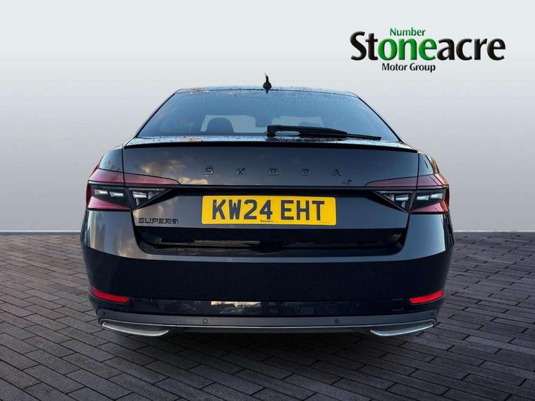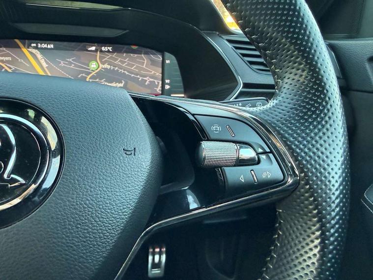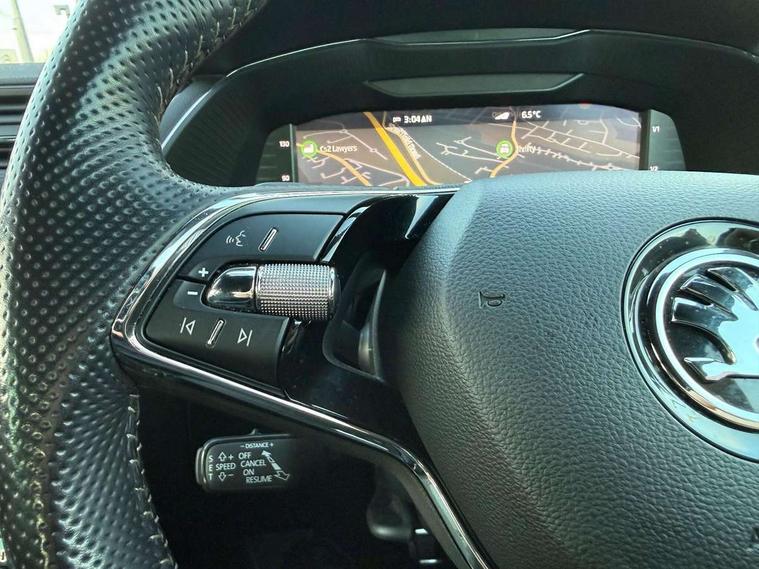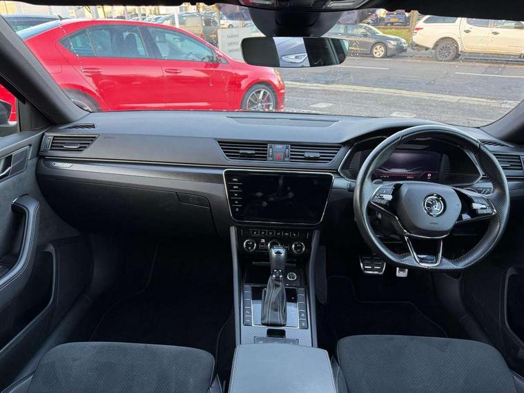 Bluetooth system, CareConnect and Emergency Call, Columbus HDD satellite 3D map navigation with 9.2" colour touch screen, web radio, integrated Wi-Fi, Driver fatigue sensor, Front assist with pedestrian protection, Progressive dynamic steering, Stop/start engine system and energy recovery, Virtual cockpit, Voice control system, Wireless smartlink apple carplay, SmartLink+ android auto, XDS+, 2 USB ports, Bolero radio with 8" touchscreen display, DAB Digital radio, 3rd brake light, Aero front windscreen wipers with intermittent function, Auto dimming rear view mirror, Black rear badge, Body colour door handles, Cornering front fog lights, Electrically adjustable heated and folding door mirrors with memory function, Front and rear electric windows, Full matrix LED headlights with AFS LED DRL integrated with headlight washer LED rear lights(High function), dynamic indicators and lighting animation, Gloss black exterior door mirrors with sports styling including front grill, side strip and window surrounds, Gloss black grille surround with gloss black rib elements, Gloss black rear spoiler (roof), Gloss black strip between rear lights, Light assistant (coming/leaving home/tunnel light), Privacy glass, Rain sensor, Rear exhaust diffuser styling elements, Rear side wing doors, Sportline badging, 12v power point in centre console, 3 seat bench in 2nd row, Black roof headlining, Black textile floor mats, Carbon optic interior elements, Electric auxiliary air heater, Front and rear footwell illumination, Front armrest with storage box, Height adjustable front and rear head restraints, Ice scraper, Illuminated and cooled glovebox, Interior lights with control switches, Isofix child seat fittings on outer rear seats, LED front and rear reading lights, Microsuede/leather upholstery with silver diamond stitching sports seats, One umbrella compartments in driver door with one umbrella in drivers door, Overhead glasses storage compartment, Rear centre armrest with cupholders, Removable parcel shelf, Single front passenger seat, Split folding rear seats, Storage compartment with cover in luggage compartment side panels, Ticket holder on A Pillar, LED package plus - Superb, 3 rear seatbelts, 7 airbags - Front, front side, curtain, driver's knee airbag with front passenger deactivation switch, Driver and passenger seatbelts with warning light, Electronic parking brake, ESC including ABS, EBV, MSR, ASR, EDS, HBA, DSR, RBS, CBC, multi-collision brake (MKB) and Auto hold, Hill start assist, Power operated child lock in rear doors, Tyre pressure monitor, Alarm with interior monitoring tilt sensor and back up horn, Electronic engine immobiliser, Keyless entry and start/stop, Remote central locking with SAFE system, Third remote key,
