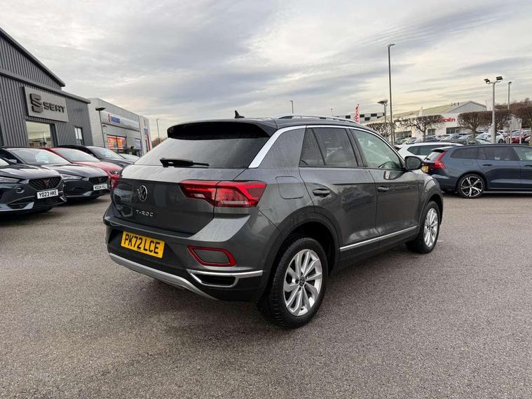 10.25" Digital cockpit pro, Bluetooth mobile phone interface, Driver alert system with fatigue detection, Driver tips and journey analysis, Emergency call service, Lane keeping system Lane Assist, Modified key software - reduce switch off time for key status change to Long no motion, Online services, Park assist including front and rear parking sensors, Service interval indicator, Tailgate/trunk lid release from outside, Think blue trainer driver tips and journey analysis, Warning sound and light for front seatbelts unfastened, Wireless app connect, Battery regeneration during braking, Start/stop function with battery regeneration, Diversity antenna for FM reception, Front and rear 6 speakers, Music playback - MP3, WMA and AAC files, Premium USB cable in choice of either Apple or Android smartphone compatibility, SD card slot, Simultaneous pairing of 2 compatible mobile devices, Title and cover art display, We Connect and We Connect Plus functionality, 3rd brake light, Auto dimming interior rear view mirror, Automatic hazard lights activation under emergency braking, Automatic headlight control with LED separate daytime running lights with coming/leaving home function, Body colour sports bumpers with silver metallic underbody fascia, Dynamic headlight range control with self adjusting whilst driving, Extended roof spoiler, Exterior mirrors aspherical on driver side, convex on front passenger side, External USB type C socket and charging sockets, Front windscreen wiper with intermittent wipe and 4 position delay, Heated rear window, LED Plus headlamps, LED rear combination lamps, LED rear number plate lights, LED tail lamp rear comination lamps, Light mode for poor weather, rain, fog or snow, Power windows with comfort operation and circuit breaker, Rain sensor, Rear exhaust tailpipe, Rear fog light on one side and reversing lights on both sides, Rear side wing doors, Rear wash/wipe with intermittent wipe setting, Remote electrically foldable door mirrors, puddle lights and reverse activated passenger's door mirror, 12V power socket in centre console, 3 rear head restraints, 3 seat bench in 2nd row, 4 load lashing points in luggage compartment, Air care climatronic air conditoning system with active combination filter and 2-zone temperature control, Chrome plated radiator grille inserts, air vent surrounds and light switch surrounds, Door and side trim panel with leatherette insert, Drawer under drivers seat, Front + rear carpet mats, Front centre armrest, Front comfort sports seats, Front cupholders x 2, Front footwell illumination, Instrument lighting, white adjustable panel illumination, Interior ambient lighting and surround lighting, Interior light delay, Isofix child seat preparation, Leather gearshift handle, LED interior light with switch off delay/dimmer and 2 front/rear LED reading lights, Load-through provision with cup holder when folded down ('Unsplit rear seat bench, split folding backrest, with centre armrest), Luggage compartment lighting, Non-folding front passenger seat backrest, Single front passenger seat, Storage compartment in left and right luggage area, Storage compartment in rear doors, Storage compartments in driver and front passenger doors, Sunvisors with illuminated vanity mirrors, Variable boot floor, height adjustable and removable, Driver assistance pack without proactive passenger protection - T-Roc, 3 point height adj front seatbelts + pretensioners, 3 point seatbelts in outer rear with ECE label, ABS, Child locks on rear doors, Driver and front passenger airbag with front passenger airbag deactivation, Driver and front passenger safety-optimised head restraints, Drivers seatbelt reminder, Electronic parking brake, Electronic Stability Control (ESC) inc EDL (Electronic Differential Lock) and ASR (Traction Control), Front and rear passengers curtain airbag system including front side airbags, Front assist with city emergency braking and pedestrian monitoring, Front seat side impact airbags, Predictive pedestrian protection, Rear disc brakes, Single tone horn, Tyre pressure loss indicator, Volkswagen roadside assistance, Alarm with interior protection, Anti-theft alarm system with interior monitoring, backup horn, and towing protection, Remote central locking with SAFELOCK, radio remote control with 2 remote control folding keys, Trims for alloy wheels,