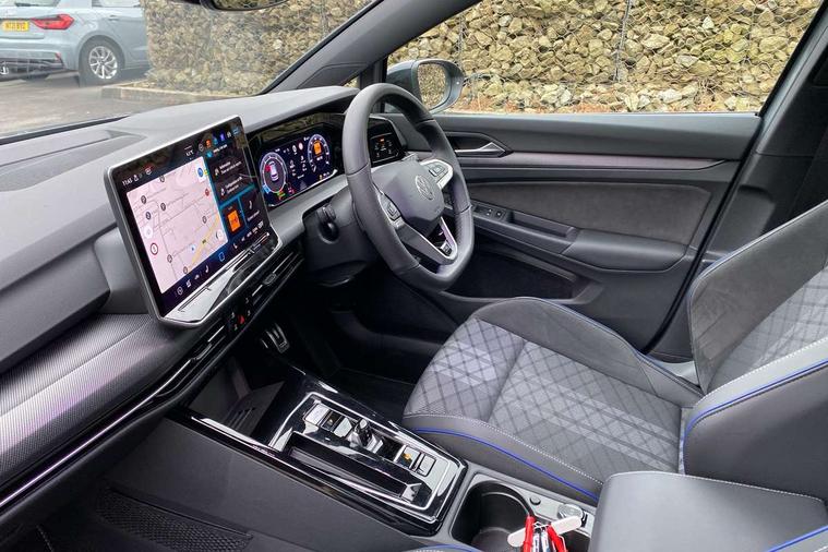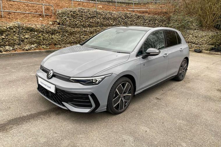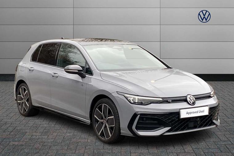 Activated carbon canister, Adaptive cruise control (ACC), Advanced driver attention and drowsiness monitor, Dynamic road sign display, Dynamic steering, E-Sim card for online connectivity, eCall emergency call system, Multi-color Digital cockpit pro, selection of different info profile possible, Multifunction front facing camera for distance control, Navigation system, Oncoming vehicle braking when turning including swerve support, Speed limiter, Speedo, rev counter, electronic odometer, trip, service interval display, exterior temperature and fuel gauge, Traffic jam assist, Voice enhancer and voice control, Warning signal and warning light for front and rear seatbelts not fastened, We connect plus preparation, We connect preparation, Wireless app connect, Hybrid propulsion system, Petrol Particulate Filter, Start-stop system with battery regeneration (recuperation - energy recovery during braking), XDS electronic differential lock for improved traction and handling, 2 USB C ports in front, 2 USB charging sockets on the centre console in the rear charging capacity upto 45W, Digital radio reception (DAB), Diversity antenna for FM reception, Gaming platform via car app, Infotainment system with 12.9" display, Mobile phone interface with inductive charging feature, 3rd brake light, Auto dimming rear view mirror, Automatic headlamp activation with Coming home and Leaving home feature, Body colored bumpers in R-Line style, Body colour door handles, Exterior ambient lighting, Exterior mirrors convex on the left and aspherical on the right, Front and rear electric windows, Heat insulating windshield made of laminated glass, LED separate daytime running light, Rain sensor, Rear exhaust tailpipe, Rear fog light on one side and reversing lights on both sides, Rear side wing doors, Rear windscreen washer and wiper with interval delay, Remote electrically foldable door mirrors, puddle lights and reverse activated passenger's door mirror, Volkswagen logo in front, illuminated lighting animation with wake up/goodbye scenario and illuminated door handles, Welcome light with surround lighting, 12V socket in front centre console, 12V socket in luggage compartment, 3 rear head restraints, 3 seat bench in 2nd row, Ambient lighting with 30 colour including LED light unit in front footwell with selectable light colour, Black roof lining, Brushed stainless steel pedals, Chrome plated radiator grille inserts, air vent surrounds and light switch surrounds, Door insert, side trim panel and arm support in leatherette, Front + rear black carpet mats, Front centre armrest, Front seat lumbar support adjuster, Integrated front head restraints, ISOFIX anchors for child seats on outer rear bench seats and on front passanger seat compatible for i-Size, Luggage compartment lighting, Manual height adjustable front passenger seat, Manually height adjustable driver seat, Plastic gear knob, Premium sports seats in front, Rear cupholder and loadthough, Sardegna cloth upholstery with front and outer rear seats Art Velour inner sides of bolsters, Single front passenger seat, Split folding backrest with centre armrest and unsplit rear seat bench, Sun visors with illuminated vanity mirrors, Titanium black instrument panel, Black exterior Styling package with Matrix LED headlights - Golf, Winter package - Golf DSG Estate/Hatchback, 3 point height adj front seatbelts + pretensioners, 3 rear three point seatbelts, ABS, Autonomous emergency braking front assist with pedestrian and cyclist monitoring, Child locks on rear doors, Driver and front passenger airbag with front passenger airbag deactivation, Electronic parking brake with auto hold, ESC (Electronic Stability Control), Extended pedestrian protection measures, Hill start assist, Rear disc brakes, Two tone horn, Tyre pressure loss indicator, Volkswagen roadside assistance, Anti theft wheel bolts, Preparation for alcohol interlock, Decorative inserts carbon grey for dashboard and front door trim panels, 18" Leeds alloy wheels, Tool kit for tyre mobility set, Tyre mobility kit Includes 12V compressor and tyre sealant,