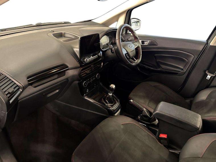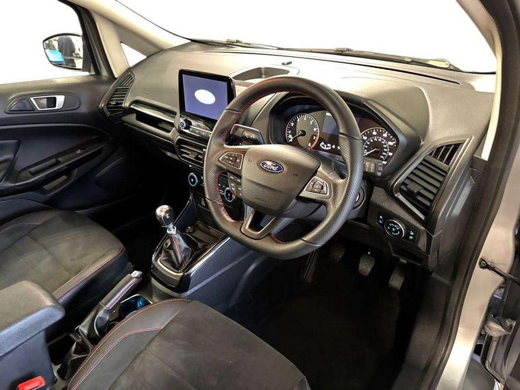 Cruise control, e-Call (emergency call), Easy fuel capless refuelling system, Ford SYNC 3 nav system with DAB radio, 8" screen, emergency assistance, Apple car play/Android auto, 2x USB, 6 speakers, Ford pass connect, Intelligent speed limiter, PAS, Rear parking sensors, Rear view camera, Traffic sign recognition, Trip computer, Sports suspension, Steering wheel mounted audio controls, Auto dimming rear view mirror, Automatic front wipers, Automatic headlights, Black roof rails, Body colour door handles, Body coloured bumpers, Chrome lower window surround, Electrically adjustable and heated door mirrors, Front fog lights, Front grille bars and surround in black, Headlight levelling control, Large rear roof spoiler, LED day running lights, LED third brake light, Power front and rear windows, Puddle lights, Quick-clear heated windscreen, Rear side wing doors, Rear wiper, ST Line body styling kit - Black headlamp bezel, front and rear sport bumpers, body colour lower door claddings, 12V socket in front and rear, 3 seat bench in 2nd row, 60/40 split rear seats, Ambient lighting, Centre console with sliding front armrest, Cooled glovebox, Courtesy lights with map reading light, Driver seat height/lumbar adjust, Driver's side glovebox, Driver/passenger sunvisors and lidded vanity mirrors, EATC - Electronic Auto Temperature control, Folding grab handles, Front head restraints, Front seat back map pockets, Illuminated glovebox, Illuminated luggage compartment, Isofix system on outer rear seats, Luggage compartment carpet, Neosuede/Partial sensico leather upholstery, Overhead console with sunglasses holder, Rake adjustable rear seats, Reach + rake adjustable steering column, Rear headrests, Sensico trimmed steering wheel, handbrake and gearshift gaiter with red stitching, Single front passenger seat, ST-Line Front floor mats with red stitching, Stainless steel sports pedals, Storage drawers under front seats, Tie down hooks, Variable boot floor, 3x3 point rear seatbelts, ABS, Autonomous emergency braking, Child locks on rear doors, Curtain airbags, Driver airbag, Drivers knee airbag, Electronic Stability Programme with hill launch assist, Front passenger airbag deactivation, Front side airbags, Passenger airbag, Pre collision assist system with AEB, Seatbelt reminder for driver and front passenger, Traction control, Tyre pressure monitoring system, Immobiliser, MyKey system, Remote central locking, Thatcham 1 volume sensing alarm, Low rolling resistance tyres, Tyre inflation kit,