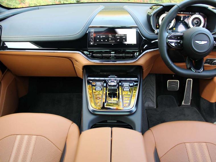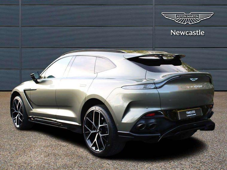 10.25" TFT centre display, 12.3" TFT instrument display, Adaptive cruise control, Apple car play/Android Auto, Aston martin satin chrome designer key, Blind spot monitoring, Bluetooth telephone connectivity, Brake pad wear indicator, Drive modes Terrain, Individual, GT, Sport, Sport + including launch control, eCall emergency call system, Electric power assisted steering (EPAS), Forward collision warning, Front parking aid with visual indicator, Inductive phone charger, Infotainment touchpad and dial, Lane change warning, Lane departure warning system (LDW), Lane keep assist, Outside temperature display, Park assist system, Rear crossing traffic warning, Rear parking aid with visual indicator, Rotary dials, Rotary infotainment system interface, Satellite navigation system, SOS emergency call button, Speed limiter, Standard underbonnet, Stop/start system, Surround camera system with deploying rear camera, Traffic sign recognition, Voice control system, 9 speed automatic transmission, Active centre transfer case, Adaptive triple chamber air suspension, All Wheel Drive (AWD), Battery conditioning connector, Electric active roll control, Electric limited slip rear differential, Electronic adaptive damping system, AM/FM radio, Aston martin premium audio, Bluetooth audio streaming, DAB Digital radio, SD card slot, USB port, 3rd brake light, Acoustic laminated front windows, Active rear brake lights, Approach Illumination, Auto dimming interior rear view mirror, Automatic headlights, Automatic high beam - AHB, Bi LED headlights, Body colour side vent, Carbon fibre rear wing lip spoiler, Electric windows, Fixed panoramic glass sunroof, Heat insulating glass, Heated rear window, Horizontal DRL/turn indicator design with larger air intakes and brake cooling grilles, LED centre high mounted stop light, LED daytime running lights, LED rear fog light, Matte black mesh bonnet vents, Power foldback door mirrors, Rain sensing windscreen wipers, Rear bumper design with integrated quarter panel vents, Rear side wing doors, Rear wiper, Sport exhaust, Standard paint protection film, 12V power sockets, 16 way electric front seats with memory, 3 seat bench in 2nd row, 40:20:40 split folding rear seats, Ambient lighting, Anodised aluminium sill plaques with aston martin wings, Automatic climate control, Black loadspace carpet, Courtesy Light, Embossed - Aston martin wings, Front and rear door pockets, Front centre console storage cover, Front head restraints, Gloss black double layer side sills, Glovebox with electric locking, Heated seats, Isofix/I size rear outer, Load rails in load space, Load tie downs in load space, Lower front console storage, Map pocket on front seat storage, Rear head restraints, Single front passenger seat, Soft close doors, Sports plus seats, Stainless steel sill protector in load space, Twin cupholders in front and rear, Twin front centre armrest, Twin sunvisors with illuminated vanity mirrors, 3x3 point rear seatbelts, Airbags - Driver and front passenger and knee, Anti theft locking wheel bolts, Anti-lock braking system (ABS), Auto vehicle hold function, Autonomous emergency braking, Carbon ceramic disc brakes, Door exit warning, EBD - Electronic brakeforce distribution, Electric parking brake (EPB), Emergency brake assist, ESC (Electronic Stability Control), Front thorax airbags/Side curtain airbags, HDC - Hill descent control, High performance braking system, Hill start assist, Intelligent wet brake control, Rear child proof door locks, Rear thorax airbags, RSC - Roll stability control, Seatbelt pre-tensioners, Seatbelt status indicator, Torque vectoring brake, Traction control, Tyre pressure monitoring system, Warning triangle, Alarm/immobiliser, Keyless entry with start/stop button, Remote central locking, Seat perforaton elegant, Seat quilting elegant,